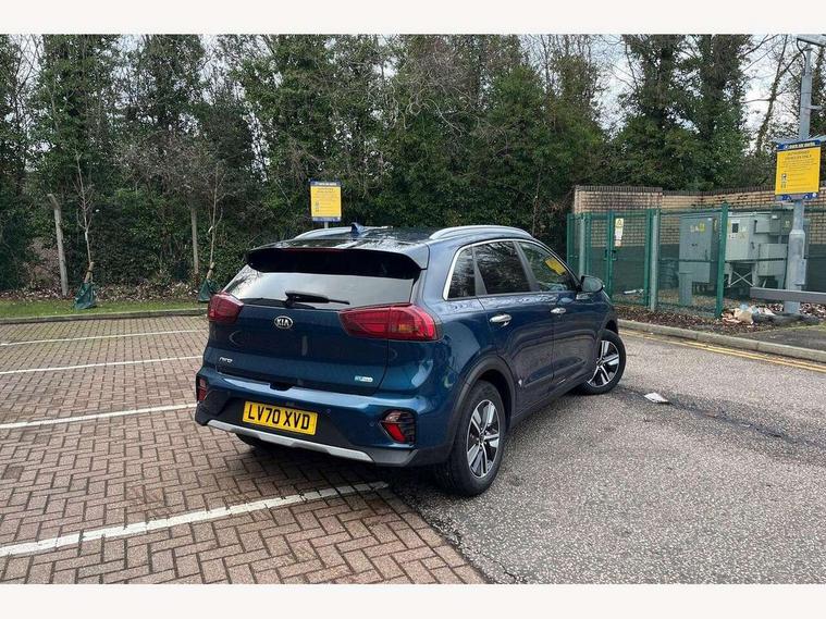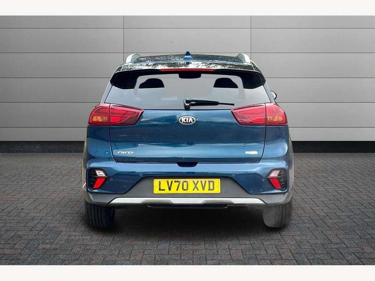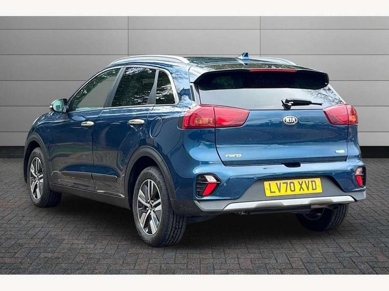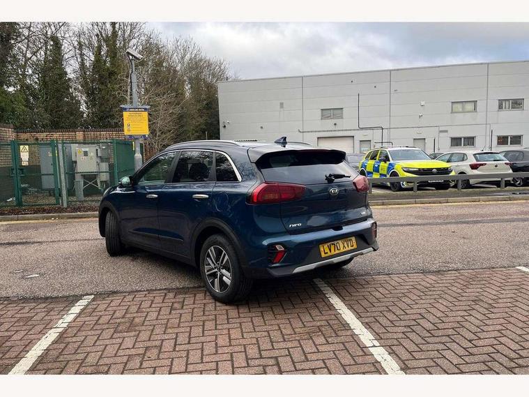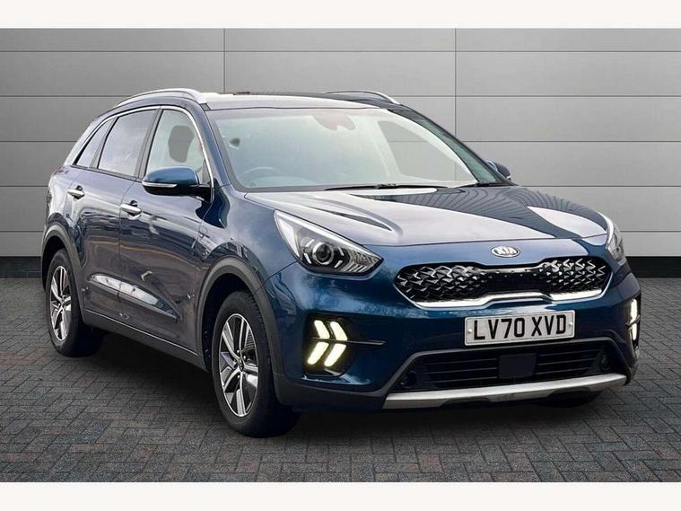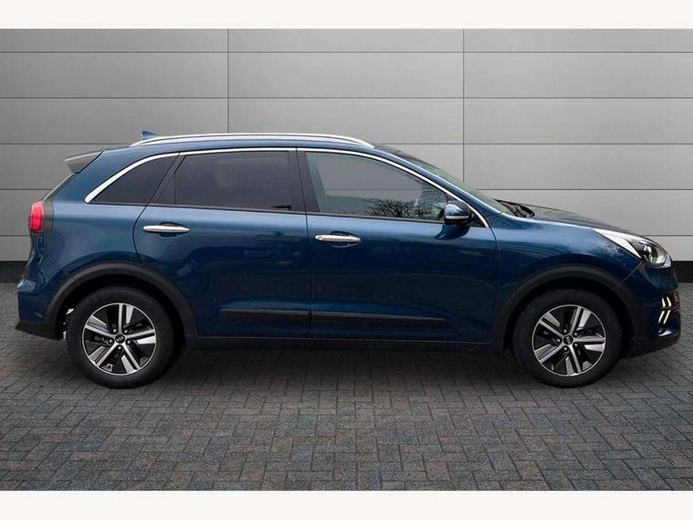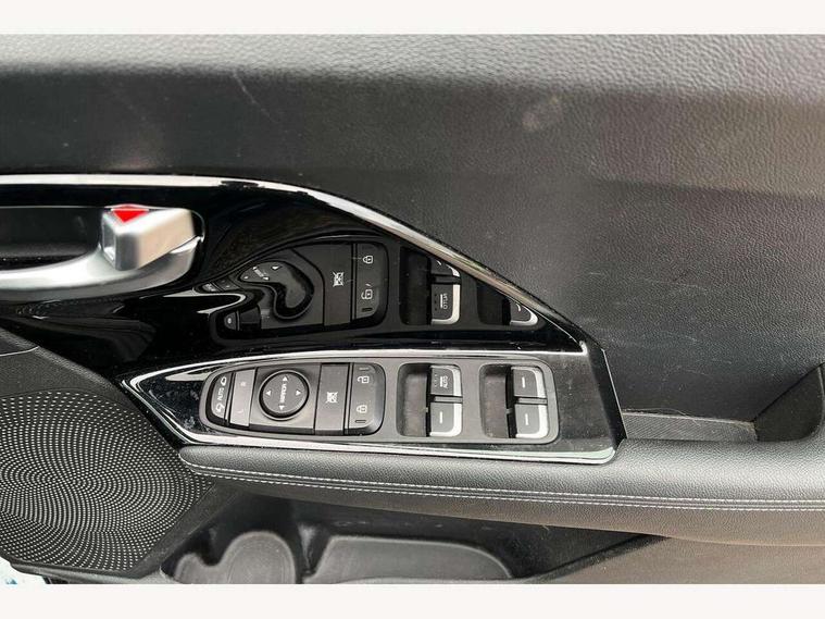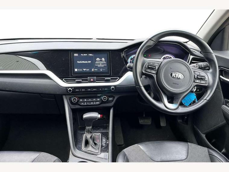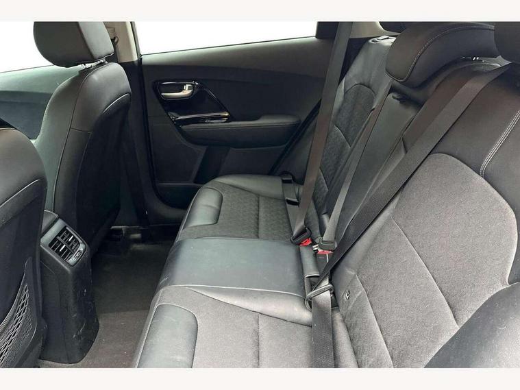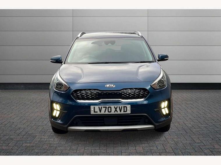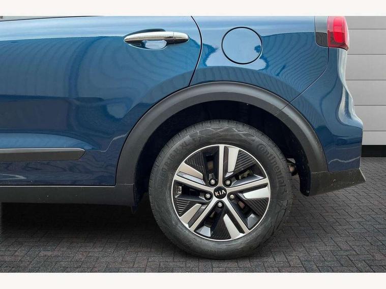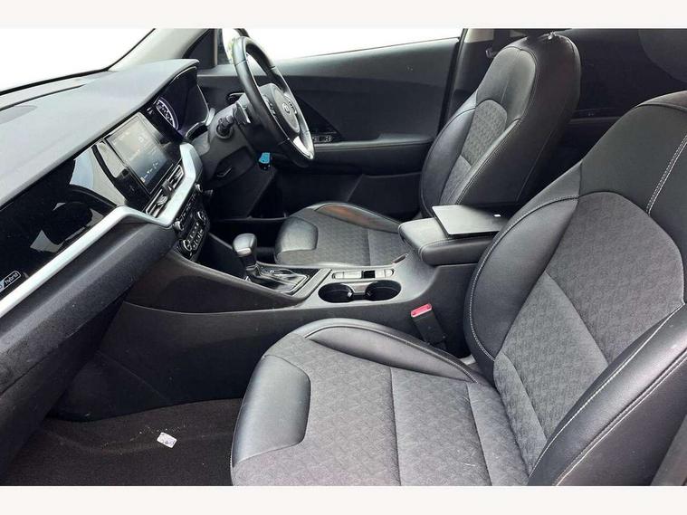 8" touch screen, Adaptive smart cruise control function (SCC) with stop and go, Apple car play/Android Auto with voice control, Digital clock, Drive mode selector, Driver attention warning, Emergency stop signalling system, Forward collision avoidance assist, Lane Following Assist (LFA), Lane keep assist, Motor driven power steering, Rear parking sensors, Reversing camera, Speed limiter, Trip computer with distance/fuel consumption/average speed, 'Shark fin' mobile antenna, 4.2" supervision cluster with TFT colour display, 6 speakers, Bluetooth with music streaming, DAB Radio with MP3, Steering wheel mounted controls, USB connection located in centre console, USB port, All round electric windows with drivers auto up/down function, Auto dimming rear view mirror, Automatic defog system, Automatic headlight control system, Black beltline mouldings, Black side sills, Body colour bumpers, Body coloured/high gloss door mirrors, Chrome door handles, Driver's side wide angle mirror, Electrically folding/adjustable/heated door mirrors with LED indicators, Front fog lights, LED daytime running lights, LED rear combination lights, Manual headlight levelling, Matt black radiator grille, Privacy glass - Rear windows and tailgate, Projector headlamps, Rain sensing front wipers, Rear spoiler, Rear wiper, Roof rails, Solar glass, Welcome and follow-me home light functionality, Wheel arch mouldings, 3 x passenger assist grips, 60/40 split/folding 2nd row of seats, All-round height adjustable headrests, Centre console storage box, Centre room lamp, Cloth/leather upholstery, Cupholders in rear armrest, Door armrest in leather, Driver's seat height adjuster, Driver/passenger sunvisors with illuminated vanity mirrors, Dual zone automatic air conditioning, Front and rear door storage, Front/rear centre armrests, Headlining in Light grey, High gloss black lower console trim, High gloss black steering wheel trim, Illuminated ignition key hole, Interior door lock/unlock function, ISOFIX Child seat top tethers and anchor fixings, Leather trimmed gearshift, Leather trimmed steering wheel, Luggage area lamp, Luggage compartment cover, Luggage net with hooks, Overhead console lamp with sunglasses case, Passenger seat height adjuster, Satin finish inner door handles, Seatback pocket - front passenger, Steering wheel mounted paddle shift, Tilt/telescopic adjustable steering wheel, Under floor storage box, Ventiliation ducts to rear compartment, Towing pack - Niro, 3 point seatbelts on all seats, ABS, Automatic unlocking of doors in case of impact, Drivers knee airbag, Electric parking brake with auto hold function, Electronic stability control, Front passenger airbag cut-off switch, Height adjustable front seatbelts, Hill start assist control (HAC), Traction control, Twin curtain airbags with roll over sensor, Twin front and side airbags, Tyre pressure monitoring system, Alarm system and engine immobiliser, Deadlocks, Locking wheel nuts, Remote central door locking with fold away key, Speed sensitive auto door locking, Visible vehicle identification number, High gloss black centre fascia, High gloss black door inserts, 16" alloy wheels, Tyre mobility kit,