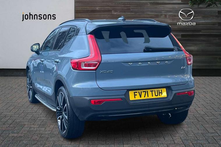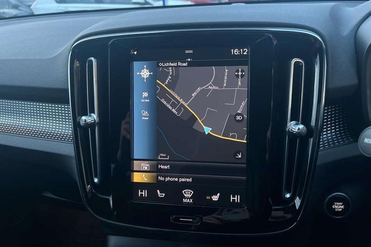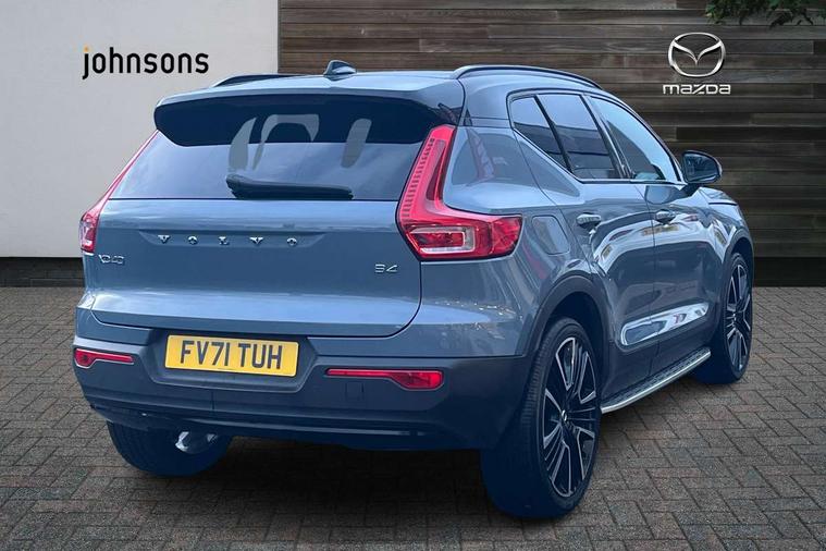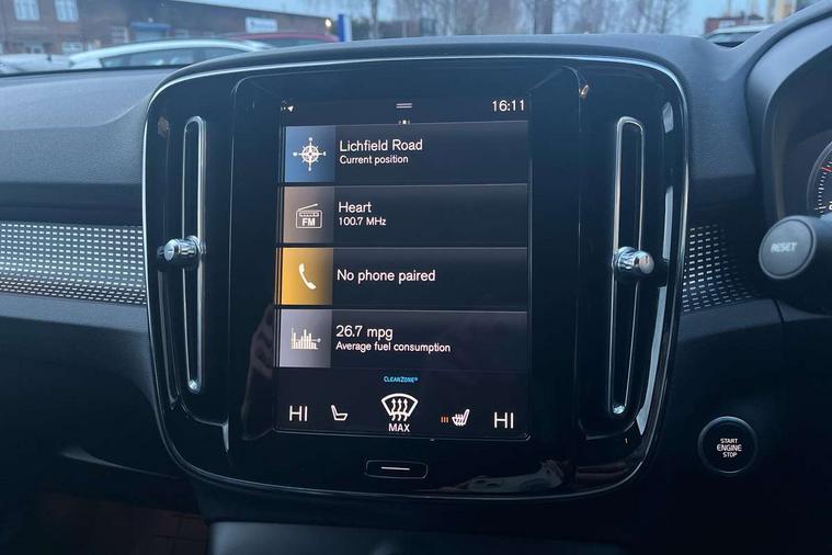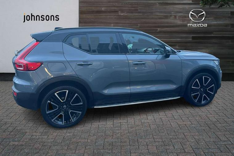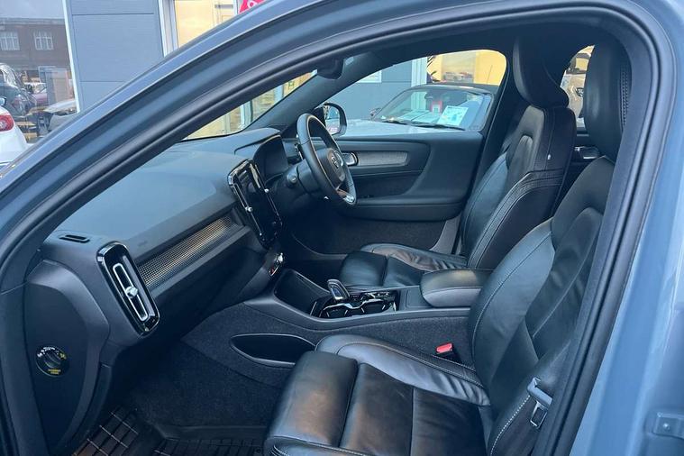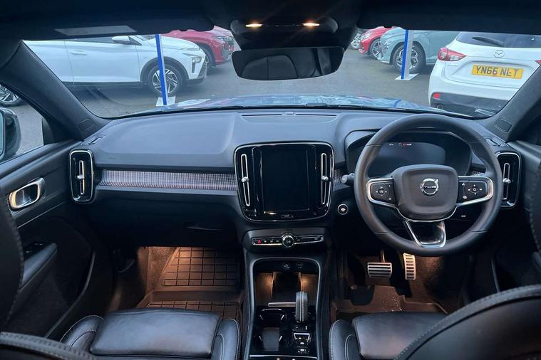 12.3" Active TFT crystal driver's instrument display, 9" centre console portrait touch screen, Adjustable steering wheel force, Bluetooth hands free telephone kit, Drive mode selector, E-call, Lane keep assist with driver alert control, Oncoming Lane Mitigation, Power operated tailgate, Sensus navigation with European mapping and traffic information, Speed limiter, Speed sensitive steering, Voice activated control for key functions, Volvo on call, Sports chassis, DAB Digital radio, Steering wheel mounted remote controls, Adaptive brake lights with high level LED brake lights, Auto dimming interior mirror, Automatic headlamp levelling, Automatic LED Headlights + Active high beam incorporating daytime running lights, Dark tinted windows for rear door side windows and cargo compartment, Electric adjustable/heated/auto folding door mirrors, Front aluminium tread plates, Front and rear electric windows, Heated front windscreen, High gloss black front and rear skid plate, High gloss black lower front bumper, High gloss black mesh front grille with high gloss black surround, High gloss black sensus surround deco, High gloss black window trim, Home safe and approach lighting, Integrated roof rails in high gloss black, Rain sensor with automatic windscreen wiper activation, Rear side wing doors, Rear wiper, Roof antenna, Roof spoiler, Visible VIN plate, 12V socket in front tunnel console and luggage compartment, 2 zone electronic climate control and rear air vent, 3 seat bench in 2nd row, 60/40 versatile split folding rear seat, A-pillar parking ticket holder, Bright metal luggage threshold, Centre console cupholders and storage, Charcoal headlining, Front footwell illumination, Front headrests, Front reading light and theatre lighting, Front seat cushion extensions, Front tunnel net pocket and integrated waste bin, Glovebox bag hook, Heated front seats, Height/reach adjustable steering column, Height/tilt adjustable driver's seat, High gloss centre tunnel deco, Illuminated glovebox, Illuminated luggage compartment, Illuminated vanity mirrors, Isofix attachments on outer rear seats, Leather gearknob, Load protection net, Multi directional lumbar support, Power driver seat with memory + exterior mirrors memory, Rear armrest / integral cup holders / storage tray, Rear coat hook, Single front passenger seat, Sports floor mats, Sports pedals, Sports tailored steering wheel, Underfloor cargo storage, Vanity mirror with ticket holder, Lighting pack - XC40, 3x3 point rear seatbelts, City safety includes pedestrian, cyclist and large animal detection and front collision warning with full auto brake, Drivers knee airbag, Dual stage driver/passenger airbags, Electronic parking brake with auto hold, First aid kit, Front and outer rear seatbelt reminder and pretensioners, Front seats SIPS airbags, Hill descent control, Hill start assist, Inflatable curtain, Passenger airbag cut-off device, Road sign information display, Run off Road Mitigation, Run off Road Protection, SIPS (Side Impact Protection System), Slippery road and hazard light alert, Stability and Traction Control with Spin control, Engine Drag Control and Corner Traction Control, Tyre pressure monitoring system, Vehicle deceleration control with Anti-lock Brake System, Electronic Brake Distribution and Emergency Brake Assist, Warning triangle, WHIPS whiplash protection system - front, Anti-theft alarm including immobiliser/volume sensor + level sensor, Care key with user defined top speed, Key integrated remote control central locking + fuel flap with deadlocking system and auto open/close power windows, Locking wheel nuts, Private locking for tailgate, Cutting edge aluminium inlay, Lower dashboard, tunnel console and door panel in charcoal,