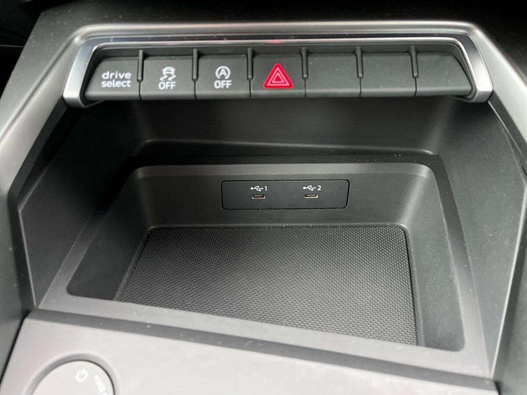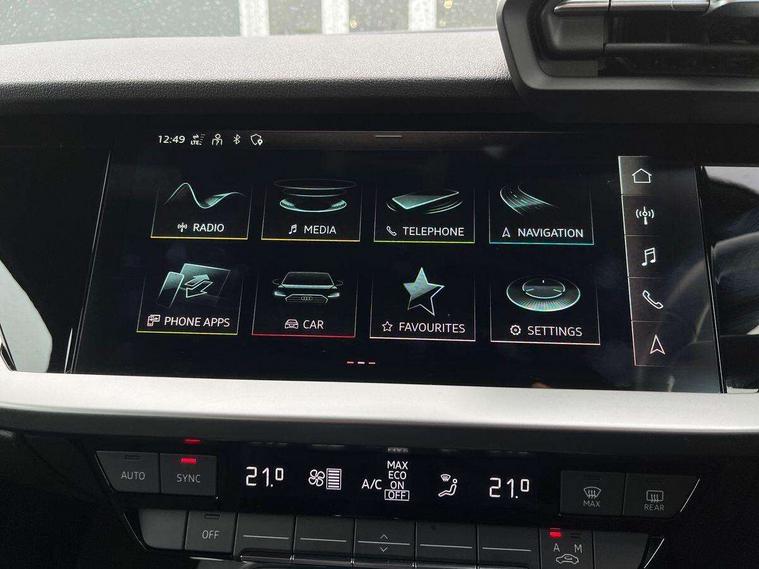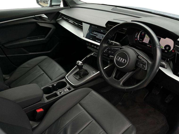 Audi connect emergency call and service, Audi drive select (Auto, Comfort, Dynamic and Individual), Audi smartphone interface, Audi Virtual Cockpit - 10.25" digital and colour instrument cluster, Automatic start/stop system with recuperation, Bluetooth interface, Collision avoidance assistant, Cruise control, Electromechanical power speed sensitive steering, Lane departure warning system, MMI Navigation Plus with high resolution 10.1" colour touch screen display, Rear parking sensors, Service indicator, Trip computer, Voice control system with natural language interaction, Standard suspension, 1xUSB-A and 1xUSB-C connection, 6 passive loudspeakers, DAB Digital radio, Acoustic glass windscreen, Aluminium window trim, Auto dimming frameless rear view mirror, Body colour exterior mirrors, Body colour roof spoiler, Electrically adjustable/heated/folding/dimming door mirrors with kerb view includes integrated LED indications + kerb view function for passenger side, Front electric windows, LED daytime running lights, Light and rain sensors, Rear electric windows, Rear window, rear door windows and rear side windows in clear glass, Rear wiper, 12V socket and storage compartment in front centre console, 40/20/40 split folding rear seat bench with cupholder, Dual zone electronic climate control, Front and rear centre armrest, Front and rear headrests, Front door sill trims with aluminium inlay, Front/rear floor mats, Height and reach adjustable steering wheel, Interior lighting - Front and rear roof module including reading lights, glove compartment light and right hand side, Luggage compartment floor covering, Manual boot compartment lid, Manually adjustable front seats, Seat side bolsters, Steel grey cloth headlining, Twin leather upholstery, Aluminium interior elements pack - A3 Sportback, Sport styling pack - A3 Sportback, 3x3 point rear seat belts, Driver and front passenger airbag with passenger airbag deactivation, Electronic Stabilisation Control (ESC) including ABS, ASR and EDL, First aid kit with warning triangle and 2 safety vests, Front side airbags with head airbags and interaction airbag, Hill hold assist, Pre-sense front with pedestrian and cyclist detection, Seatbelt monitoring, Tyre pressure loss indicator, Anti theft alarm, Anti-theft wheel bolts, Electronically operated child lock, Immobiliser, Remote control central locking, Inlays with silk effect paint in platinum grey,