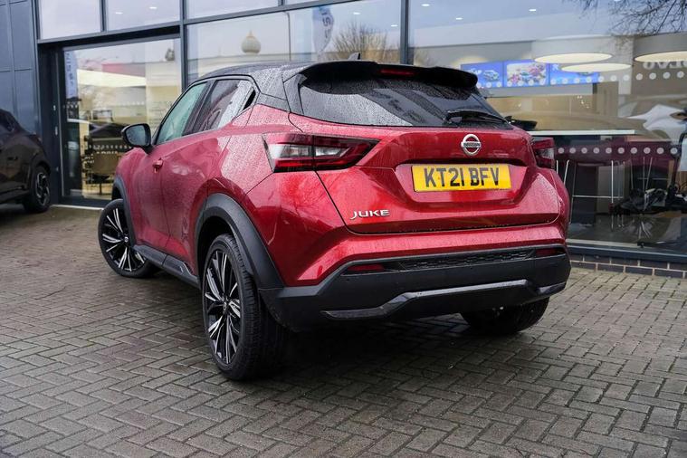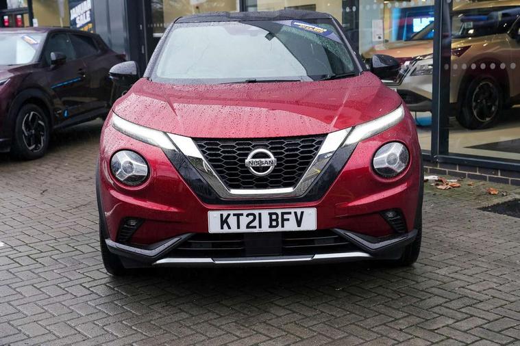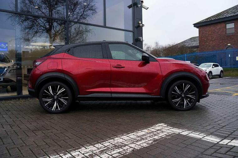 7" full colour TFT screen combimeter, 8" infotainment colour display with touch screen, Apple CarPlay and Google Android auto, Drive modes select (Eco, normal and sport), Emergency and breakdown call, Front parking sensor, Idle start/stop system, Intelligent lane intervention, Lane departure warning system, Nissan connect nav with TomTom traffic, Nissan connect services and Wifi connection, Outside temperature sensor, Power Steering, Rear parking sensor, Traffic sign recognition, Trip computer, Gasoline particulate filter, Bluetooth system, USB, Aux-in and 12V socket, Bose personal plus audio system with 8 speakers(4 speakers and 2 headrest speaker for driver and passenger seats), Bose personal sound stage control, DAB Digital radio, Front lower bumper painted in silver finisher, Rear console USB port, Auto dimming interior rear view mirror, Automatic hazard signal with emergency stop signal, Body colour bumpers, Body colour door handles, Electrically adjustable door mirrors with integrated indicators, Follow me home headlights, Front and rear electric window with one touch driver window, Heated and auto folding door mirrors, High beam assist, LED daytime running lights, LED front fog lights, LED headlamps, LED rear fog lamp, LED rear lamps, Rain sensor windscreen wipers, Rear privacy glass, Rear wiper, Thermaclear heated windscreen, Three blink turn signal, 3 height adjustable rear headrests, 60/40 split folding rear seat, Automatic climate control, Card holder on driver sunvisor, Door ambient lighting, Driver and passenger sliding and reclining seats, Driver seat back pocket, Driver side rear coat hanger, Driver/passenger sunvisors and vanity mirrors, Front and rear cabin lights, Front armrest, Front door pockets with bottle holders, Front head restraints, Front passenger isofix child seat anchorage point, Front/rear passenger grab handles, Gear console ambient circle lighting, Grey synthetic leather kneepad, Heated front seats, Height adjustable driver's seat, Height adjustable passenger seat, Internal chrome door handles, Leather gearshift knob, Leather steering wheel, Luggage board, Luggage space lighting, Monoform sporty seats, Multifunction steering wheel, Passenger seat back pocket, Rear door bottle holders, Telescopic steering wheel adjustment, Two cupholders in front centre console, Two rear isofix child seat anchorage points with top tether, Voice recognition switch on steering wheel, Welcome light and console tray ambient lighting, Advanced safety shield pack - Juke, ABS with EBD and brake assist, Active ride control, Active Trace Control, Driver and passenger airbags, Driver and passenger side airbags, Electric handbrake with auto hold function, Electronic Stability Programme (ESP), Front and rear curtain airbags, Height adjustable seatbelts, Hill start assist, Intelligent emergency braking with pedestrian and cyclist recognition, Seatbelt reminder for driver/front passenger and rear seats, Single tone horn, Three 3 point rear seatbelts, Traction control, Tyre pressure monitoring system, VDC Dynamic Vehicle Control, Ventilated rear brake discs, Alarm, Immobiliser, Intelligent Key with push button starter, Remote central locking, 19" Akari alloy wheels,