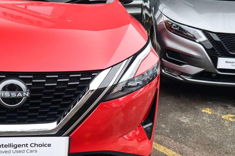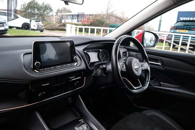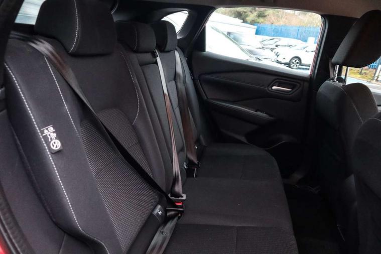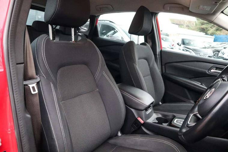7" High definition full colour TFT screen combimeter, Android auto/Apple CarPlay (Wired), Blind spot warning, Drive modes (sport, normal, eco), Electric speed sensitive power steering, Emergency and breakdown call, Idle stop/start system, Intelligent Cruise control (ICC), Intelligent driver alert system, Intelligent forward collision warning, Intelligent lane intervention, Lane departure prevention, Lane departure warning system, Maximum speed limiter, Nissan connect 8" touchscreen infotainment system, Push button starter, Rear cross traffic alert, Rear parking sensors, Rear view camera, Traffic sign recognition with legal speed adjustment, Trip computer, 6 speakers, AM/FM audio system with DAB, Bluetooth audio streaming, Front USB connections (Type-A and Type-C), Auto dimming rear view mirror, Auto rear wiper when reversing, Automatic hazard signal with emergency stop signal, Body colour mirror caps, Body coloured door handles, Bodyside mouldings, Chrome side window finisher, Door handle with button, Electric auto folding door mirrors, Electrically adjustable and heated door mirrors with LED turn indicator, Follow me home headlights, High beam assist, Intelligent auto headlights, LED daytime running lights, LED Headlights, LED rear lights, One touch front and rear electric windows with remote opening and closing, Partially body coloured bumpers, Rear reversing light (bulb lighting), Rear roof spoiler, Rear side wing doors, Shark fin antenna, Splash free rain sensing wipers, Three blink turn signal, 12v power socket in dashboard and luggage, 2x Rear coat hooks, 3 bench rear seats in 2nd row, 3 rear headrests, 4 folding assist grip, 6-way manually adjustable driver's seat, 60/40 split folding rear seat bench, Centre console storage tray, Chrome interior door handles, Cloth monoform upholstery, Driver and front passenger sunvisors with illuminated vanity mirrors, Driver seat back pocket, Dual zone automatic climate control with pollen filter, Electrically adjustable lumbar support for driver, Front and rear door storage, Front centre console and armrest, Front cupholders x 2, Front door with bottle holders, Glovebox with light, Hard trunk cover, Height adjustable driver's seat, Height adjustable front headrests, Height adjustable passenger seat, Leather steering wheel, Luggage space lighting, Manually adjustable passenger (slide recline + lifter), Multifunction steering wheel, Passenger seat back pocket, Rear armrest with 2 cupholders, Rear door bottle holders, Single front passenger seat, Steering wheel gearshift paddles, Steering wheel switches, Sunglasses holder, Tilt/telescopic adjustable steering wheel, Two rear isofix child seat anchorage points with top tether, 3x3 point rear seatbelt pretensioners + load limiters, ABS with EBD and brake assist, Active brake limited slip, Auto hold function, Child locks on rear doors, Curtain and front side, far side airbags, Driver and passenger airbags, Driver, passenger and 2nd row rear seat belt reminder, Electronic parking brake, Front seatbelt pretensioners + load limiters, Height adjustable front seatbelts, Hill start assist, Intelligent blind spot intervention, Intelligent front emergency braking with pedestrian, cyclist recognition and junction assist, Intelligent rear automatic braking, Tyre pressure monitoring system, Vehicle dynamic control, Capless fuel filler, Engine immobiliser, Intelligent Key, Remote central door locking with deadlocking, Thatcham Cat.1 alarm, Interior instrumental panel A finisher, 17" Alloy wheels, Tyre puncture repair kit,