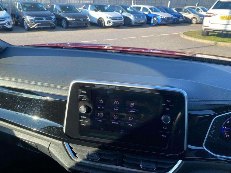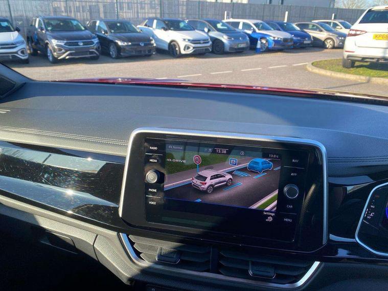 10.25" Digital cockpit pro, Bluetooth mobile phone interface, Driver alert system with fatigue detection, Driver tips and journey analysis, Emergency call service, Lane keeping system Lane Assist, Modified key software - reduce switch off time for key status change to Long no motion, Online services, Park assist including front and rear parking sensors, Service interval indicator, Tailgate/trunk lid release from outside, Think blue trainer driver tips and journey analysis, Warning sound and light for front seatbelts unfastened, Wireless app connect, Battery regeneration during braking, Start/stop function with battery regeneration, Diversity antenna for FM reception, Front and rear 6 speakers, Music playback - MP3, WMA and AAC files, Premium USB cable in choice of either Apple or Android smartphone compatibility, SD card slot, Simultaneous pairing of 2 compatible mobile devices, Title and cover art display, We Connect and We Connect Plus functionality, 3rd brake light, Auto dimming interior rear view mirror, Automatic hazard lights activation under emergency braking, Automatic headlight control with LED separate daytime running lights with coming/leaving home function, Extended roof spoiler, Exterior mirrors aspherical on driver side, convex on front passenger side, External USB type C socket and charging sockets, Front windscreen wiper with intermittent wipe and 4 position delay, Heated rear window, LED Plus headlamps, LED rear combination lamps, LED rear number plate lights, LED tail lamp rear comination lamps, Power windows with comfort operation and circuit breaker, R-Line design body coloured bumpers, Rain sensor, Rear exhaust tailpipe, Rear fog light on one side and reversing lights on both sides, Rear side wing doors, Rear wash/wipe with intermittent wipe setting, Remote electrically foldable door mirrors, puddle lights and reverse activated passenger's door mirror, 12V power socket in centre console, 3 rear head restraints, 3 seat bench in 2nd row, 4 load lashing points in luggage compartment, Air care climatronic air conditoning system with active combination filter and 2-zone temperature control, Black roof lining, Chrome plated radiator grille inserts, air vent surrounds and light switch surrounds, Door and side trim panel with leatherette insert, Drawer under drivers seat, Front + rear carpet mats, Front centre armrest, Front cupholders x 2, Front footwell illumination, Front reading light, Front scuff plates with R logo, Instrument lighting, white adjustable panel illumination, Interior ambient lighting and surround lighting, Interior light delay, Isofix child seat preparation, Leather gearshift handle, Load-through provision with cup holder when folded down ('Unsplit rear seat bench, split folding backrest, with centre armrest), Luggage compartment lighting, Single front passenger seat, Stainless steel pedals, Storage compartment in left and right luggage area, Storage compartment in rear doors, Storage compartments in driver and front passenger doors, Sunvisors with illuminated vanity mirrors, Variable boot floor, height adjustable and removable, Driver assistance pack without proactive passenger protection - T-Roc, 3 point height adj front seatbelts + pretensioners, 3 point seatbelts in outer rear with ECE label, ABS, Child locks on rear doors, Driver and front passenger airbag with front passenger airbag deactivation, Driver and front passenger safety-optimised head restraints, Drivers seatbelt reminder, Electronic parking brake, Electronic Stability Control (ESC) inc EDL (Electronic Differential Lock) and ASR (Traction Control), Front and rear passengers curtain airbag system including front side airbags, Front assist with city emergency braking and pedestrian monitoring, Front seat side impact airbags, Hill start assist, Predictive pedestrian protection, Rear disc brakes, Single tone horn, Tyre pressure loss indicator, Volkswagen roadside assistance, Alarm with interior protection, Anti-theft alarm system with interior monitoring, backup horn, and towing protection, Remote central locking with SAFELOCK, radio remote control with 2 remote control folding keys, Trims for alloy wheels,