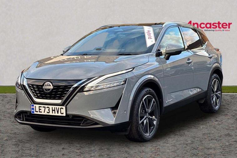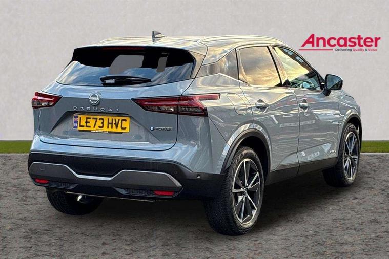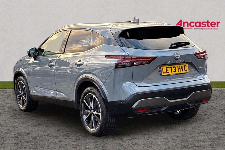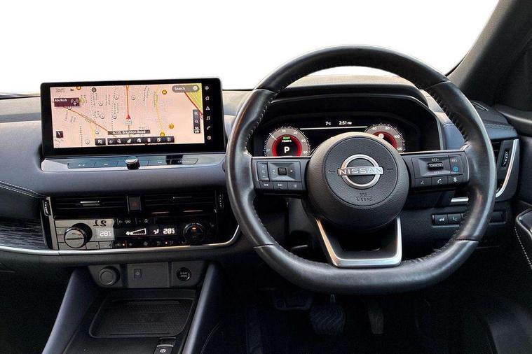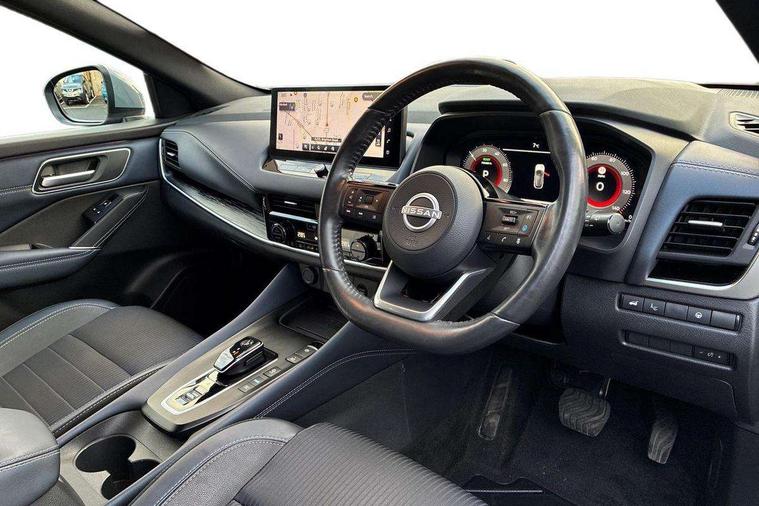 Advanced windscreen head up display, Blind spot warning, Drive modes (sport, normal, eco), e-Pedal step, Electric speed sensitive power steering, Emergency and breakdown call, Front and rear parking sensors, Full Digital 12.3" TFT Digital Combimeter, Google maps services - search, weather, 3D maps and Google street view, Hands free power tailgate, Idle stop/start system, Intelligent around view monitor, Intelligent Cruise control (ICC), Intelligent driver alert system, Intelligent forward collision warning, Intelligent lane intervention, Lane departure prevention, Lane departure warning system, Lane keep assist, Moving object detection, Nissan connect 12.3 inch touchscreen infotainment system, Nissan connect navigation, ProPILOT with Navi-Link, Push button starter, Rear cross traffic alert, Rear view camera, Remote control services - door locks, lights, horn and car locator, Telematics - notifications and connectivity services, TomTom live traffic services, Traffic sign recognition with legal speed adjustment, Trip computer, Virtual personal assistant and firmware over the air capability, Wireless Apple CarPlay and wired Android Auto, Wireless charging pad, 6 speakers, AM/FM audio system with DAB, Bluetooth audio streaming, Front USB connections (Type-A and Type-C), Rear USB charging only ports (Type-A and Type-C), Auto dimming rear view mirror, Auto rear wiper when reversing, Automatic hazard signal with emergency stop signal, Body colour mirror caps, Body coloured door handles, Bodyside mouldings, Chrome side window finisher, Door handle with button, e-POWER badging, Electric auto folding door mirrors, Electrically adjustable and heated door mirrors with LED turn indicator, Follow me home headlights, Front and rear LED turning signals, Headlights auto levelling system, Intelligent auto headlights, LED 3rd brake light, LED daytime running lights, LED headlights with adaptive driving beam, LED rear lights, One touch front and rear electric windows with remote opening and closing, Partially body coloured bumpers, Privacy glass, Rear bumper with graphite insert, Rear reversing light (bulb lighting), Rear roof spoiler, Rear side wing doors, Rear styling plate, Shark fin antenna, Splash free rain sensing wipers, Super UV and infrared cut glass, Thermaclear heated windscreen, Three blink turn signal, 12v power socket in dashboard and luggage, 2x Rear coat hooks, 3 bench rear seats in 2nd row, 3 rear headrests, 4 folding assist grip, 6 Luggage hooks - 4 on floor, 2 on side, 60/40 split folding rear seat bench, Ambient lighting around centre console, Ambient lighting in front doors, Centre console storage tray, Chrome interior door handles, Cloth/syntech leather monoform upholstery, Dark black/blueish PVC wrapping, Dark headlining, Driver and front passenger sunvisors with illuminated vanity mirrors, Driver seat back pocket, Dual zone automatic climate control with pollen filter, e-POWER shifter, Electrically adjustable driver seat, Electrically adjustable lumbar support for driver, Front and rear door storage, Front centre console and armrest, Front cupholders x 2, Front door with bottle holders, Glovebox with light, Hard trunk cover, Heated front seats, Heated steering wheel, Height adjustable driver's seat, Height adjustable front headrests, Height adjustable passenger seat, Leather steering wheel, Luggage board system, Luggage space lighting, Manual lumbar support on passenger seat, Manually adjustable passenger (slide recline + lifter), Multifunction steering wheel, Passenger seat back pocket, Rear armrest with 2 cupholders, Rear door bottle holders, Single front passenger seat, Soft PVC kneepad, Steering wheel switches, Tilt/telescopic adjustable steering wheel, Two rear isofix child seat anchorage points with top tether, Welcome light and doors with console tray ambient lighting, Glass roof pack with roof rails - Qashqai, 3x3 point rear seatbelt pretensioners + load limiters, ABS with EBD and brake assist, Active brake limited slip, Auto hold function, Child locks on rear doors, Curtain and front side, far side airbags, Driver and passenger airbags, Driver, passenger and 2nd row rear seat belt reminder, Electronic parking brake, Front seatbelt pretensioners + load limiters, Height adjustable front seatbelts, Hill start assist, Intelligent blind spot intervention, Intelligent front emergency braking with pedestrian, cyclist recognition and junction assist, Intelligent rear automatic braking, Tyre pressure monitoring system, Vehicle dynamic control, Capless fuel filler, Engine immobiliser, Intelligent Key, Remote central door locking with deadlocking, Thatcham Cat.1 alarm, Interior instrumental panel C finisher, 19" Diamond cut alloy wheels, Tyre puncture repair kit,