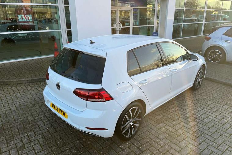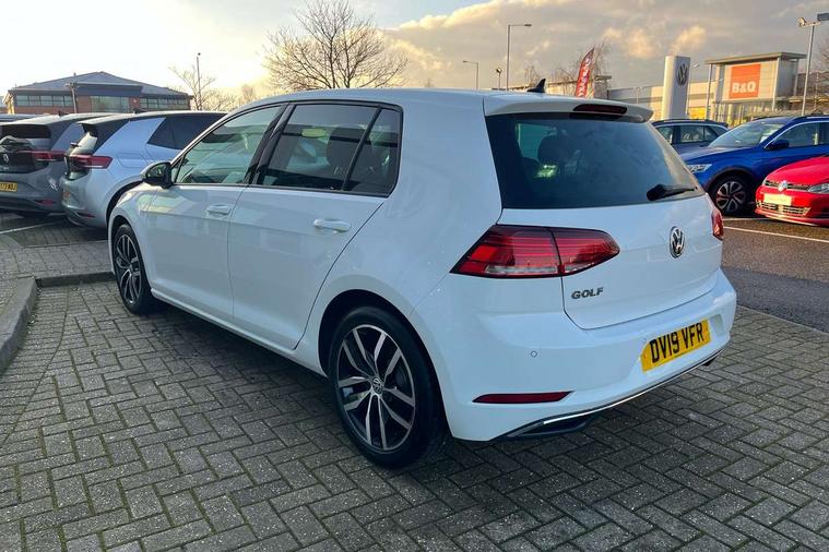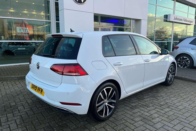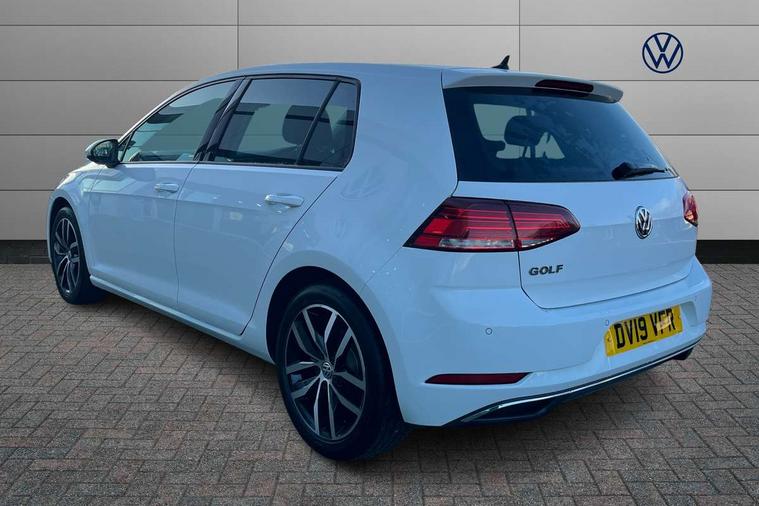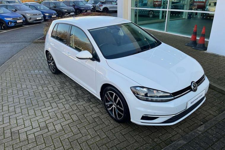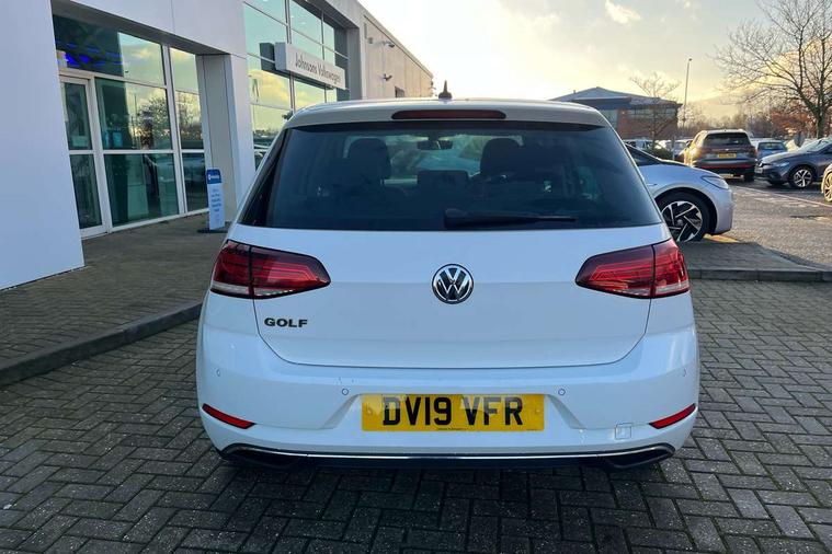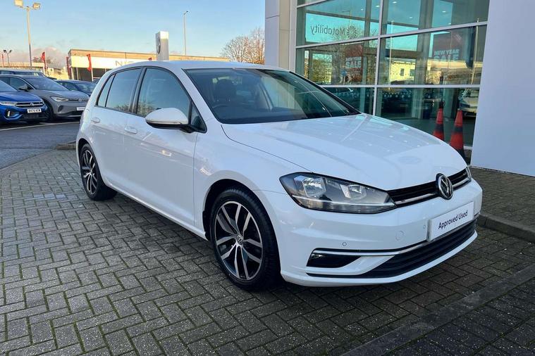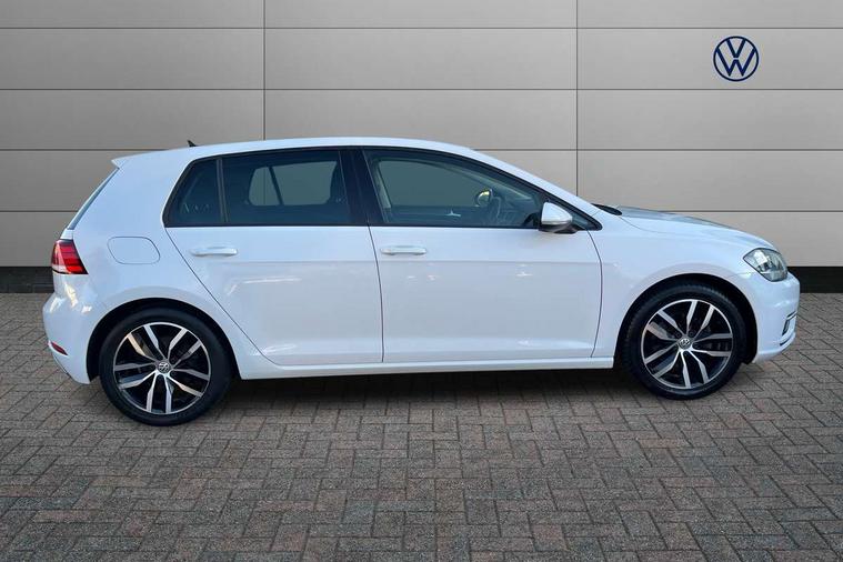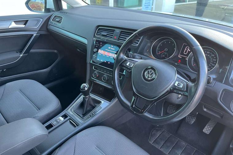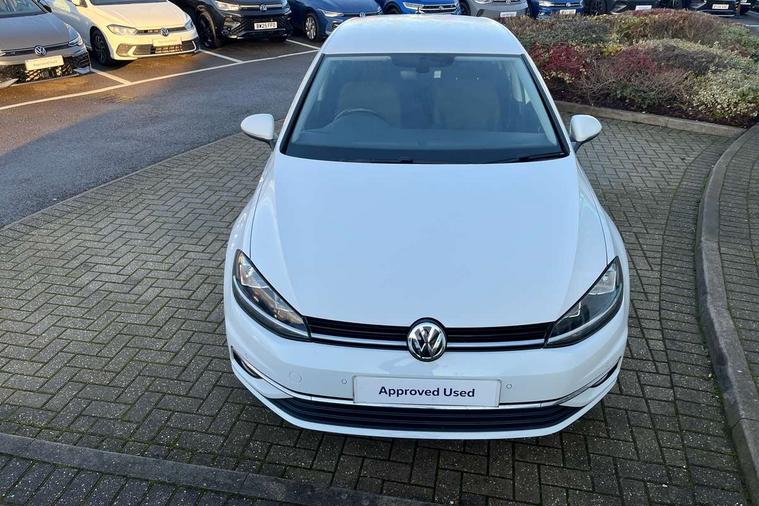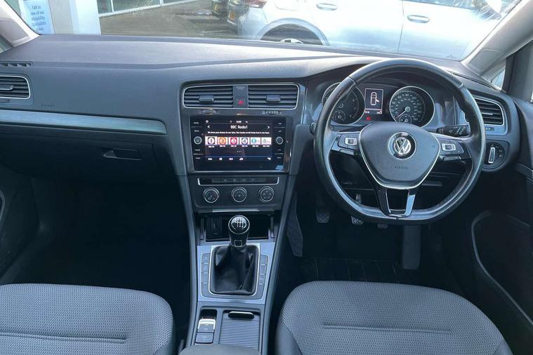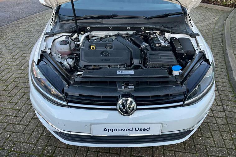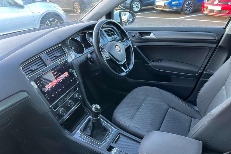'Lights On' Reminder warning buzzer, ACC - Adaptive cruise control with front assist, forward collision warning, distance monitoring, city emergency brake and speed limiter, Bluetooth telephone and audio connection for compatible devices, Brake pad wear indicator warning light, Driver alert system, Driver profile selection, Driving Mode Selection with four preset modes - Eco, normal, sport or individual modes, Instrument cluster in white, Multifunction computer with visual gear change recommendation for fuel consumption, Power assisted speed sensitive electro-mechanical steering, Push tank flap, Speed limit display, Speedo, rev counter, electronic odometer, trip, service interval display, exterior temperature and fuel gauge, Stop/start system, Warning buzzer and light for front seatbelts unfastened, Battery regeneration during braking, XDS electronic differential lock, Composition media system, DAB Digital radio receiver, Driver Personalisation profile selection, MP3/WMA compatability, Multi device interface (MDI) with USB connection, Personalisation 1.1 profile for media, Premium USB cable in choice of either Apple or Android smartphone compatibility, SD card slot, SMS Functionality, USB and SD card connectivity, Black front air intake and radiator grille with chrome insert, Black rear diffuser, Body colour bumpers, Body colour door handles, Body colour door mirrors with integrated indicators, Dusk sensor + automatic driving lights, Electric front windows, Electric rear windows, Electrically adjustable and heated door mirrors, Fully galvanised body, Heated rear windscreen, Hidden exhaust pipe, High level 3rd brake light incorporating LED Technology, LED daytime running lights, LED front fog lights with static cornering light function, Rear fog lamp, Rear tinted glass 65% light absorbing from B pillar backwards, Rear window aerial, Rear window wash/wipe with intermittent wipe, Reflectors in all doors, Tailgate with integrated rear roof spoiler, Windscreen wipers/ intermittent wipe + 4 position delay, 12V socket in luggage compartment, 3 rear headrests, 4 load lashing points in luggage compartment, 60/40 split folding rear seat backrest, Auto fold down lever in rear seat backrest, Bag hook in luggage compartment x 2, Cooled glovebox, Cupholder cover, Dust/pollen filter, Front and rear reading lights incorporating LED technology, Front centre armrest with storage compartment and two rear air vents, Front seat back storage pockets, Grab handles front x 2, rear x 2 with integrated coat hooks, Height and reach adjustable steering wheel, Illuminated vanity mirrors, Instrument lighting white adjustable panel illumination, Interior light delay, Isofix preparation for 2 rear child seats, Load through provision with rear centre armrest and cupholders x2, Luggage compartment lighting, Overhead storage box, Passenger underseat drawer, Pearl grey headlining, Storage box in luggage compartment, Storage compartment in roof console with cover, Storage compartments in centre console, Storage compartments in front doors, Storage compartments in rear doors, Stowable luggage compartment cover, Sun visors, Variable boot floor, height adjustable and removable, Convenience Pack - Golf, Light and Sight pack - Golf, Mirror pack - Golf, 3 rear three point seatbelts, Airbags - Driver's and front passenger's, curtain airbag, Driver's knee, front side impact and passenger's airbag deactivation switch, Anti-lock Braking System (ABS) with Hydraulic Brake Assist (HBA), Automatic post collision braking system, Child locks on rear doors, Driver/Passenger optimised head restraints, Electronic parking brake with auto hold, Electronic stability control (ESC) including Electronic differential lock (EDL) and ASR (Traction control) with deactivation via infotainment system, Front ventilated disc brakes and rear disc brakes, Pre crash preventive occupant protection, Three point height adjustable front seatbelts with tensioners, Tyre pressure loss indicator, Alarm with interior protection and deactivation via infotainment system, Electronic engine immobiliser, Remote central locking with 2 remote folding keys, Brushed dark silver decorative inserts in dash and door panels, Chrome plated air vent surround, Chrome plated electric mirror adjustment light switch surround, Polar night black centre console, Steel space saver spare wheel,