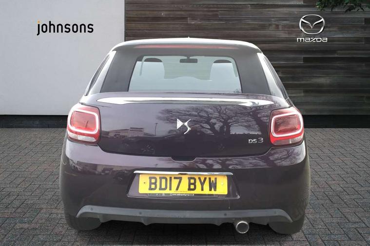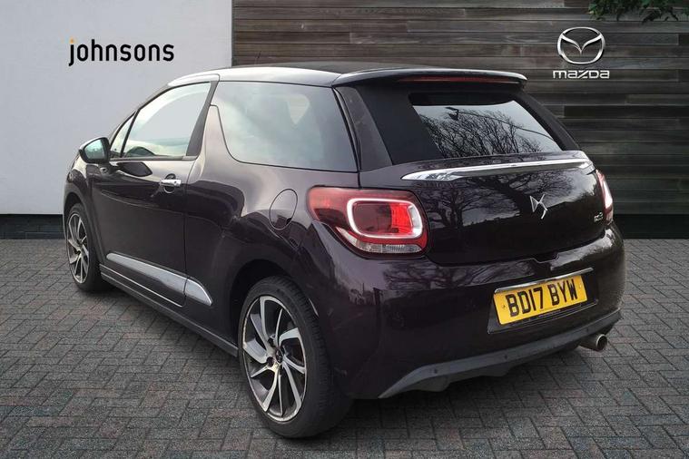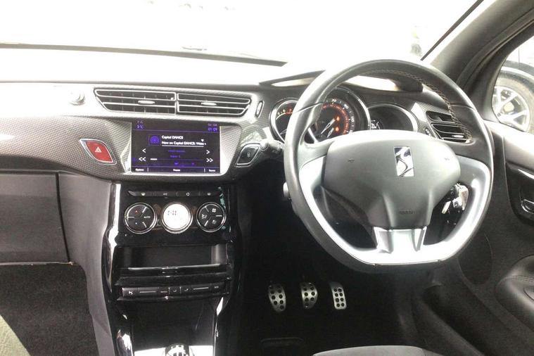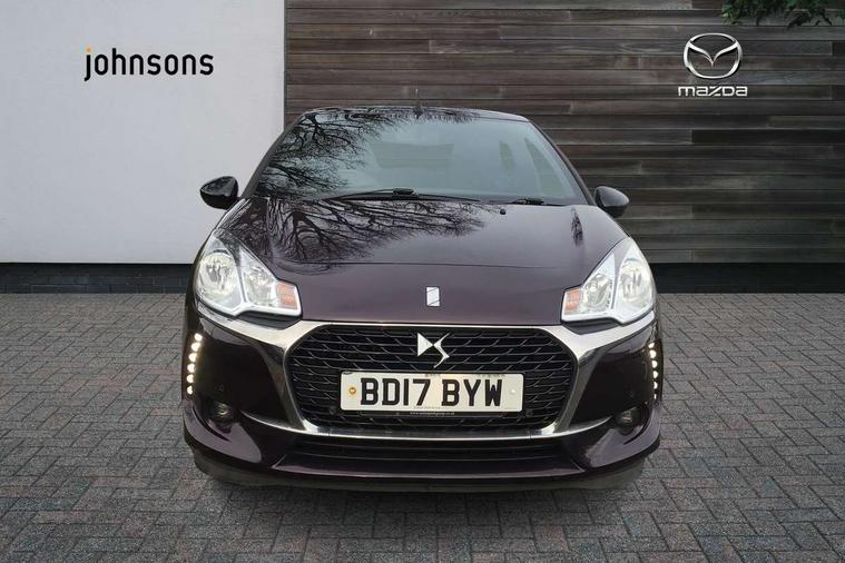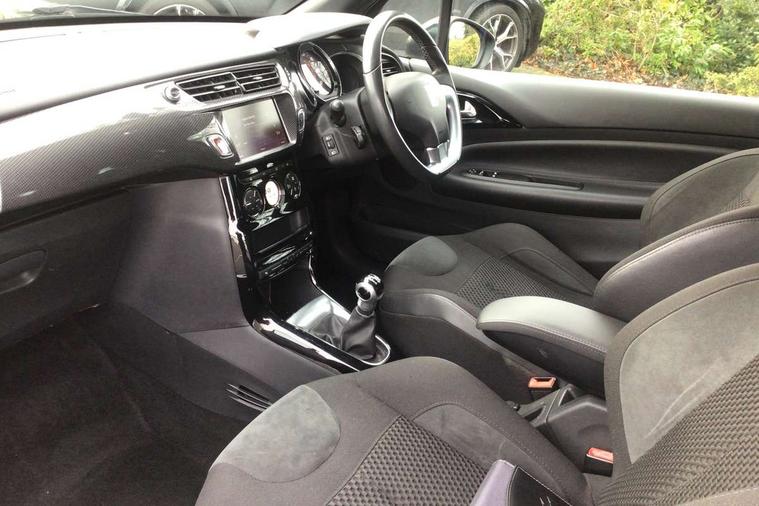 7" touch screen, Bluetooth + USB, Cruise control + speed limiter, DS connect box emergency assist system, Mirror screen with mirror link and car play, Multi function trip computer, Outside temperature display, Rear parking sensors, Rev counter, Service interval indicator, Variable power steering, Sports suspension, Auxiliary input socket, DAB Digital radio, Steering wheel mounted controls, 3D effect LED rear lights, Body coloured bumpers, Body coloured roof, Chrome door handles, Chrome DS Wings grille, Chrome exhaust tailpipe, Chrome front fog light surround, Chrome rear bumper inserts, Chrome side rubbing strips, Chrome tailgate insert, Dark tinted rear windows, Electric adjustable door mirrors, Electric front windows, Height adjustable headlamps, LED daytime running lights, LED front fog lights, Rear spoiler, Rear wiper, 12V socket, Automatic air conditioning, Boot light, Driver's seat height adjustment, Driver/pass sunvisor/covered courtesy mirrors, Floor mats, Front and rear headrests, Front courtesy lights, Front door pockets with bottle holders, Front passenger seat height adjust, Front reading light, Front seat and rear pockets, Height/reach adjust steering wheel, Instrument lighting dimmer, Interior mood lighting, Isofix rear child seat preparation, Lashing eyelets in boot, Leather handbrake with chrome insert, Pollen filter, Satin chrome door sill protectors, Satin chrome steering wheel inserts, Split folding rear seat, 5 three point inertia reel seatbelts, ABS + EBD + EBA, Curtain airbags, Driver seatbelt warning indicator, Driver/Front Passenger airbags, ESP, Front lateral airbags, Front seatbelt pretensioners with force limiters, Hill start assist, Tyre pressure monitoring system, Alarm, Deadlocks, Immobiliser, Locking wheel bolts, Remote control central locking, Gloss black centre console and interior door handle surround, Satin chrome gear surround,