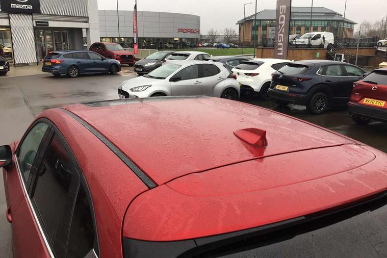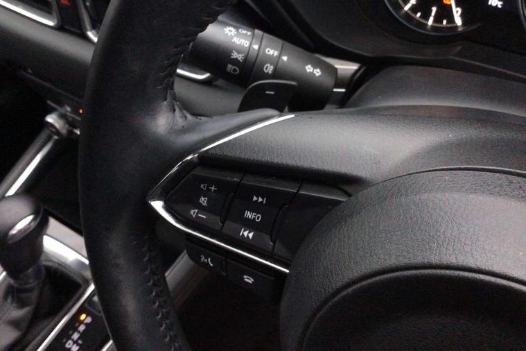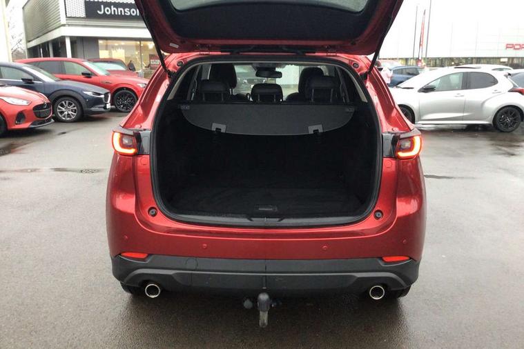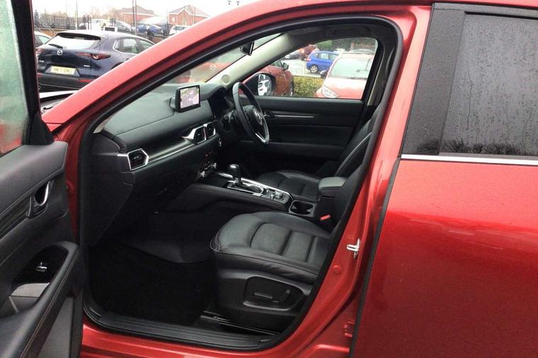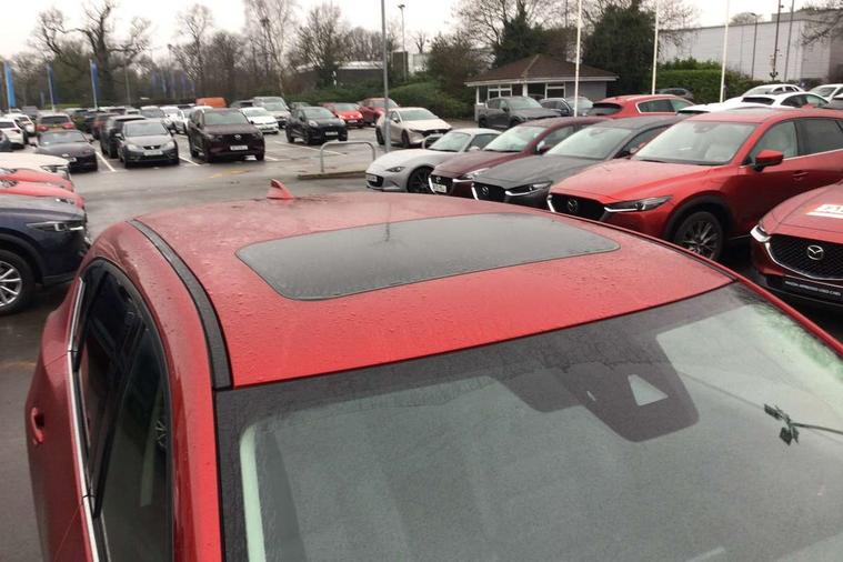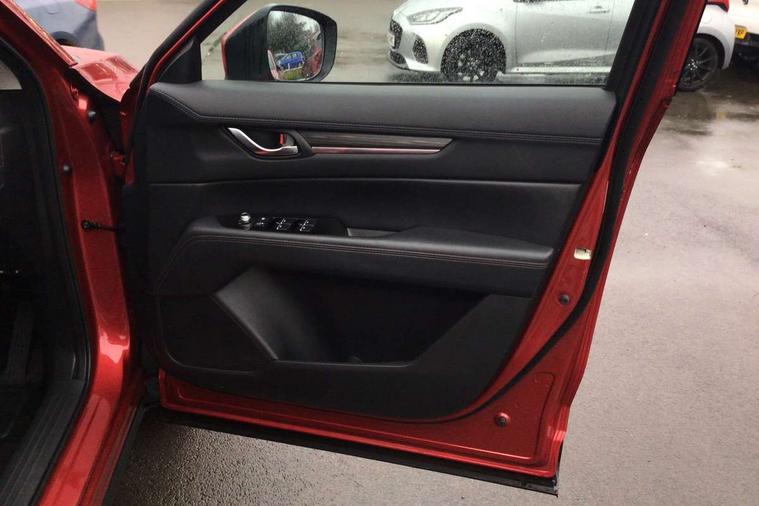 10.25" display with Mazda Connect infotainment, 7" colour TFT display, Advanced blind spot monitoring, Apple car play/Android Auto, Bluetooth connectivity with voice control, Collision prevention assist, Connected services, Cruising Traffic Support, Drive mode selector, Electric power steering, Emergency stop signalling system, Engine start/stop button, Forward collision warning, Front and rear parking sensors, Integrated navigation system, Intelligent speed assist, Lane departure warning system, Lane keep assist, Radar cruise control with Stop and Go, Reversing camera, Service indicator, Traffic sign recognition (TSR), Trip computer, Windscreen projected colour active driving display (HUD) with memory, i-stop, 2 USB sockets in rear, 2x USB sockets in front, 6 speakers, AM/FM radio, Bluetooth audio streaming, DAB Digital radio, Multimedia Commander including separate volume dial, Steering wheel mounted audio controls, Adaptive front lighting system, Auto dimming rear view mirror, Automatic headlights, Black inlay dashboard panel, Body colour door mirrors, Body colour roof spoiler, Body coloured front and rear black lower bumper mouldings, Bright finish signature wing, Coming/leaving home lighting function, Door mirror integrated indicators, Dual chrome tailpipes, Dusk sensitive headlamps, Electric front/rear windows with one touch auto up/down, Front grille in gloss black finish, Gloss black B and C pillars garnish, High beam assist, Intermittent rear wash/wipe, LED auto levelling, LED daytime running lights, LED front fog lights, LED Headlights, LED third brake light, Power folding and heated door mirrors, Power tilt/slide sunroof, Privacy glass (rear side windows only), Rain sensing front wipers, Rear side wing doors, Satin black side mouldings, Scuff plates, Shark fin antenna, Signature LED rear combination lights, Vinyl with wood grain metal inlay door trim panel, Windscreen wiper de-icer, 12v electrical power outlet, 3 seat bench in 2nd row, 3 stage heated front seats, 40:20:40 Karakuri fold-flat seat system, 6 way electric adjustable passenger seat, 8 way electric driver seat with lumbar support + memory, Cargo room flat floor board with waterproof undertray, Driver seat power slide, recline and height adjustment, Driver, Front passenger and two rear grab handles with coat hooks, Driver/passenger front seatback pockets, Driver/passenger sunvisors + illuminated vanity mirrors (drivers with ticket holder), Dual zone climate control, Folding centre armrest with 2 cup holders, Front and rear door pockets, Front centre storage with two cupholders, Front passenger seat power slide, recline and height adjustment, Heated steering wheel, Humidity sensor, Illuminated glovebox, Interior dome light with integral spotlight, ISOFIX child seat anchorage points attached on outer rear seats, Karakuri tonneau cover, Leather upholstery, Leather wrapped steering wheel and gear knob, Light roof lining, Luggage compartment LED lighting, Luggage compartment power outlet, Paddle shifts, Rear air vents, Rear headrests, Rear seat recline, Roof mounted sunglasses holder, Single front passenger seat, Three height adjustable head restraints, Tilt/height adjustable steering wheel, White interior LED illumination lighting, 3 point front seatbelts with pre-tensioners, 3 rear 3 point seatbelts, ABS, Advanced Smart City Brake Support - SCBS, Child locks on rear doors, Driver and front passenger side airbags, DSTC-Dynamic Stability and Traction Control, Dual front airbags, Electronic brake force distribution, Electronic parking brake with auto hold, ESP, Front and rear curtain airbags, Front passenger airbag deactivation, G-Vectoring control, Hill hold assist, Seatbelt reminder front and rear, Single stage passenger airbags, Smart brake support with forward obstruction warning, Tyre pressure monitoring system, Automatic door locking when moving off, Deadlock, Immobiliser, Power door locks, Remote central locking, Smart keyless entry, Thatcham Cat.1 alarm, 19" diamond cut black alloy wheels, Tyre repair kit,