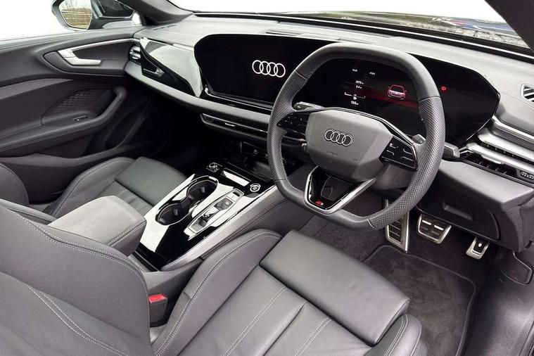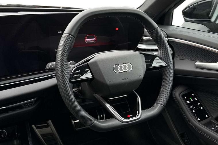 Adaptive cruise control, Advanced driver attention and fatigue montior, Audi application store, Audi assistant, Audi connect emergency call and service, Audi drive select, Audi smartphone interface, Audi virtual cockpit plus with 11.9" OLED colour display, Automatic start/stop system with coasting functionality, Camera based traffic sign recognition, Intersection assist, Lane departure warning, MMI navigation plus with high resolution 14.5" OLED touchscreen colour display, Park assist plus, Parking system plus with 360 display, Progressive steering with servotronic, Rear view camera, Swerve assist and turn assist, Traffic sign based speed limiter, Sports suspension lowered by 20mm, 2 USB-C ports in both the front and rear, Audi sound system impressive sound with 10 loudspeakers including centre speaker and subwoofer, 6-channel amplifier with a total output of 180 watts, DAB digital radio reception, Smartphone compartment with wireless charging, Aluminium window trims, Auto dimming rear view mirror, Body colour door mirrors, Door mirrors - electrically adjustable, heated, folding and auto dimming on both sides, Front and rear electric windows, Front door sill trims with aluminium inlays, illuminated with 'S' logo, High beam assist, LED headlights Plus incl. digital daytime running lights, turning light, all-weather light, motorway light, manouevring light and intersection light, LED rear lights pro incl. dynamic rear indicators and illuminated light strip with animated coming and leaving home function, LED third brake light, Privacy glass, Rear and side windows with heat insulating glass, Rear boot, Rear side wing doors, S Line badges on the front wings, S line bumpers, radiator grille and diffuser in phantom black and diffuser insert in matt anthracite, White rhombus logo projection light in exterior mirrors, Windscreen with acoustic glazing, 3 rear headrests, 3 seat rear bench, 3 spoke leather steering wheel with multi-function buttons with touch control, flattened on top and bottom, with S badging and contrast stitching, 3-zone automatic climate control, 40:20:40 split folding rear seat bench with centre armrest and cup holders, Comfort front centre armrest, Front and rear floor mats, Front seats with manual adjustment for position and 4-way electric lumbar support, Front sport seats with integrated headrest and S embossed logo, Headlining in black cloth, Heated front seats, i-Size child seat mounting on the front passenger side and outer rear seats, i-Size and top tether on the outer rear seats, Luggage compartment lid, electrically opening and closing, Manual steering column height and depth adjustment, Single front passenger seat, Stainless steel pedals and footrest, Steering wheel grips in perforated leather and shift paddles, Ambient lighting package plus - A5, 3x3 point rear seat belts, Driver airbag, Electric child safety locks, First aid kit with warning triangle and vests, Front emergency brake assist, Front passenger airbag, Front passenger airbag deactivation, Front side airbags with head airbag system and front interaction airbag, Hill hold assist, Seat belt monitoring with rear seat occupant reminder, Tyre pressure loss indicator, Anti theft alarm, Anti-theft wheel bolts, Keyless Go, Accent surfaces and control buttons in gloss black, Black dashboard with contrast stitching, Inlays in matt brushed aluminium with linear embossing, anthracite, Softwrap in leatherette with contrast stitching, Upper and lower interior elements in leatherette, Tyre repair kit,