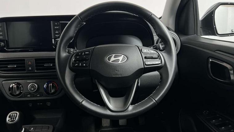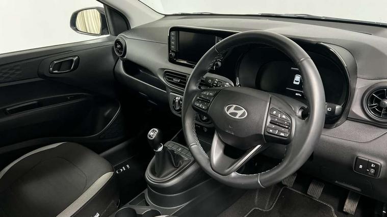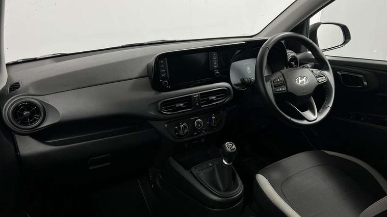 Apple car play/Android Auto, Bluelink mobile remote connectivity, Bluetooth connectivity with voice recognition, Cruise control, Driver attention alert system, eCall emergency call system, Forward Collision-Avoidance Assist (FCA) - Pedestrian/Cyclist, Front USB-C charging and USB-A data, Full-width 4.2" LCD instrument cluster, Intelligent speed limit assist, Lane departure warning system with lane keep assist - LKAS, Lane follow assist, PAS, Rear parking sensors, Rear view camera with guidelines, Roadside assistance, Start/Stop function, Tailgate, Trip computer, 2 front/2 rear speakers, Rear USB-C device charger, Steering wheel audio, phone and cruise controls, 1 speed non intermittent rear windscreen wiper, Black finish on B pillars, Body colour door handles, Body coloured bumpers, Body coloured door mirrors, Electric front windows, Electric rear windows, Electrically adjustable and heated door mirrors, Flat metal emblem, Front grille in matte black, Front intermittent wipers, Halogen daytime running lights, Halogen headlights, Headlights inner with Black Blade design, Heated rear window, High beam assist, Indicator light on door mirrors, Rear roof spoiler with integrated LED brake light, Rear side wing doors, 12v power outlet - front, 3 seat bench in 2nd row, 60/40 split folding flat to floor rear seats, Air conditioning, Auto light control, Bottle holders in front/rear doors + front centre console, Cabin and luggage compartment interior lighting, Cloth upholstery, Driver + passenger vanity mirrors, Driver's seat height adjustment, Driver/passenger sunvisors with ticket holders, Floor mats, Front door pockets, Front Head Restraints - Vertical and Horizontal Adjustment, Glove compartment, Height adjustable steering column, Isofix child seat preparation, Leather multifunction steering wheel, Rear door pockets, Single front passenger seat, Vertical adjustment rear head restraints, 3x3 point rear seatbelts, Airbags - front, front side and curtain airbags, Anti-lock brake system (ABS), Autonomous emergency braking (AEB) with forward collision warning system, Brake assist function, Childproof rear door locks, Electronic stability control, Front and rear seatbelt reminder, Front seatbelt pretensioners, Hill start assist control (HAC), Passenger airbag deactivate switch, Traction control, Tyre pressure monitoring system, Immobiliser, Perimeter alarm, Rear occupant alert, Remote central locking, Second remote key, Speed sensitive auto door locking, 15" Alloy wheels, Tyre repair kit,