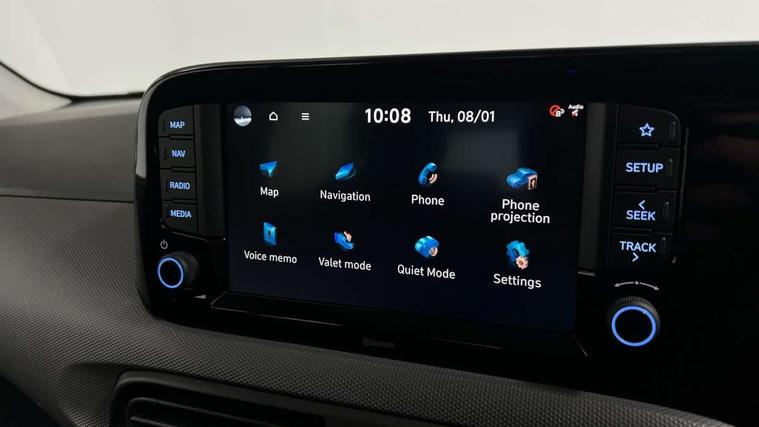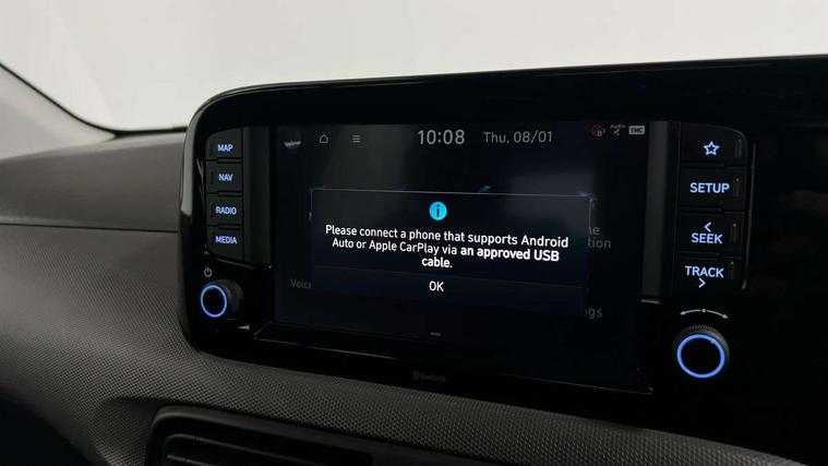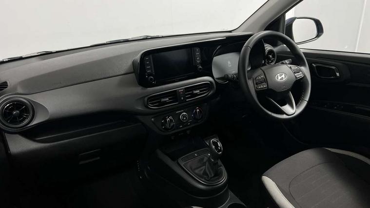 Apple car play/Android Auto, Bluelink mobile remote connectivity, Bluetooth connectivity with voice recognition, Cruise control, Driver attention alert system, eCall emergency call system, Forward Collision-Avoidance Assist (FCA) - Pedestrian/Cyclist, Front USB-C charging and USB-A data, Full-width 4.2" LCD instrument cluster, Intelligent speed limit assist, Lane departure warning system with lane keep assist - LKAS, Lane follow assist, PAS, Rear parking sensors, Rear view camera with guidelines, Roadside assistance, Start/Stop function, Tailgate, Trip computer, 2 front/2 rear speakers, Rear USB-C device charger, Steering wheel audio, phone and cruise controls, 1 speed non intermittent rear windscreen wiper, Black finish on B pillars, Body colour door handles, Body coloured bumpers, Body coloured door mirrors, Electric front windows, Electric rear windows, Electrically adjustable and heated door mirrors, Flat metal emblem, Front grille in matte black, Front intermittent wipers, Halogen daytime running lights, Halogen headlights, Headlights inner with Black Blade design, Heated rear window, High beam assist, Indicator light on door mirrors, Rear roof spoiler with integrated LED brake light, Rear side wing doors, 12v power outlet - front, 3 seat bench in 2nd row, 60/40 split folding flat to floor rear seats, Air conditioning, Auto light control, Bottle holders in front/rear doors + front centre console, Cabin and luggage compartment interior lighting, Cloth upholstery, Driver + passenger vanity mirrors, Driver's seat height adjustment, Driver/passenger sunvisors with ticket holders, Floor mats, Front door pockets, Front Head Restraints - Vertical and Horizontal Adjustment, Glove compartment, Height adjustable steering column, Isofix child seat preparation, Leather multifunction steering wheel, Rear door pockets, Single front passenger seat, Vertical adjustment rear head restraints, 3x3 point rear seatbelts, Airbags - front, front side and curtain airbags, Anti-lock brake system (ABS), Autonomous emergency braking (AEB) with forward collision warning system, Brake assist function, Childproof rear door locks, Electronic stability control, Front and rear seatbelt reminder, Front seatbelt pretensioners, Hill start assist control (HAC), Passenger airbag deactivate switch, Traction control, Tyre pressure monitoring system, Immobiliser, Perimeter alarm, Rear occupant alert, Remote central locking, Second remote key, Speed sensitive auto door locking, 15" Alloy wheels, Tyre repair kit,