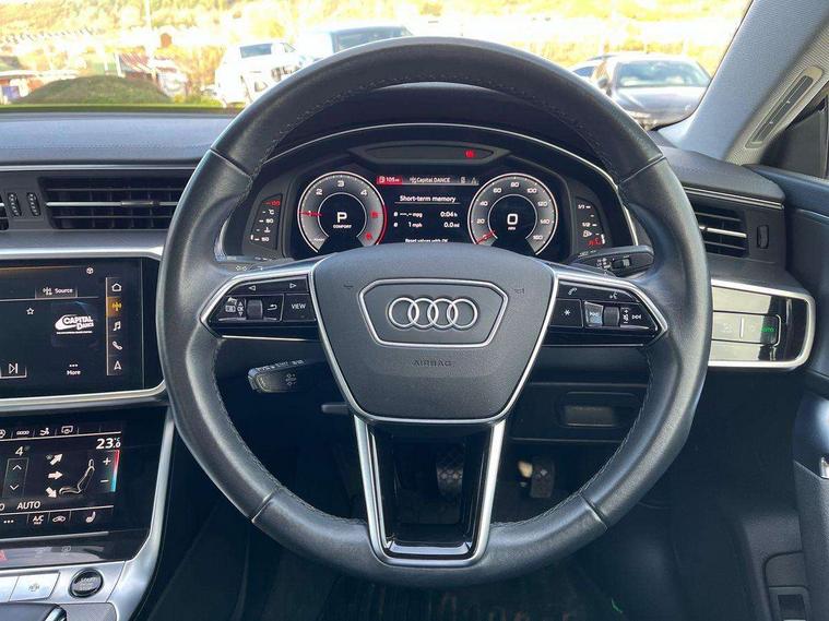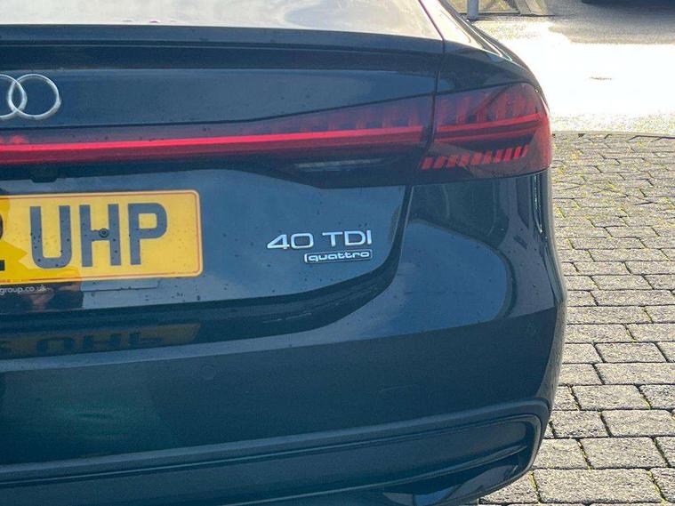 Audi connect safety and service (e-call), Audi connect with Amazon Alexa Integration, Audi drive select, Audi parking system plus - acoustic and visual park assist system for front and rear, Audi smartphone interface, Audi virtual cockpit - 12.3" high resolution LCD digital instrument cluster display, Automatic start/stop system with coasting functionality, Bluetooth interface, Colour driver's information system display, Cruise control system with speed limiter, Electric boot lid release, Lane departure warning system, MMI nav plus with MMI touch + 10.1" and 8.6" HD haptic touch screen/3D city models/country information/online map/route info and personal route assist, Operating buttons in black, glass look with haptic feedback, Power operated tailgate, Progressive steering, Rear view camera, Service indicator, Voice control system, 24 litre AdBlue tank, Diesel particulate filter, Standard suspension, Audi music interface - 2 USB ports with charger and data functions, Audi sound system with 6 channel amplifier, 180 watt amplifying capacity and 10 loudspeakers including subwoofer, Auxiliary input socket, DAB digital radio module, All weather LED headlights with LED DRL, Black rear diffuser with chrome inlays, Body coloured bumpers, Frameless auto dimming interior rear view mirror, Front and rear electric windows, Gloss black exterior mirror housings, Gloss black highlights on the exterior area of the Audi Single frame, Gloss black highlights on the front and rear bumpers, Gloss black highlights on the radiator grille, Gloss black highlights on the side windows trim strips, Heat insulating darkened glass in side and rear windows, High gloss black air inlets, High gloss black radiator grille with chrome single frame surround, LED rear lights, Privacy glass with side and rear windows, Rain and light sensors, Rear side wing doors, Rear wiper, Retractable rear boot spoiler, Third brake light, Towbar preparation, Windscreen with heat-insulating glass, 2 zone deluxe electronic climate control, 3 spoke high multi-function leather steering wheel with shift paddles, 4-way electric lumbar support, 40/20/40 split folding 3 seater rear seat bench with rear centre armrest, Door sills trims with aluminium inlays, Electrically adjustable front seats - driver seat with memory, Front and rear headrests, Front centre armrest, Front/rear floor mats, Heated front seats, Height/reach adjust steering wheel, Illuminated sun visors with vanity mirrors, ISOFIX child seat mounting and top tether in front and outer rear seats with front passenger airbag deactivation, Leather gear knob, Leatherette upper instrument panel and door shoulders, Luggage compartment floor, Lunar silver cloth headlining, Single front passenger seat, Tool kit and car jack, LED interior ambient lighting pack - A7, Non smoking pack - A7, 3 point seatbelts on all seats, Audi pre-sense front, Driver and passenger airbags, Electromechanical parking brake, Electronic stabilisation control including ABS, ASR and EDL, Extended pedestrian protection measures, Hill hold assist, Manual child lock in rear doors, Seatbelt monitoring, Tyre pressure warning light, Warning triangle and first aid kit, Anti theft alarm with tow away protection, Anti-theft wheel bolts and wheel loosening detection, Immobiliser, Keyless Go, Preparation for tracking system, Remote central locking, Aluminium fragment inlays, 19" multi-spoke design light alloy wheels in high-sheen graphite grey,