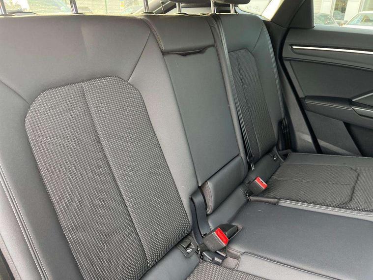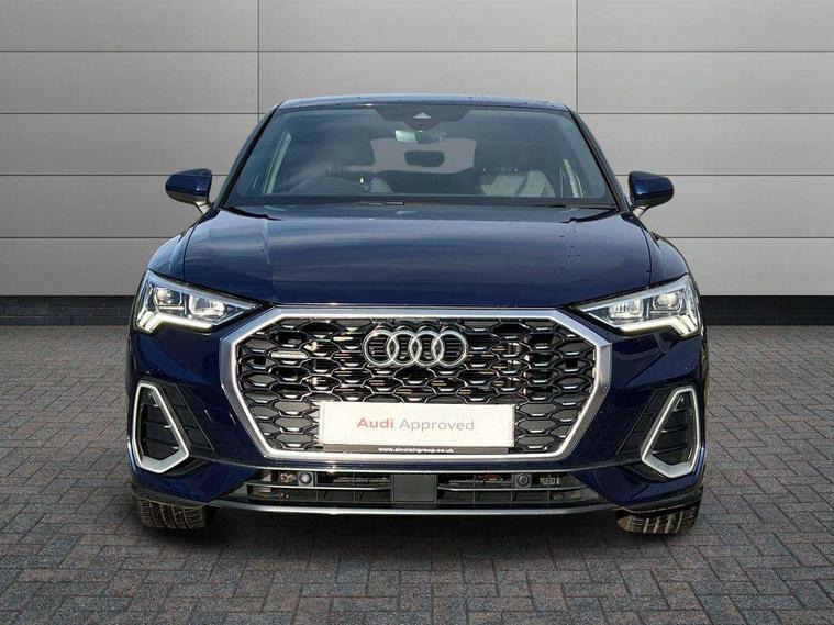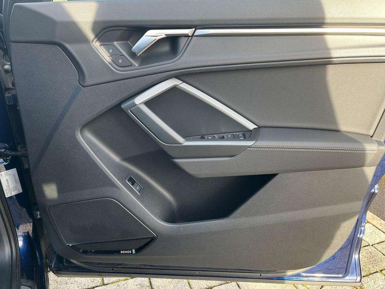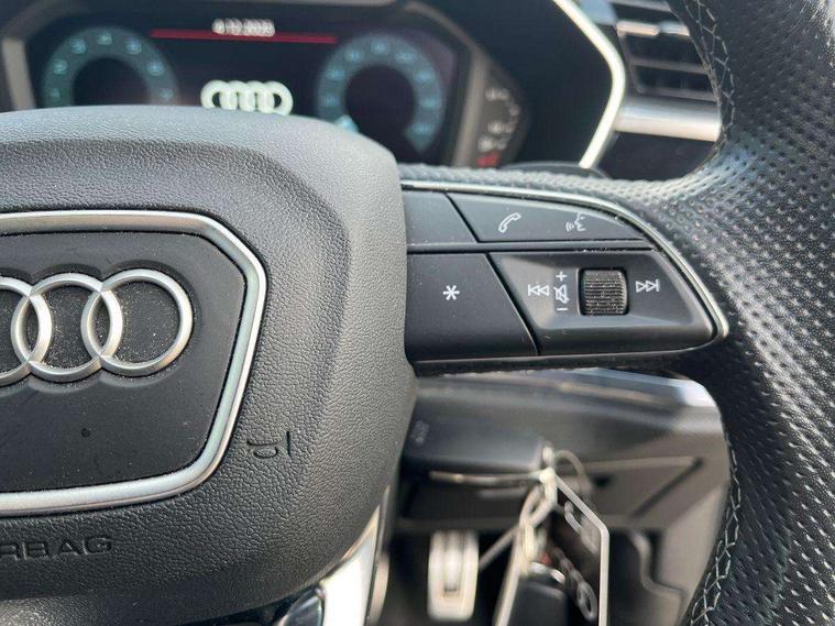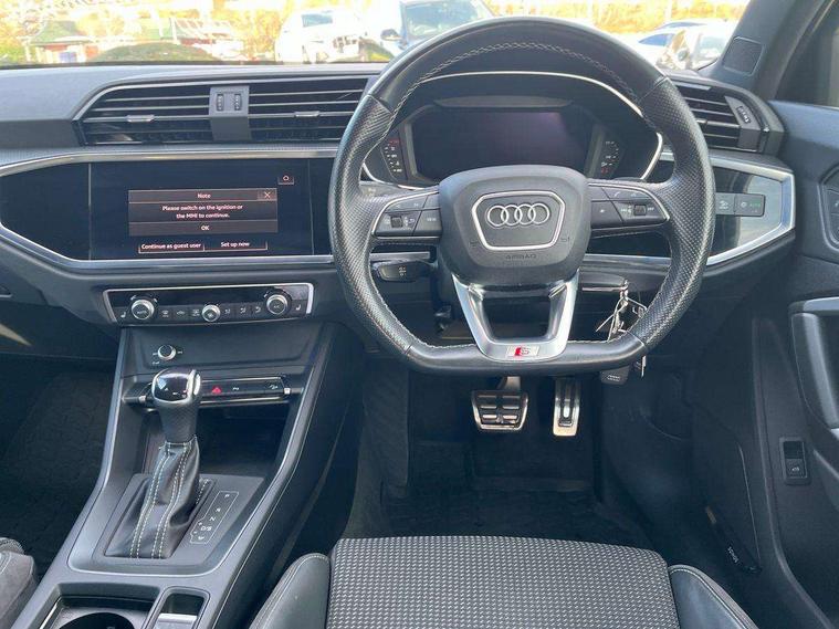 Audi connect safety and service (e-call), Audi drive select, Audi lane departure warning, Audi Virtual Cockpit - 10.25" display, Bluetooth interface, Camera based traffic sign recognition, MMI Navigation Plus with high resolution 10.1 inch touchscreen colour display, Power operated tailgate, Progressive steering, Service interval indicator, Smartphone interface includes wireless Apple carplay/Android Auto, Start stop system with recuperation, Voice control system with natural language interaction, Sports suspension, 2 USB-C ports with charge and data functions, 6 passive loudspeakers, DAB digital radio module, Acoustic windscreen, Aluminium window trim, Auto dimming frameless rear view mirror, Diffuser grille in grained matt black, Diffuser trim in selenite silver, Electrically folding, adjustable and heated door mirrors with integrated LED side indicators and kerb view function for passenger side, Front and rear electric windows, Front fog lights, Front side air inlets in selenite silver, Front underbody protection in manhattan grey paint finish, Grille surround in aluminium silver matt, High gloss black finish B and C pillars, LED headlights with LED daytime running lights, LED rear lights, LED third brake light, Privacy glass dark tinted rear and rear-side windows (from B-pillar backwards), Radiator grille in titanium black with inlay in matt aluminium silver, Rain and light sensors, Rear side wing doors, Rear underbody protection in matt black, Rear wiper, S line badges on front wings, Side skirt insert in matt Platinium grey, Variable front intermittent wipers, 12V socket in rear centre console, 3 seat bench in 2nd row, 40:20:40 folding with manual adjustment for 60:40 forwards/backwards position and backrest angle, Adjustable rear seat bench/backrest with centre armrest and cupholder, Black cloth headlining, Dual zone electronic climate control, Front and rear black floor mats with contrast stitching, Front and rear headrests, Front and rear roof module including reading lights, Front centre armrest, Glove compartment lighting, Height and reach adjustable steering wheel, Illuminated door sill trims with S logo, ISOFIX child seat mounting for front passenger with airbag deactivation and outer rear seat including top tether attachment point for outer rear seats, Luggage compartment light right in white, Luggage compartment sill protection in stainless steel, Manual front seats with height adjustment, Perforated leather gearknob, Single front passenger seat, Stainless steel pedals, Non smoking pack - Q3, 3x3 point rear seatbelts, 6 airbags - Driver, front passenger, curtain and side windows, Audi pre-sense front with pedestrain and cyclist recognition, Electromechanical parking brake, Electronic stabilisation control including ABS, ASR and EDL, Front seatbelt reminder, Hill descent control, Hill hold assist, Manual child lock in rear doors, Pre sense basic, Seatbelt monitoring, Tyre pressure warning, Warning triangle and first aid kit, Anti theft alarm, Anti theft wheel bolts, Immobiliser, Remote central locking, Black dashboard, Dark matt brushed aluminium inlay, Detail dashboard around MMI touch colour display in glass look, black with surround in aluminium look, Leatherette door armrest,