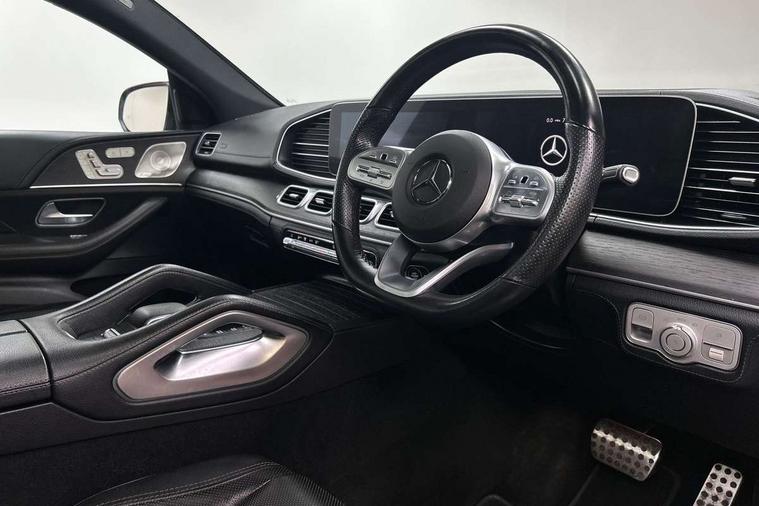 Attention assist, Cockpit display 12.3" widescreen digital instrument cluster, Crosswind Assist, Cruise control, Direct steer speed sensitive steering, DYNAMIC SELECT with a choice of driving modes (ECO, Comfort, Sport and Individual), Easy-pack tailgate - Powered opening/closing automatically, ECO start/stop function, Head up Display, Lane keeping assistant (LKA), Mercedes me connect including emergency call system, accident recovery, breakdown and maintenance management, Outside temperature display, rear seatbelt status indicator, Parking pilot with 360 degree camera, Reversing camera, Service indicator (ASSYST), Smartphone integration with Apple CarPlay and Android auto, Sports direct steer system with speed sensitive power assistance, Traffic Sign Assist, Traffic sign recognition including wrong way warning function and display of posted speed limits in the instrument cluster, 4MATIC permanent four wheel drive, 85 litre fuel tank, 9G TRONIC automatic transmission with steering column gear selector, DIRECT SELECT steering wheel gearshift paddles, Airmatic air suspension with adaptive damping system, Diesel particulate filter (DPF), Bluetooth interface for hands free and audio streaming, Burmester surround sound system, DAB Digital radio, Hard disk navigation with MBUX multimedia system, 3rd brake light, Adaptive brake lights, Adaptive high beam assist plus, Aluminium look, illuminated running boards with rubber studs, AMG bodystyling front and rear bumpers, Body colour door mirrors, Body coloured bumpers, Daytime running lights, Electric panoramic sunroof with sunblind, Electric windows with one touch opening/closing and obstruction sensors, Exhaust system - twin pipe with two integrated chrome tailpipe trims, Front and rear underbody protection with chrome look finish, LED tail lamp, Magic vision control with adaptive windscreen wiper system, Multi beam LED headlights, Privacy glass - heat insulating dark tinted glass, Radiator grille with integrated star and single louvre in matt iridium silver with chrome trim, Rain sensing windscreen wipers, Rear side wing doors, Rear wash/wipe, Top surround of side windows in polished aluminium, 2 cup holders in front and rear, 2 rear head restraints, 3 seat bench in 2nd row, 3 spoke AMG multifunction steering wheel with touch control buttons, trimmed in black nappa leather with flattened bottom section, 4 way adjustable front head restraints and 2 way rear head restraints, 40:20:40 split folding rear seats, AMG floor mats with AMG lettering, Artico man-made leather upper dash trim, Automatic child seat recognition sensor, Climatised front seats, Courtesy lights in rear grab handles with reading light functionality, Driver and front passenger cup holders temperature controller, Electric adjust front headrests, Electrically adjustable front seats with memory function, Electrically height and reach adjustable steering column with memory, Folding rear armrest, Front centre armrest with stowage compartment and illuminated grab handles, Glove compartment - lockable, air conditioned and illuminated, Heated front seats, Illuminated stainless steel door sill panels with Mercedes-Benz lettering, Interior lighting - 64 colour Ambient lighting, Luggage compartment cover, Nappa leather upholstery, Single front passenger seat, Sports pedals with stainless steel surfaces and rubber studs, Sunvisors with illuminated vanity mirrors, Thermotronic automatic 4 zone climate control, Touchpad, Two (type C) USB ports in centre console, Acoustic comfort pack - GLE Coupe, Driving assistance pack - GLE Coupe, Interior chrome package - GLE, KEYLESS-GO Comfort package - GLE Coupe, Memory package - GLE Coupe, Mirror package - GLE Coupe, Parking package - GLE Coupe, 3x3 point rear seatbelts, Active bonnet, Active braking assist, Airbags - windowbags, Anti-lock braking system (ABS), Child proof door locks, Downhill speed regulation (DSR) with switch and variable speed control, Driver/front passenger airbag, Drivers knee airbag, Electronic four wheel traction control, Electronic parking brake, Electronic stability programme with acceleration skid control, First aid kit, warning triangle and high visibility jacket, Front side airbags, Hill hold function, Hill start assist, ISOFIX child seat attachment points two outer rear seats, Perforated front brake discs and brake calipers with Mercedes-Benz lettering, Pre-Safe anticipatory safety system, Tyre pressure monitoring system, Alarm system/interior protection/immobiliser, Chrome surround in electric key, Remote central locking, Urban guard vehicle protection, Dashboard and door, anthracite open pore oak wood trim, 22" AMG 5 twin spoke tremolite grey with high sheen finish light alloy wheels, Summer tyres with noise reducing absorber, TIREFIT with tyre inflation compressor,