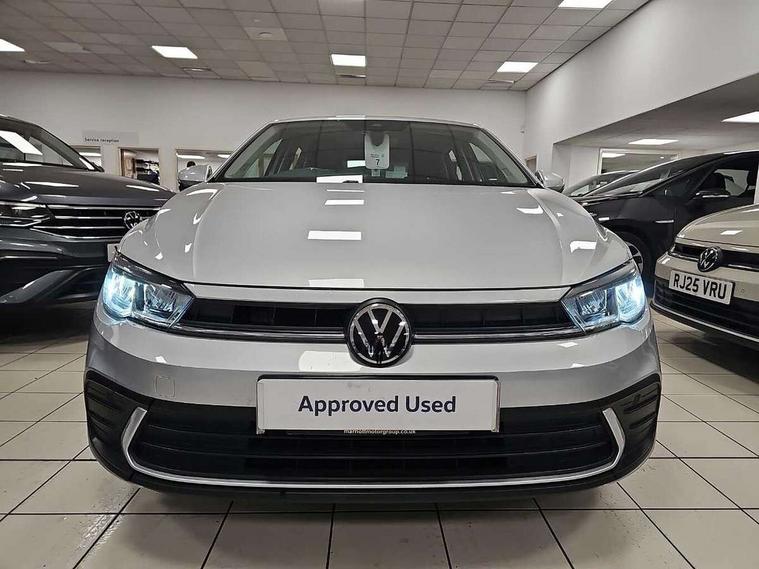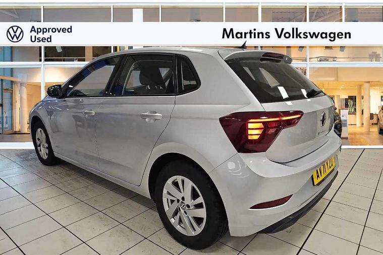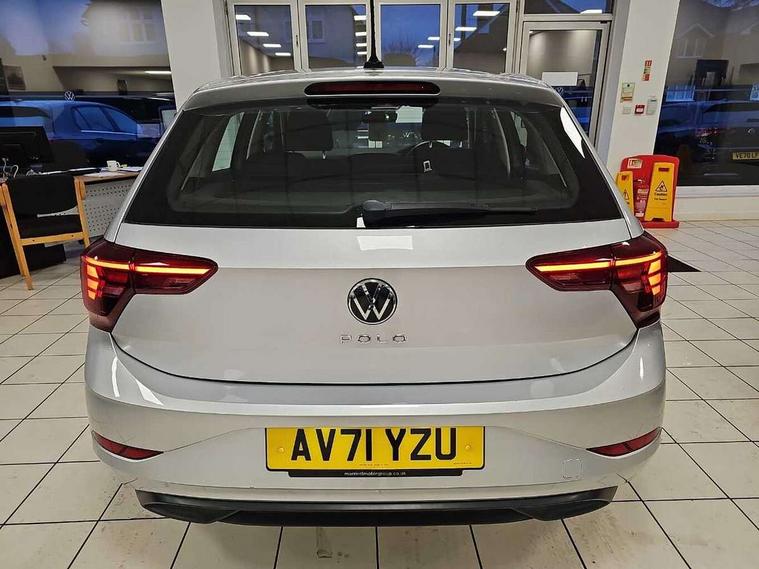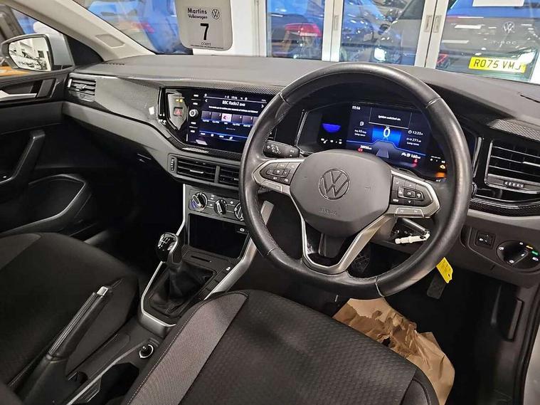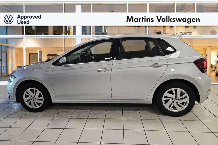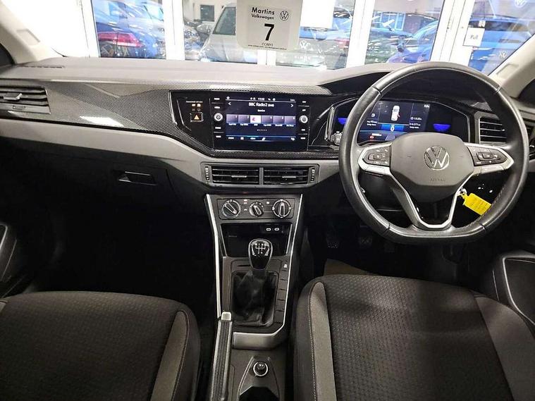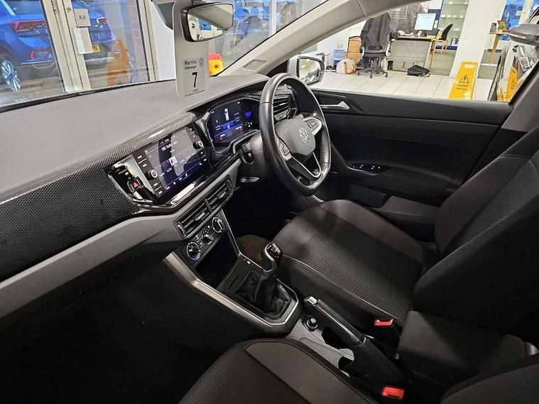 Adaptive cruise control without follow-to-stop and speed limiter, Bluetooth mobile phone interface, Driver alert system, Emergency call service, Front assist system, Power assisted speed sensitive steering, Preparation for We connect and We connect plus, Speedo and rev counter, electronic odometer, trip, service interval display and fuel gauge, Standard rear axle, Travel Assist - Lane keeping system and traffic jam assist, Travel assist including emergency assist, Trip computer, Warning signal and warning light for front and rear seatbelts not fastened, Washer fluid level indicator, Wireless app connect, Front wheel drive, Rear shock absorpion, Start-stop system with battery regeneration (recuperation - energy recovery during braking), DAB Digital radio, Diversity antenna for FM reception, Automatic dimming interior rear view mirror, Body colour bumpers, Body colour door handles, Body colour door mirrors, Electric front windows, Heat insulating darkened glass in side and rear windows, Heat insulating glass windscreen, Power folding adjustable/heated exterior mirrors and front passenger exterior mirror lowering function, Rain sensor, Rear electric windows, Rear fog light, Rear side wing doors, Rear windscreen washer and wiper with interval delay, Third brake light, 12V power socket in centre console, 2 front and 2 rear reading lights, 2 USB-C ports in the front, 2 USB-C charging sockets on the center console in the rear, 3 rear head restraints, 60/40 split folding rear seat and rear seat bench not split, Ceramique headliner, Chrome plated radiator grille inserts, air vent surrounds and light switch surrounds, Door and side trim panel, Driver and front passenger seat height adjustment, Driver/passenger sunvisors with illuminated vanity mirrors, Front centre armrest, Front seat backrest storage pockets, Front standard seats, Handbrake lever handle in leather, Hartley/Thomas cloth upholstery, Isofix child seat preparation easy-fit (for two outer rear seats, and front passenger seat) compatible with I-size, Leather trimmed gear knob, Luggage compartment cover, Luggage compartment floor, Luggage compartment lighting, Multifunction steering wheel, Single front passenger seat, Standard pedal cluster, Light and vision pack - Polo, 3 point height adj front seatbelts + pretensioners, 3x3 point rear seatbelts, ABS, Driver and front passenger airbag with front passenger airbag deactivation, Drivers and front passengers safety optimised head restraints, ESC (Electronic stability control) + EDL (Electronic Differntial lock) and ASR (Traction control), Extended and predictive pedestrian/ cyclist protection, Front curtain and side airbags with center airbag, Front disc brakes, Hill hold control, Manual child lock in rear doors, Rear drum brakes, Single tone horn, Tyre pressure loss indicator, Alarm with interior protection, Anti-theft alarm system with interior monitoring, backup horn, and towing protection, Anti-theft wheel bolts, Electronic engine immobiliser, Lava stone black gloss/matt decorative inserts in dash and front door panels, Low rolling resistance tyres,