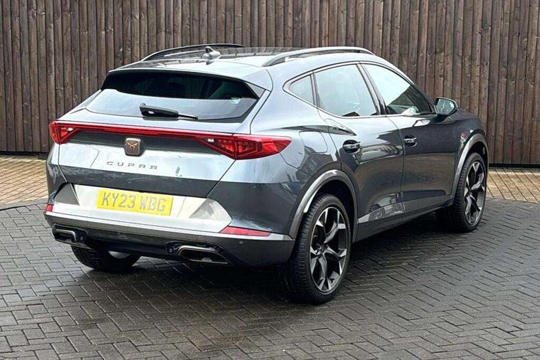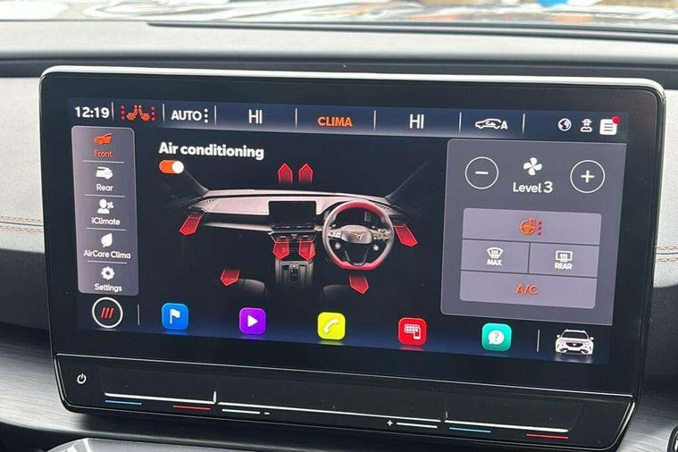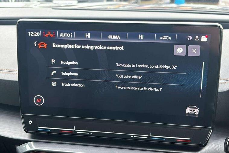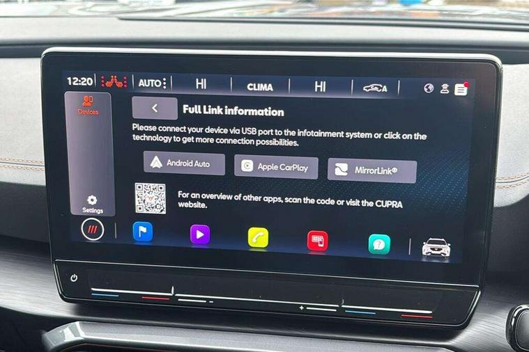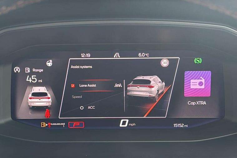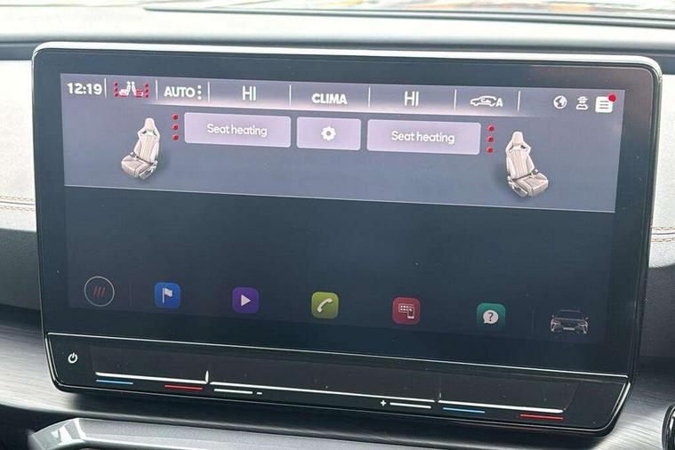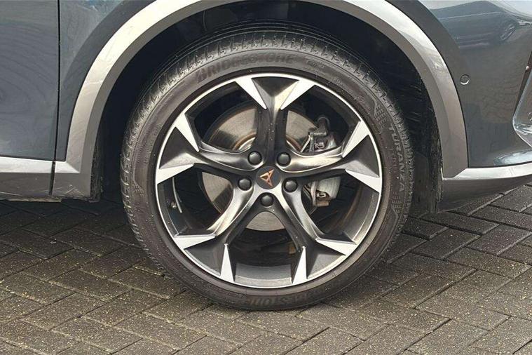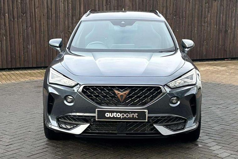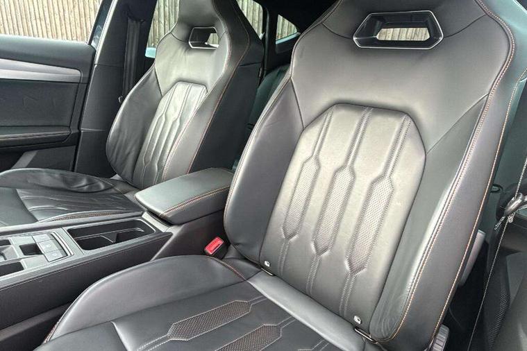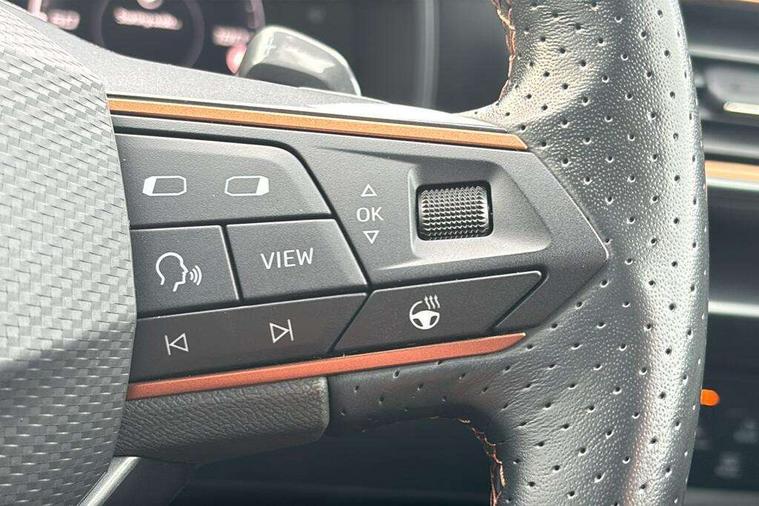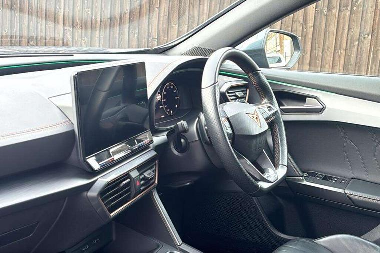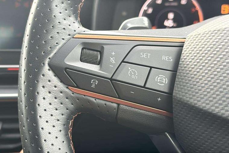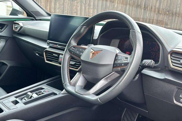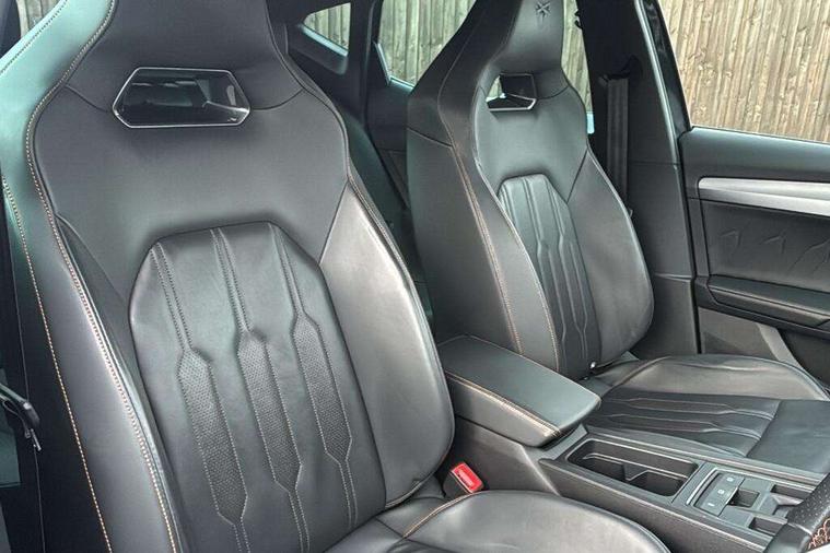 Digital cockpit and configurable dashboard, Driver alert system, Driving profile selection, Forward collision warning with automatic braking, Lane assist, Navigation system with 12'' Touchscreen Display, Park assist (inc front/rear parking sensors), PAS, Predictive adaptive cruise control with speed limiter, Rear view camera, RPM, trip computer, outside temp gauge, instrument light brightness, low fuel warning light, lights on reminder, gearshift indicator, Service interval indicator, Start/stop system with regenerative braking, Voice control system, Wireless apple carplay, Wireless phone charger, Electronic locking differential and dynamic traction support, Standard suspension, 2 front and 2 rear USB type C sockets, Auxiliary input socket, DAB radio, Auto dimming rear view mirror, Body colour door handles, Body coloured bumpers, Dark grey wing mirror, Daytime running light with automatic headlight control and coming home feature, Dynamic headlight range control, Electric front/rear windows, Electrically adjustable heated and folding door mirrors with memory function, Front fog lamps with cornering function, Gloss black roof rails and window surrounds, LED Headlights, LED Taillights with dynamic indicator, Rain sensing wipers, Rear diffuser with black simulated exhaust pipes, Rear side wing doors, Rear wash/wipe, Third brake light, Tinted rear windows, Welcome lights, 12v power supply in centre console, 12V socket, 12v socket in loadspace, 2 front and 2 rear reading lights, 230V socket, 3 seat bench in 2nd row, 60/40 split rear bench seat with armrest and mechanical seat release, Black headlining, Dust/pollen filter, Front and rear head restraints, Front centre armrest, Height/reach adjust steering wheel, Illuminated interior front door sills, Illuminated sunvisor with mirror, Isofix, Leather multi function heated steering wheel with gear shift paddles, Luggage tie-down hooks, Single front passenger seat, Three zone climate control with control panel in rear, Variable luggage/load compartment floor, Wraparound lighting, Genuine Nappa leather Pack - Cupra, 3 point seatbelts on all rear seats, ABS, Brake control system - ESC and brake booster, Child proof door locks, Driver and front passenger airbags with front passenger airbag de-activation, Electronic parking brake, Front and rear disc brakes, Front side curtain airbags, Hill hold control, Public e-call, Seat belt reminder for front and rear seats, Tyre pressure monitoring system, Anti theft alarm system, Keyless entry and start system (KESSY), Locking wheel bolts, Copper and aluminium interior detailing, 19" 'Exclusive' machined sport matte black and silver alloy wheels,
