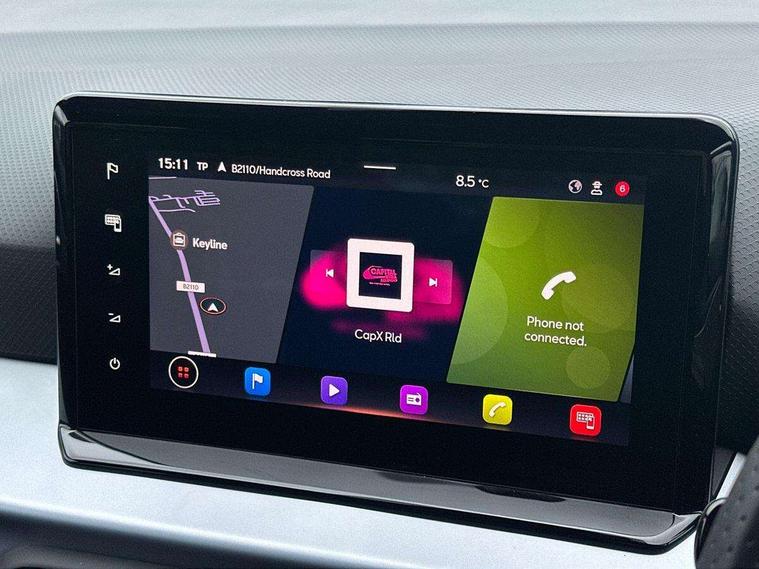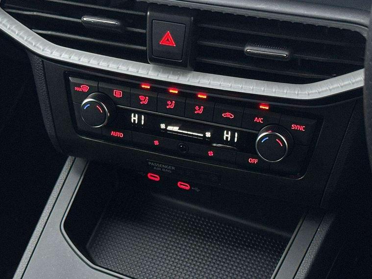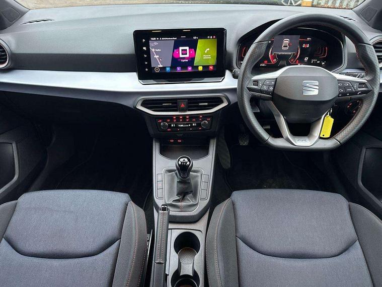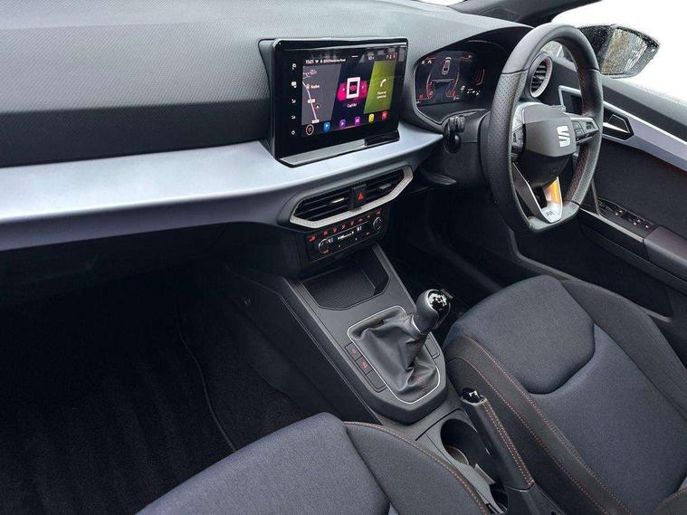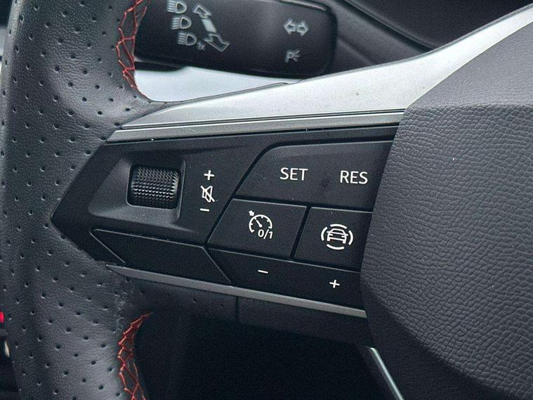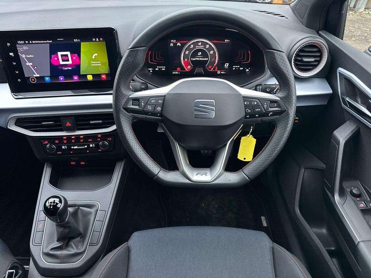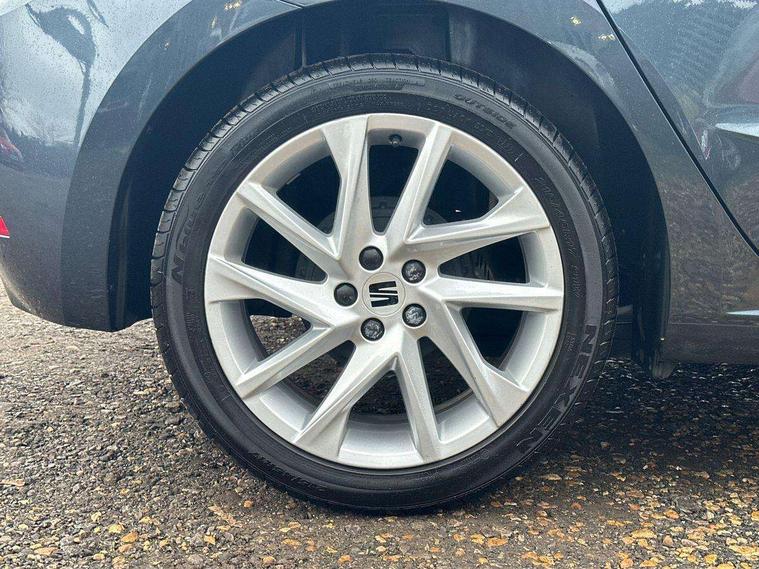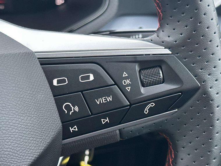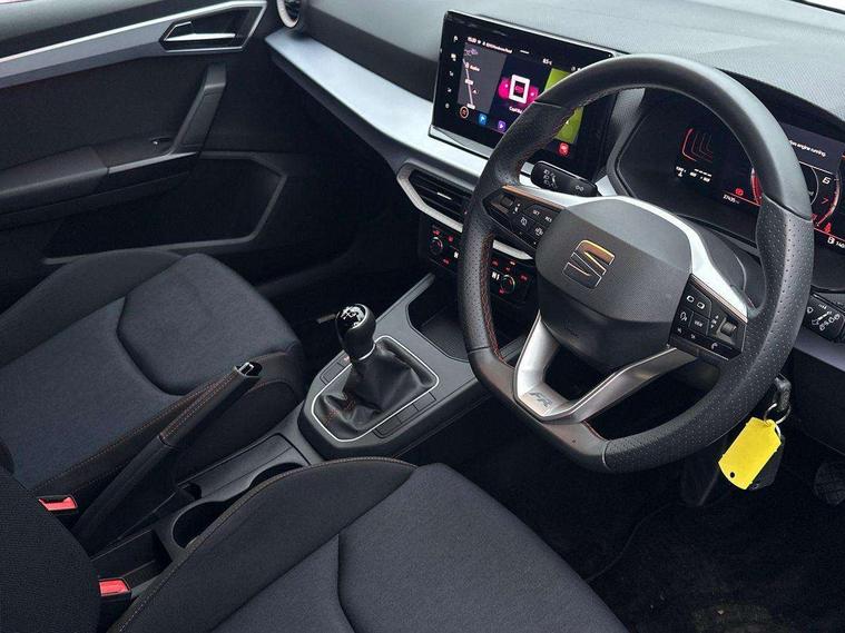 'Lights On' Reminder warning buzzer, 8" Digital cockpit, 9.2" touchscreen navigation system with type C USB socket, Voice control and DAB/AM/FM radio, Auto start and stop system, Bluetooth audio streaming with handsfree system, Cruise control, Digital clock, E-call, Full link smartphone integration with mirror link, wireless apple carplay, Google android auto + USB Type C cable for apple and android devices, Lane assist, Low fuel warning light, Outside temperature gauge, Power Steering, Seat connect with safety, service, remote and online, SEAT logo boot release, Speed limiter, Trip computer, Sports suspension, Auxiliary input socket, Radio/MP3 player, SD card slot, Steering wheel mounted controls, Anti theft roof antenna, Auto dimming rear view mirror, Automatic rain sensing wipers, Black door mirrors, Body colour bumpers, Body colour door handles, Brilliant black window surrounds, Dark tinted rear windows, Electric adjustable/heated/folding door mirrors, Electric front windows, Electric headlight adjustment, Electric rear windows, Front/rear fog lights, FULL LED automatic headlights with dynamic headlight range control, coming and leaving home, LED daytime running lights, LED tail lights, Rear roof spoiler with FR twin exhausts, Rear side wing doors, Rear wiper, Third brake light, 3 seat bench in 2nd row, 60/40 split folding rear seat, Ambient interior lighting, Chrome detailing and black headlining, Cloth upholstery, Dual zone climate control with combination filter, Front courtesy lights, Front cupholders x 2, Front reading lights, Gear shift indicator, Glovebox, Height adjustable front and rear headrests (five), Height adjustable front seats, Height/reach adjust steering wheel, Illuminated air vent surrounds, Illuminated boot, Instrument lighting with brightness control, Isofix, Leather multifunction flat bottomed sports steering wheel, Passenger sunvisor, Single front passenger seat, Sports seats, Sunvisors with mirror and driver side card holder, 3 point seatbelts on all 3 rear seats, ABS, Active front headrests, Child locks on rear doors, Electronic stability control, Energy recovery system, Front assist forward collision warning and autonomous emergency braking, Front driver and passenger side airbags with curtain airbag and front passenger airbag deactivation, Hill hold control, Multi-Collision braking, Seat belt reminder for front and rear seats, Tiredness recognition system, Tyre pressure monitoring system, Electronic engine immobiliser, Locking wheel bolts, Perimeter alarm and interior monitoring with backup horn and tow away protection, Remote central locking + deadlocks, 17" Alloy wheels in Brilliant silver, Emergency tyre repair kit,
