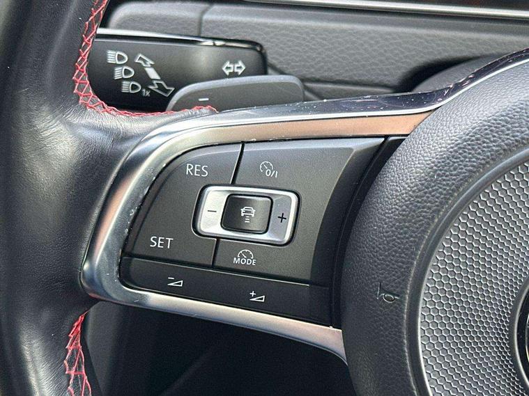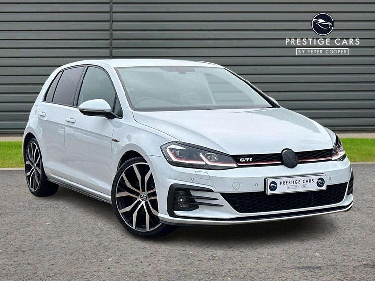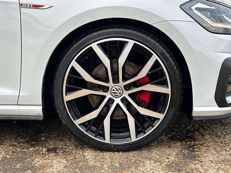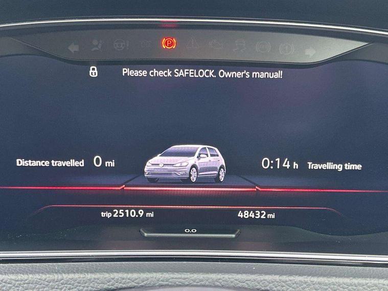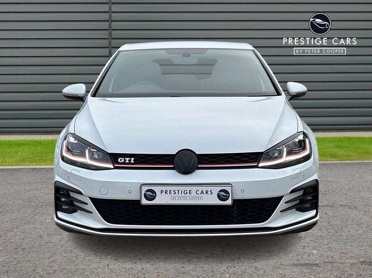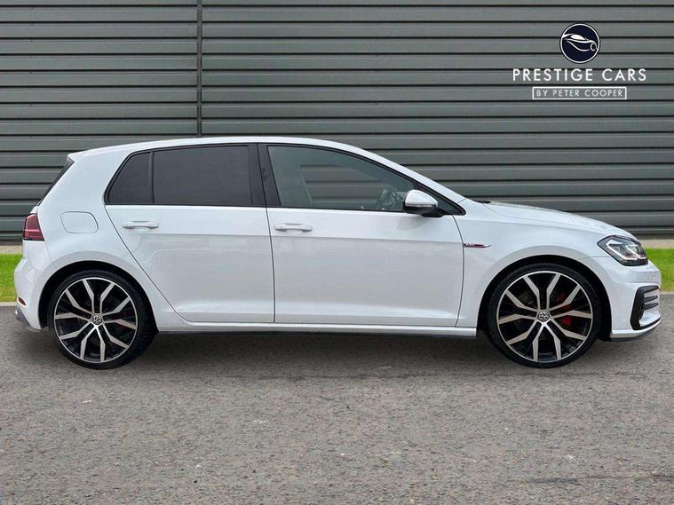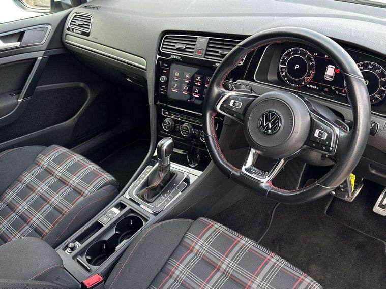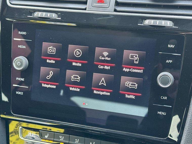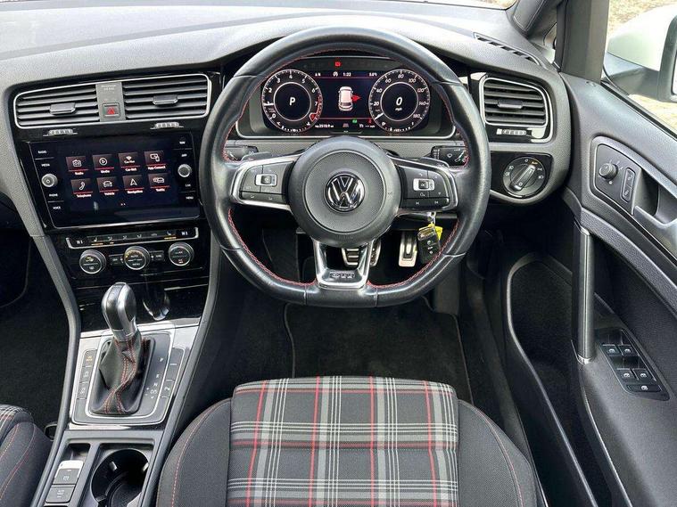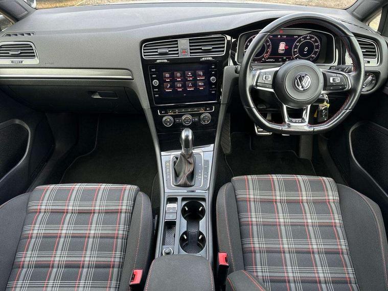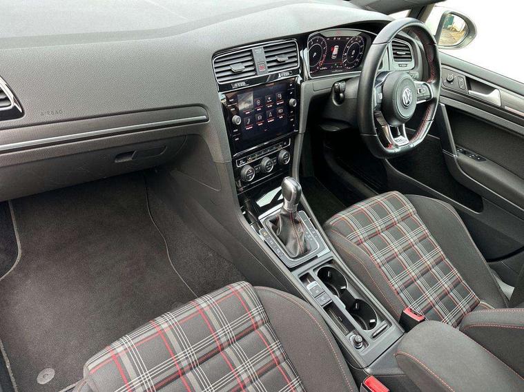'Lights On' Reminder warning buzzer, 8" touch screen, Adaptive Cruise Control with pedestrian detection and speed limiter, App-Connect, Bluetooth hands free telephone connection, Brake pad wear indicator warning light, Driver alert system, Driver profile selection, Exterior temperature gauge, Front assistant collision mitigation, Instrument cluster in white, Multifunction computer, Progressive power assisted steering, Rev counter, Trip and service interval display, Ultrasonic front and rear optical and audible parking sensors, Warning buzzer and light for front seatbelts unfastened, Anti-tramp function, Lowered sports suspension, XDS plus electronic differential lock, CD/MP3/WMA, USB and SD card reader, aux-in, Composition media system, DAB Digital radio, 3D-LED-SBBR with sweeping indicator, Auto dimming rear view mirror, Automatic coming/leaving home lighting function, Automatic headlights, Black rear diffuser, Body colour door handles, Body colour door mirrors, Body colour rear roof spoiler, Body colour sports bumpers, Electric front windows, Electric rear windows, Electrically adjustable and heated door mirrors, Heated rear windscreen, Honeycomb radiator grille - black, LED daytime running lights, LED front fog lights, LED rear lights, Rain sensor, Rear windscreen washer and wiper with interval delay, Twin exhaust tailpipe, 12V socket in luggage compartment, 3 rear headrests, 3 spoke steering wheel, 60/40 split folding rear seat, Air conditioning - 2 zone electronic climate control, Bag hook in luggage compartment, Black headlining, Boot lashing points, Cooled glovebox, Courtesy light delay, Cover for storage compartment in centre, Dust/pollen filter, Front + rear carpet mats, Front centre armrest with storage box and rear air vents, Front passenger seat height adjust, Front seat back storage pockets, Gearshift paddles, Grab handles, Height adjustable driver's seat, Height/reach adjust steering wheel, Illuminated door sills, Illuminated vanity mirrors, Isofix preparation for 2 rear child seats, Load through provision with rear centre armrest and cupholders x2, Luggage compartment cover, Luggage compartment lighting, Multi-function leather steering wheel with red stitching, Overhead storage box, Stainless steel pedals, Storage box in luggage compartment, Storage compartments in doors, Sun visors, Variable boot floor, height adjustable and removable, Ambient lighting pack - Golf, Mirror pack - Golf, 3 point height adj front seatbelts + pretensioners, 3 rear 3 point seatbelts, ABS, Automatic post collision braking, Child locks on rear doors, Driver/Front Passenger airbags, Driver/Passenger whiplash optimised head restraints, Drivers knee airbag, Electronic parking brake with auto hold, ESP with EDL + ASR, Front and rear curtain airbags, Front passenger airbag deactivation, Front side airbags, Pre crash system, Red brake calipers, Tyre pressure monitor, Alarm with interior protection, Electronic engine immobiliser, Remote central locking with 2 remote folding keys, Chrome-plated light switch surround, Honeycomb black decorative inserts, Piano black centre console, Space saver spare wheel,