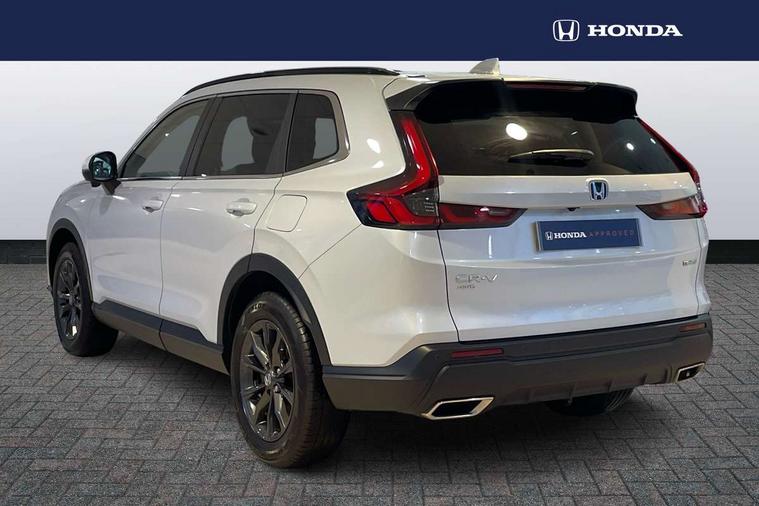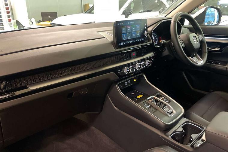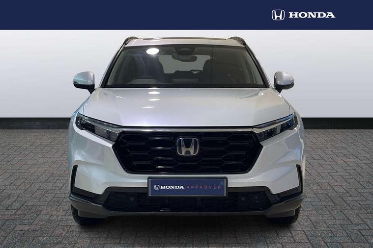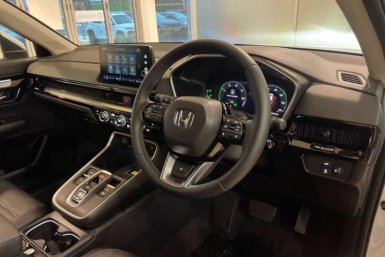 10.2" Multi information display, 4 x front and 4 x rear parking sensors, Active lane change assist, Adaptive cruise control with Cornering speed assist, Adjustable speed limiter, Agile handling assist, BLIS (Blind Spot Information System) with Cross Traffic Monitor, Bluetooth hands free telephone connection, Crossing traffic warning front, Drive mode (Econ, Normal, Snow, Sport), Driver attention monitoring system, E-call, eCall emergency call system, Electric power steering, Emergency stop signalling system, Forward collision warning, Handfree power tailgate with kick sensor and walk away close, HEV mode, Honda 360 sensing, Honda CONNECT with Navigation 9" touchscreen, AM/FM/DAB, Apple Carplay and Android Auto, live traffic info, Intelligent speed limiter, Lane change collision mitigation, Lane departure warning system, Lane keep assist system, Lane watch, Lead car departure notification system, Low speed following, Power meter, Rear view camera, Road departure mitigation, Traffic jam assist, Traffic sign recognition, Wireless apple carplay, Wireless charging, Amplitude reactive damper, Vehicle stability assist, 1X USB (A/2.5A) and 1x Charger (C/3A) on Front, 8 Speakers, DAB+ radio, Dashboard centre speaker, Front tweeters, Premium audio speakers, Rear USB 2x Charger (C/3A), Steering wheel mounted controls, Auto dimming rear view mirror, Auto headlights, Auto wipers, Body colour bumpers, Body colour door handles, Body colour plus material colour roof spoiler, Body coloured shark fin antenna, Chrome + black paint grille, Electrically adjustable and heated door mirrors, Electrically folding door mirrors, Exhaust pipe finisher, Exterior mirror tilt for reverse, Front and rear electric windows, Front LED Indicator lights, Front turn type led with sequential, Headlight auto on/off timer, High beam assist, LED 3rd brake light, LED daytime running lights, LED front fog lights, LED Headlights, LED rear lights, Low gloss black window garnish, Panoramic opening glass sunroof, Privacy glass, Rain sensor, Rear side wing doors, Rear wiper, Roof rails, Trailer stability assist, Welcome home function, 3 seat bench in 2nd row, 4 way driver lumbar support, 4 way electrically adjustable passenger seat without height adjust, 60/40 split folding rear seat, 8 way electrically adjustable drivers seat, Accessory sockets in Front & Trunk, Air conditioning - Rear vent, Ambient light in roof, Cargo net hooks, Courtesy lights, Driver and front passenger seat armrests, Driver/passenger front seatback pockets, Driver/passenger sunvisors and vanity mirrors, Driver/passenger sunvisors with illuminated vanity mirrors, Dual zone automatic climate control, Film hairline interior panels, Footwell ambient interior light front and rear, Front and rear ambient light (door handle&door line) and front cup holder, Front centre armrest, Front map lights, Genuine leather steering wheel, Heated front seats, Heated steering wheel, Hybrid emblem, I-Size ISO Fix Points, Instrument panel with garnish wood film, Leather upholstery, Light roof lining, Luggage floor box, Meter illumination, Normal pedals, Platinum chrome interior door handles, Rear centre armrest, Rear headrests, Rear reading lights, Reclining rear seats, Single front passenger seat, Sunglasses holder, Synthetic headrest, Tilt/telescopic adjustable steering wheel, Tonneau cover, Trunk light, Exclusive styling pack - CR-V, 5 x 3 point seatbelts, ABS/EBD, Anti-whiplash front headrests, Brake assist function, Collision mitigation braking system, Deflation detection system, Driver airbag, Driver SRS airbag (single stage inflation), Electronic parking brake with auto hold, Front and rear collision mitigation throttle control, Front and rear curtain airbags, Front and rear seat belts with emergency locking retractor (ELR), Front centre airbag, Front passenger airbag, Front side airbags, Hill descent control, Hill start assist, Knee airbags (DR) and (AS), Low speed brake system, Manual child lock in rear doors, Paddle deceleration control, Passenger SRS airbag with cut off switch, Rear side airbags, Honda super locks, Immobiliser, Mirrors and windows key fob operation, Remote central locking with 2 key fobs, Security alarm, Selectable door unlock, Smart entry + Smart start, Tilt sensors, Ultrasonic security sensor, Flat tyre solution temper tyre/repair kit,