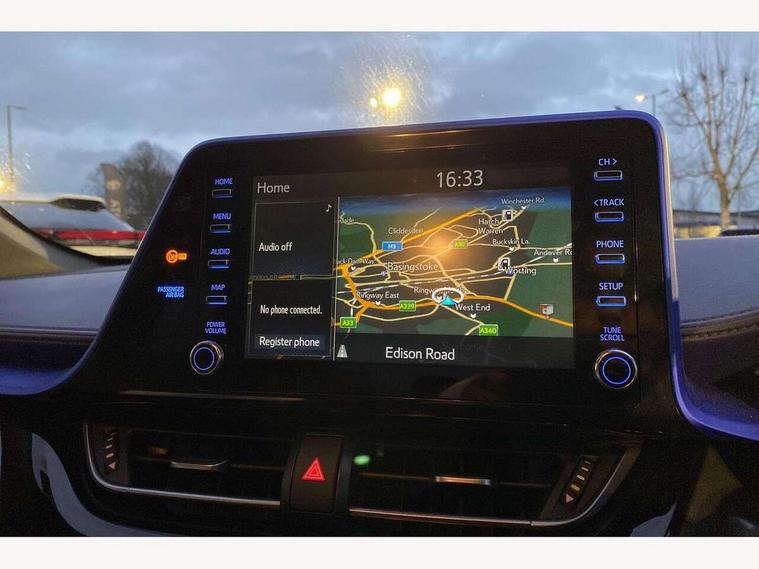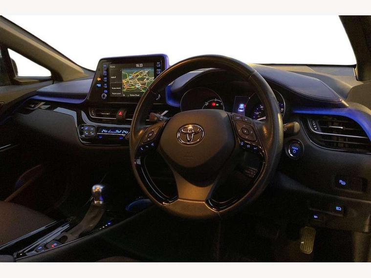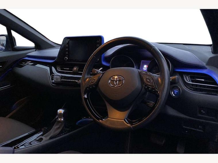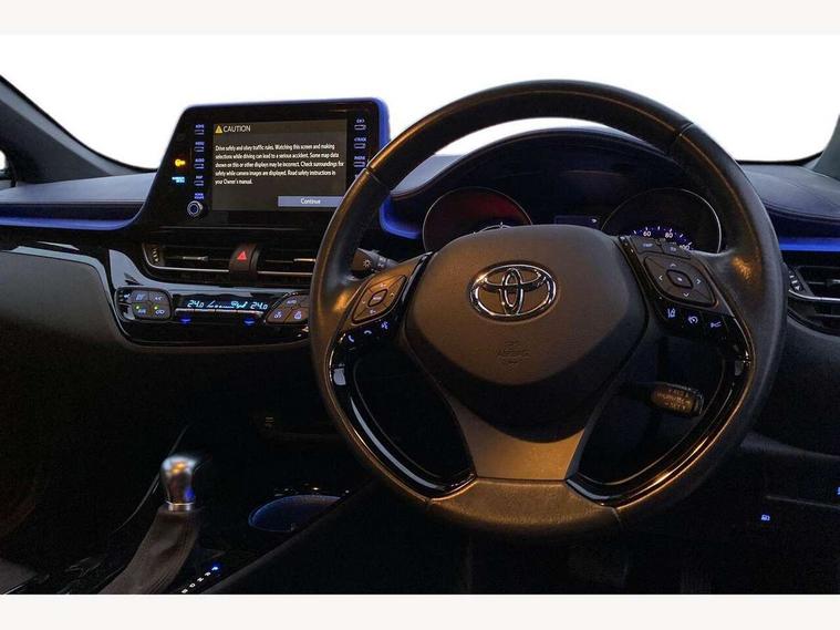 4.2" coloured TFT screen for multi-information display, Adaptive cruise control, Bluetooth connectivity, Electric power steering, Hybrid system indicator, Lane departure alert with steering control, Remote boot door release in cabin, Remote boot door release in key, Reversing camera, Road sign assist - RSA, Simple Intelligent parking assist, Touch 2 Go navigation system, Trip computer, Voice recognition, Vehicle Stability Control (VSC), 6 speakers, Aux connectors + 12V front outlet, DAB Radio (Digital Audio Broadcasting), Toyota touch 2 multimedia system with 8" display, USB connector integrated with radio and CD player, Wi-fi connectivity, Adaptive front light system, Adaptive LED Headlights, Anti-jam protection on power windows, Auto high beam, Auto up and down function on all power windows, Automatic headlight levelling, Automatic headlights, Automatic headlights cut-off, Black and body coloured rear bumper, Black front bumper, Black upper front grille, Body colour door handles, Body colour door mirrors, Boot door release with push button, Electric heated door mirrors, Follow me home headlights, Front and rear power windows, Front spoiler, Hard tonneau cover, Honeycomb lower front grille, LED daytime running lights, LED fog lights, LED front light guide, LED High mounted stop light, LED rear brake lights, LED rear combination lights, Noise reduction layer on front windows and windscreen, Power adjustable door mirrors, Privacy glass, Rear spoiler, Rear tailgate, Rear window defogger, Rear window wiper, Shark fin antenna, UV-filter on driver and passenger windows, UV-filter on rear windows, 12v power outlet - front, 3 rear headrests, 3 seat bench in 2nd row, 3 spoke leather steering wheel, 60/40 split folding rear seat, Adjustable rear headrests, Adjustable speed limiter switch on steering wheel, Assist grips front and centre pillar, Audio and telephone switches on steering wheel, Black front door assist grips, Blue ambient lighting on front cup holders, Blue ambient lighting on front doors, Boot light, Chrome interior door handles, Cloth upholstery, Driver and front passenger personal light, Driver and front passenger Whiplash Injury Lessening seats, Driver and passenger seatback pockets, Dual zone automatic air conditioning, Front cupholders, Front head restraints, Front sports seats, Glovebox with internal light, Heated driver and front passenger seats, Hooks for luggage holding net, Humidifying Nanoe air purifier, Illuminated entry system, Isofix attachments on rear seats, Leather gearshift, Light on driver sun visor, Light on passenger sun visor, Manual telescopic steering wheel, Manual tilt steering wheel, Manually adjustable lumbar support on driver seat, Manually height adjustable driver seat, Manually height adjustable front passenger seat, Manually reclining driver seat, Manually reclining front passenger seat, Manually sliding driver seat, Manually sliding front passenger seat, Microphone on front personal light, Mirror on driver sun visor, Mirror on passenger sun visor, Multimedia switches on steering wheel, Pollen filter, Shopping bag hooks, Slow opening on lower glovebox, Voice recognition switch on steering wheel, Tech with parking sensor pack - C-HR, 16 Disk front wheel brake, 3x3 point rear seatbelts, ABS+EBD+Brake assist, Electronic parking brake, ESP + traction control, Front and rear seatbelt reminder, Front passenger airbag on/off switch, Hill start assist control (HAC), Pre collision system with pedestrian detection, Pre-tensioners and force limiters, Rear door child safety locks, SRS Airbags - Driver + Front passenger, front side, front and rear curtain and driver's knee airbags, Toyota safety sense, Tyre pressure monitoring system, Glass-breaking alarm sensors, Immobiliser, Intrusion alarm, Intrusion sensor, Motion sensor alarm, Power door locks, Power passenger window lock, Remote central locking, Remote door lock, Black lower dashboard, Black lower driver dashboard, Blue deco line on upper dashboard, Blue upper dashboard, Piano black console, Tyre repair kit,
