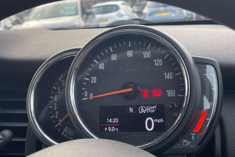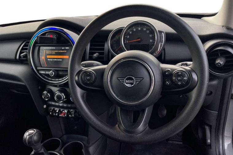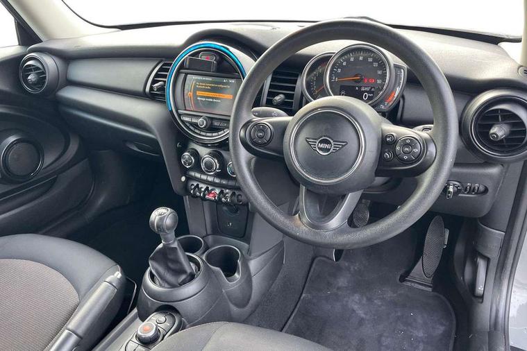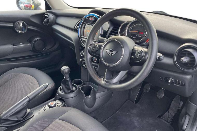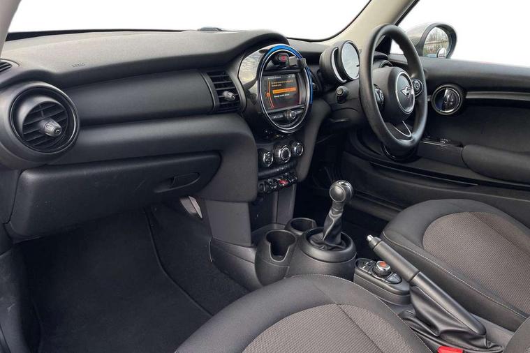 Compatible mobile phone bluetooth with audio streaming, Instrument cluster, Mini E-call, MINI TeleServices, On board computer, Service interval indicator, 6.5" touchscreen with LED ring, FM tuner and DAB digital radio, Automatic headlight activation switch, Body colour fuel filler cap, Body colour roof and mirror caps, Chrome border high gloss black slats radiator grille, Dynamic brake lights, Electric front windows, Exhaust tailpipe, Heated rear window, Heated windscreen washer jets, LED headlight with closed ring and daytime driving lights, Metal door sill strips with MINI imprint, Rain sensor window wipers, Rear fog lights, Rear LED lights with union jack design, Rear window wiper, Side scuttle panel with integrated indicator, Sun/heat protection glass, White indicator lenses, 12V Accessory socket in centre console, 4 lashing eyes in luggage compartment, 60/40 split folding rear seat, Chrome interior highlights, Colour line - Carbon black, Cupholders, Front and rear isofix with front passenger airbag deactivation, Glove compartment, Height and length steering column adjustment, Interior lighting with 12 basic colours selectable via toggle switch in roof, Leather gearshift lever and handbrake gaiters, Manual air conditioning, Mechanical seat adjustment, driver seat height adjust, forward/back and front seats backrest, Mini logo projection on floor from drivers exterior mirror, Multifunction steering wheel, Satellite grey headlining, Storage compartments in doors, Sunvisors with vanity mirrors, Tool kit, 3 point seatbelts on all four seats, 6 Airbags - front, side, head and seat belt tensioners, Anti-lock braking system (ABS), DSC - Dynamic Stability Control, Front and rear disc brakes, Hill start assist, Single tone fanfare horn, Tyre pressure monitoring system, Alarm system with tilt sensor, monitoring doors, bonnet interior and tailgate, Electronic vehicle immobiliser, Start/stop toggle with keyless go,