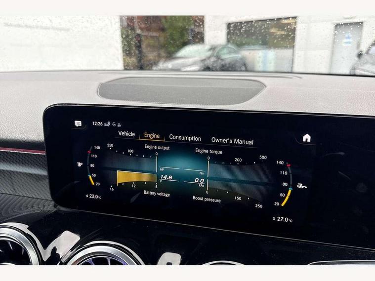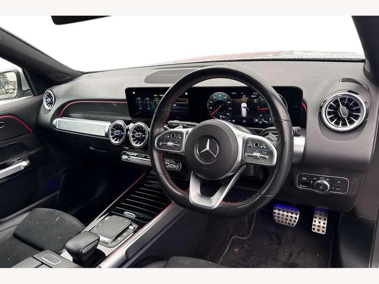 10.25" Digital instrument cluster display screen, 10.25" Digital media screen display, Attention assist - Monitors steering behaviour and long journey fatigue, Brake pad wear indicator warning light, Car wash mode, Cruise control with limiter, DYNAMIC SELECT with a choice of driving modes (ECO, Comfort, Sport and Individual), Easy-pack tailgate, ECO start/stop function, Fluid level warning indicator for fuel, oil, coolant and washer fluid, Hard disk navigation, Hey Mercedes Voice activation, Lamp failure indicator, Mercedes me connect including emergency call system, accident recovery, breakdown and maintenance management, Mercedes me remote services, Outside temperature gauge, Owners manual and service booklet in English, Parameter steering system, Pre-installation of private car share, Radio aerial integrated into front and rear windshields, Service indicator (ASSYST), Smartphone integration with Apple CarPlay and Android auto, Traffic sign assist, Trip computer in multifunction display with current consumption indicator, Wireless charging, 23.8 litre AdBlue fuel tank, 60 litre fuel tank, Comfort suspension, Rear axle multi-link, DAB digital radio tuner, MBUX multimedia system with DAB digital radio and touchpad including satellite navigation, Mercedes Benz advanced sound system (225 W) with 10 speakers, 1 central speaker, speakers on doors, a tweeter on door, one sub woofer + boost amplifier, Pre installation for Mercedes Benz Link, USB (type C) port in front stowage compartment, USB (type C) ports (2) in stowage compartment, Adaptive brake lights, Aerial for GPS, AMG bodystyling door panels black grained with chrome plated inserts, AMG bodystyling front apron with chrome splitter, AMG bodystyling rear apron with diffuser optics and chrome trim element, AMG specific front and rear bumper including underride guard in high gloss chrome, Beltline strips and weather strip in chrome, Body coloured door handles with chrome insert for keyless entry, Body coloured door mirror caps, Electric adjustable and heated door mirrors with integrated LED side indicators, Electric panoramic glass sunroof, Exhaust system with dual flow exhaust pipes (non-functional), Front and rear electric windows, Headlamp assist automatic headlamp activation, Heated glass rear windscreen + timer control, High level LED third brake light, Interior mirror with black reading lamps and frameless, Multibeam LED headlamps and tail lamp with adaptive highbeam assist plus, Polished aluminium roof rails, Pre-installation for trailer coupling, Privacy glass with dark tinting on rear side windows and rear window, Radiator grille with pins in chrome and single louvre with chrome insert, Rain sensor windscreen wipers, Rear fog lamp, Two visible tailpipe trim elements exhaust, 3 spoke multifunction sport steering wheel in nappa leather, Air conditioning - Two zone thermotronic luxury automatic climate control with display, AMG sports pedals with brushed stainless steel surfaces and black rubber studs, Artico man-made leather/Microfibre Dinamica upholstery with red contrast stitching, Automatic child seat recognition sensor, Black floor mats with AMG lettering, Black roof lining, Electrically adjustable front memory seats including lumbar support, Fore/aft adjustment rear seats, Freight packaging with tie-down hooks, Front centre armrest with stowage, Front door sills with illuminated changeable cover, Front passenger grab handle with brushed side silver chrome, Front sports seats with adjustable head restraints, Galvanished gear shift paddles on steering wheel, Heated front seats, Height/reach adjustable steering column, Interior lighting - 64 colour Ambient lighting, Luggage net on driver/front passenger seat backrest, Net in front passenger footwell, Rear armrest with two integral cup holders for drinks, Stowage compartment in centre console, Stowage compartment with retractable cover, Third row of seats for two people on rear seat, Third row of seats with isofix and top tether child seat fixing points, Touchpad on center console, Twin front cup holders, Two outer rear seat isofix and top tether child seat fixing points, Interior lighting with light and sight pack - GLB, Keyless Go comfort pack - GLB, Mirror pack - GLB, Off-road engineering package - GLB, Parking pack - GLB, 3 rear 3 point seatbelts, Active bonnet pedestrain safety measure which detects an impact and raises bonnet by 65mm, Active brake assist includes forward collision warning system with autonomous braking, Adaptive brake assist with hold function and hill start assist, Airbags - kneebag for driver, Anti-lock braking system (ABS) with brake assist, Childproof locks manually operated for rear doors and electrically operated for rear power windows, Crash responsive emergency lighting, Driver and front passenger head and sidebags, Driver and front passenger windowbags, Dual stage driver and front passenger airbags, Electronic parking brake, Electronic stability programme with acceleration skid control, ESP curve dynamic assist, Front and rear seatbelt reminder, Front brake callipers with Mercedes Benz lettering, Front passenger seat occupancy sensor, Perforated and ventilated front brake discs, Tyre pressure monitoring system, Warning triangle and first aid kit, Remote central locking and crash sensor with emergency opening function, Urban guard vehicle protection - Anti theft alarm system, tow away protection with visual and acoustic warning and alarm siren, Vehicle key with decorative surround in chrome, Black air vents with chrome surround, Carbon structure trim, 19" AMG 5 twin spoke light alloy wheels painted in tantalite grey with high sheen finish, Summer tyres, Tirefit tyre sealant kit,