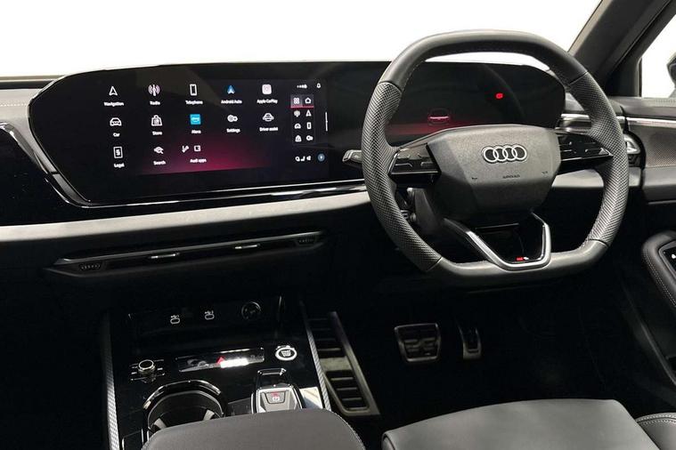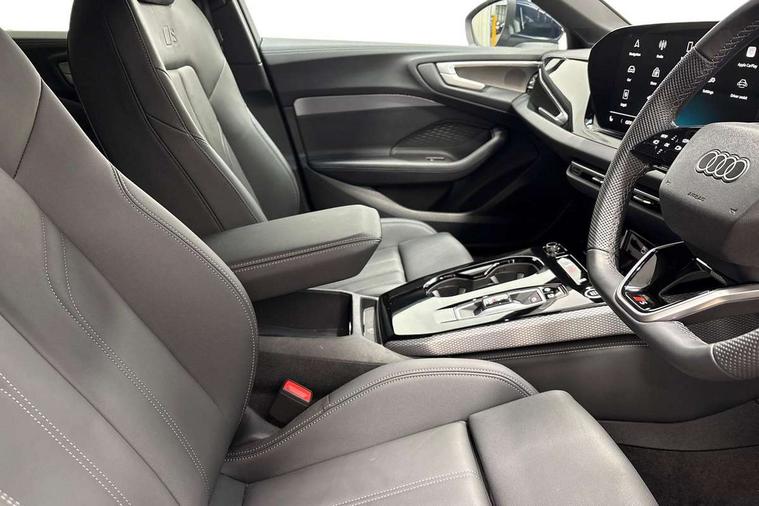 Adaptive cruise control, Advanced driver attention and fatigue montior, Audi application store, Audi assistant, Audi connect emergency call and service, Audi drive select, Audi smartphone interface, Audi virtual cockpit plus with 11.9" OLED colour display, Automatic start/stop system with coasting functionality, Camera based traffic sign recognition, Intersection assist, Lane departure warning, MMI navigation plus with high resolution 14.5" OLED touchscreen colour display, Park assist plus, Parking system plus with 360 display, Progressive steering with servotronic, Rear view camera, Swerve assist and turn assist, Traffic sign based speed limiter, Sports suspension lowered by 20mm, 2 USB-C ports in both the front and rear, Audi sound system impressive sound with 10 loudspeakers including centre speaker and subwoofer, 6-channel amplifier with a total output of 180 watts, DAB digital radio reception, Smartphone compartment with wireless charging, Aluminium roof rails, Aluminium window trims, Auto dimming rear view mirror, Body colour door mirrors, Door mirrors - electrically adjustable, heated, folding and auto dimming on both sides, Front and rear electric windows, Front door sill trims with aluminium inlays, illuminated with 'S' logo, High beam assist, LED headlights Plus incl. digital daytime running lights, turning light, all-weather light, motorway light, manouevring light and intersection light, LED rear lights pro incl. dynamic rear indicators and illuminated light strip with animated coming and leaving home function, LED third brake light, Privacy glass, Rear and side windows with heat insulating glass, Rear side wing doors, Rear wash/wipe, S Line badges on the front wings, S line bumpers, radiator grille and diffuser in phantom black and diffuser insert in matt anthracite, White rhombus logo projection light in exterior mirrors, Windscreen with acoustic glazing, 3 rear headrests, 3 seat rear bench, 3 spoke leather steering wheel with multi-function buttons with touch control, flattened on top and bottom, with S badging and contrast stitching, 3-zone automatic climate control, 40:20:40 split folding rear seat bench with centre armrest and cup holders, Comfort front centre armrest, Front and rear floor mats, Front seats with manual adjustment for position and 4-way electric lumbar support, Front sport seats with integrated headrest and S embossed logo, Headlining in black cloth, Heated front seats, i-Size child seat mounting on the front passenger side and outer rear seats, i-Size and top tether on the outer rear seats, Luggage compartment lid, electrically opening and closing, Manual steering column height and depth adjustment, Single front passenger seat, Stainless steel pedals and footrest, Steering wheel grips in perforated leather and shift paddles, Ambient lighting package plus - A5, 3x3 point rear seat belts, Driver airbag, Electric child safety locks, First aid kit with warning triangle and vests, Front emergency brake assist, Front passenger airbag, Front passenger airbag deactivation, Front side airbags with head airbag system and front interaction airbag, Hill hold assist, Seat belt monitoring with rear seat occupant reminder, Tyre pressure loss indicator, Anti theft alarm, Anti-theft wheel bolts, Keyless Go, Accent surfaces and control buttons in gloss black, Black dashboard with contrast stitching, Inlays in matt brushed aluminium with linear embossing, anthracite, Softwrap in leatherette with contrast stitching, Upper and lower interior elements in leatherette, Tyre repair kit,
