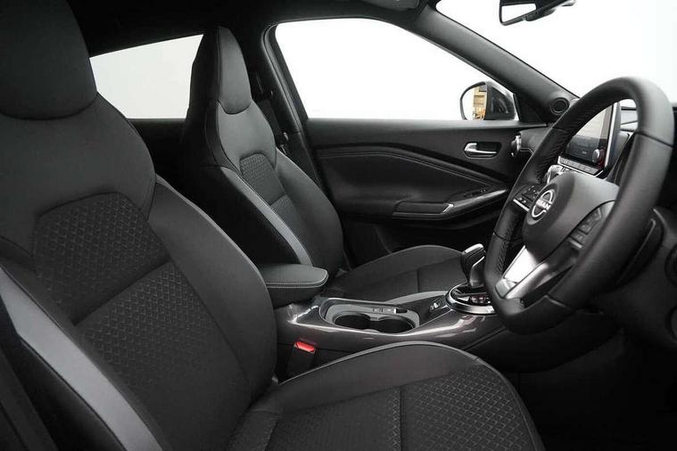 7" full colour TFT screen combimeter, Apple CarPlay and Google Android auto, Drive modes select (Eco, normal and sport), Emergency and breakdown call, Front parking sensor, Idle start/stop system, Intelligent lane intervention, Lane departure warning system, Nissan connect 8" touch screen entertainment system, Nissan connect nav with TomTom traffic, Nissan connect services and Wifi connection, Outside temperature sensor, Power Steering, Rear parking sensor, Traffic sign recognition, Trip computer, Voice recognition, Gasoline particulate filter, 6 speakers, Bluetooth system, USB, Aux-in and 12V socket, DAB Digital radio, Rear console USB port, Auto dimming interior rear view mirror, Auto headlights, Automatic hazard signal with emergency stop signal, Body colour bumpers, Body colour door handles, Electrically adjustable door mirrors with integrated indicators, Follow me home headlights, Front and rear electric window with one touch driver window, Heated and auto folding door mirrors, High beam assist, LED 3rd brake light, LED daytime running lights, LED headlamps, LED rear fog lamp, LED rear lamps, Rain sensor windscreen wipers, Rear privacy glass, Rear side wing doors, Rear wiper, Roof spoiler, Shark fin roof antenna in Pearl Black, Three blink turn signal, 3 height adjustable rear headrests, 3 seat bench in 2nd row, 60/40 split folding rear seat, Automatic climate control, Card holder on driver sunvisor, Cloth upholstery with black and metallic grey syntech leather inserts, Driver and passenger sliding and reclining seats, Driver side rear coat hanger, Driver/passenger sunvisors and vanity mirrors, Front and rear cabin lights, Front armrest, Front door pockets with bottle holders, Front head restraints, Front/rear passenger grab handles, Grey synthetic leather kneepad, Height adjustable driver's seat, Internal chrome door handles, Leather gearshift knob, Leather steering wheel, Luggage board, Luggage space lighting, Monoform sporty seats, Multifunction steering wheel, Rear door bottle holders, Single front passenger seat, Steering wheel mounted gearshift paddles, Telescopic steering wheel adjustment, Two cupholders in front centre console, Two rear isofix child seat anchorage points with top tether, Welcome light and console tray ambient lighting, ABS with EBD and brake assist, Active ride control, Active Trace Control, Driver and passenger airbags, Driver and passenger side airbags, Electric handbrake with auto hold function, Electronic Stability Programme (ESP), Front and rear curtain airbags, Height adjustable seatbelts, Hill start assist, Intelligent emergency braking with pedestrian and cyclist recognition, Rear door child safety locks, Seatbelt reminder for driver/front passenger and rear seats, Single tone horn, Three 3 point rear seatbelts, Traction control, Tyre pressure monitoring system, VDC Dynamic Vehicle Control, Ventilated rear brake discs, Alarm, Immobiliser, Intelligent key and start push button with walk away lock and approach unlock functions, Remote central locking,