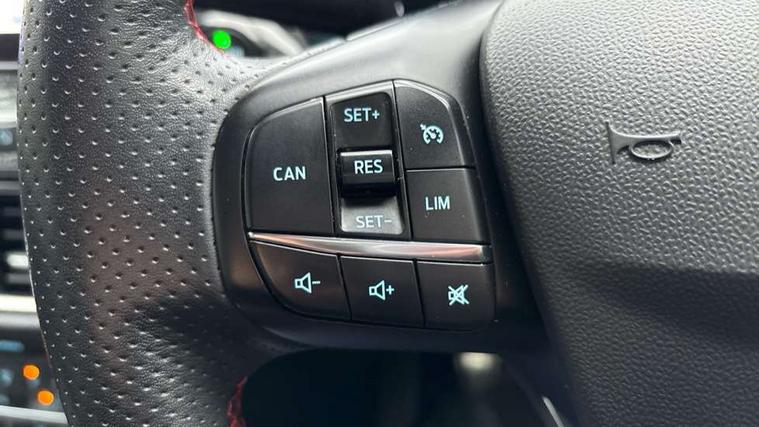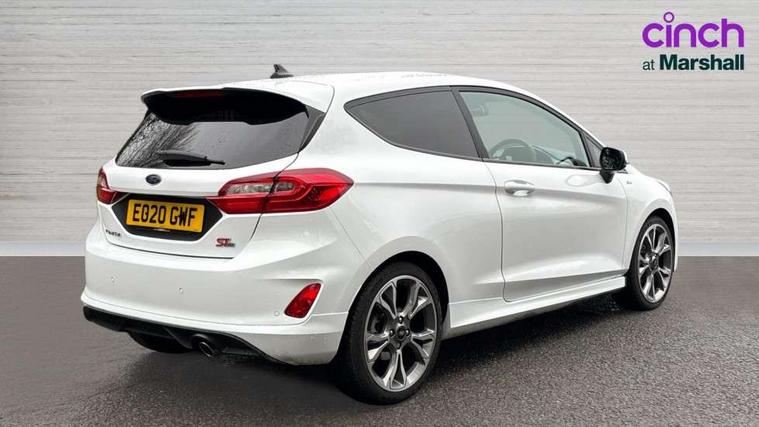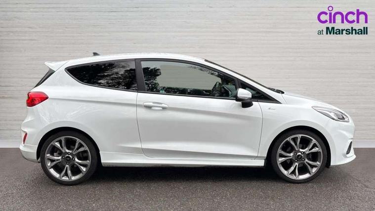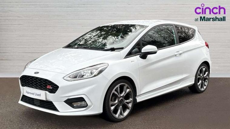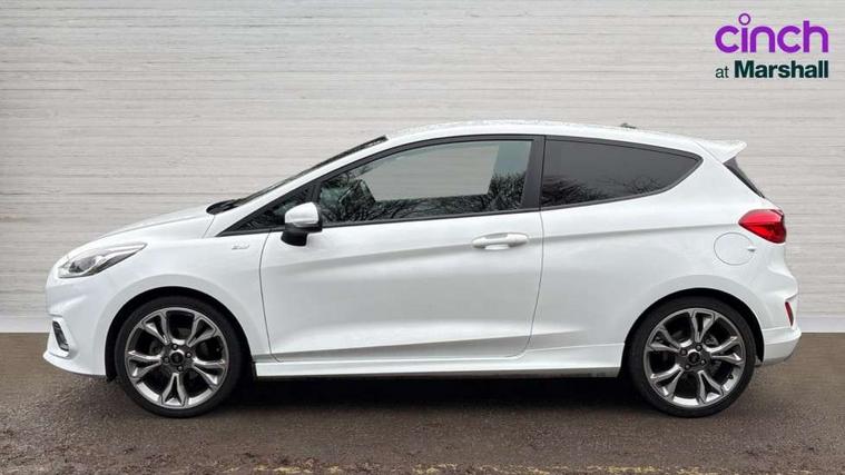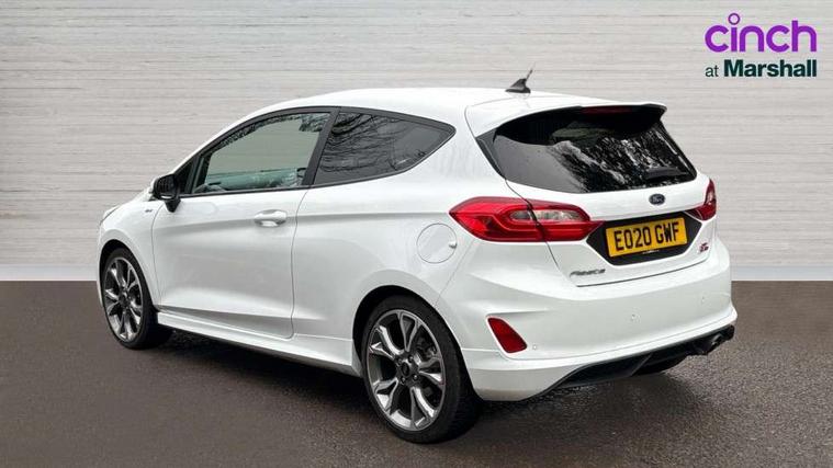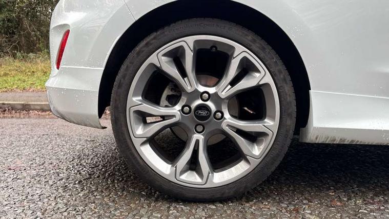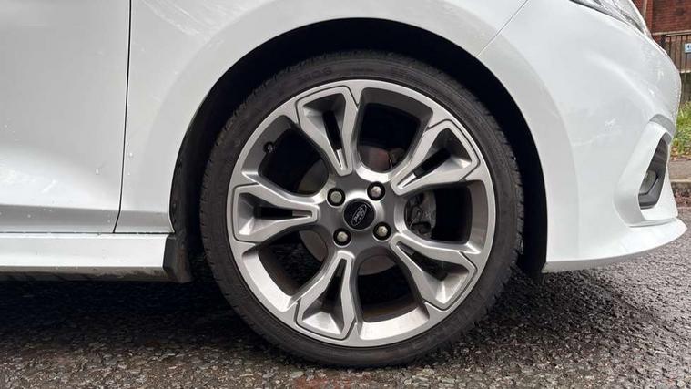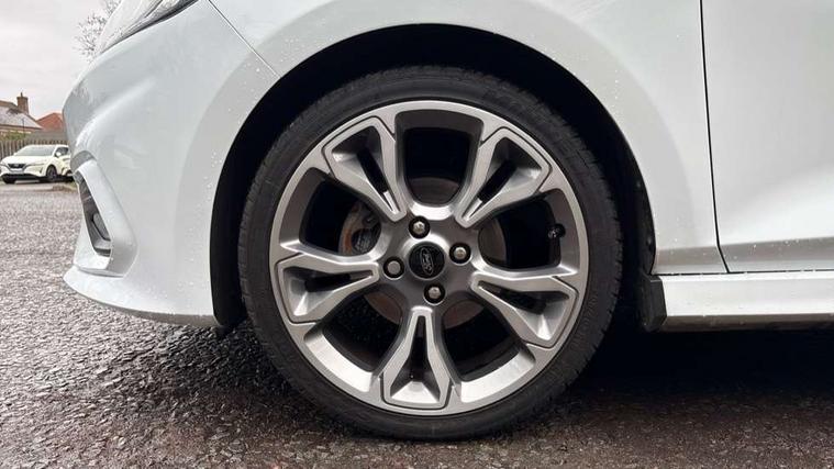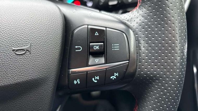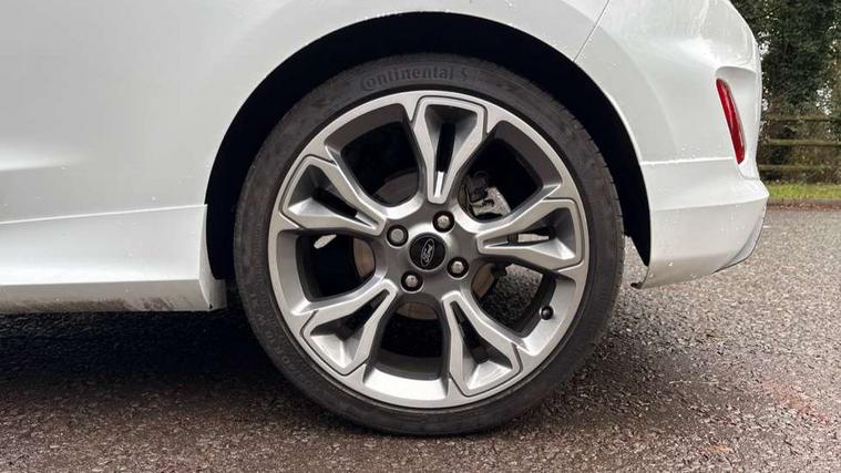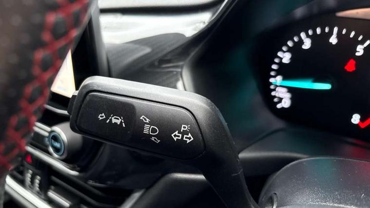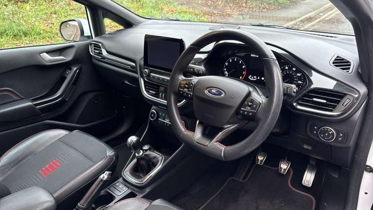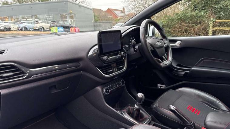 4.2" TFT instrument cluster screen, Bluetooth system, Electric power steering, Ford easy fuel, Rear parking distance sensors, Traffic sign recognition, Trip computer, Sports suspension, 2 USB ports, Auxiliary input socket, B&O Premium audio system with 8" touchscreen, 10 speakers, 360 degree sound system, Ford SYNC 3 navigation system and Ford pass connect, DAB Digital radio, Steering wheel mounted controls, Auto high beam, Body colour bumpers, Body colour door handles, Body colour large rear spoiler, Body coloured electrically operated and heated door mirrors with side indicators, Cornering front fog lights, Electric front windows/one touch facility, LED Night signature to rear lights, Power foldable door mirrors with puddle lights, Quickclear heated windscreen, Rain sensing wipers and auto dimming rear view mirror, Rear privacy glass, Rear wiper, Unique ST-Line upper grille & full bodystyling kit with ST-Line wing badges, 12V Accessory socket in centre console, 3 spoke flat bottomed leather steering wheel, 60/40 split folding rear seat, Adjustable head restraints, Black headlining, Boot carpet, Centre console with armrest and illuminated cupholders, Chrome inner door handles, Drivers and Passenger lumbar support, EATC - Electronic Auto Temperature control, Footwell illumination, Front map reading lights, Front seat and rear pockets, Front/rear floor mats, Height adjustable driver's seat, Height adjustable passenger seat, Illuminated glovebox, LED ambient lighting, Load area light, Overhead console with sunglasses holder, Pollen filter, Rake/reach adjustable steering wheel, Sensico wrapped handbrake and gearknob, Sports front seats, Sports pedals, NCAP Pack - Fiesta, Red pack - Fiesta ST-Line X, 3 point seatbelts on all rear seats, ABS+EBA, Curtain airbags, Driver and passenger airbags, Drivers knee airbag, Electronic stability control with hill start assist, Front passenger airbag deactivation, Front side airbags, Seatbelt warning, Two tone horn, Tyre pressure monitoring system, Ford keyfree system with Keyless entry and keyless start, MyKey system, Remote central locking & engine immobiliser, Thatcham Cat.1 alarm, 18" 5 spoke alloy wheels with rock metallic machined finish,