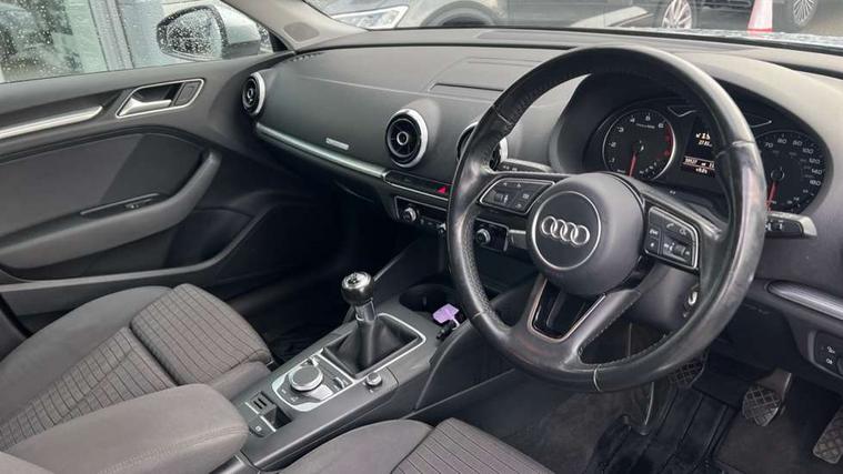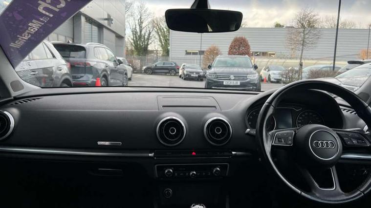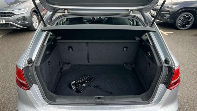Audi connect, Audi drive select, Audi smartphone interface, Colour driver's information system display, Electro-mechanical PAS, Mobile telephone preparation - bluetooth interface, Service interval indicator, Speed limit display, Voice control system, 2 USB ports, Audi music interface, Auxiliary input socket, DAB Digital radio, Aluminium window trim, Body colour bumpers, Body colour door mirrors with integral indicators, Body colour roof spoiler, Chrome exhaust tailpipes, Electric front windows, Electric operated/heated door mirrors, Electric rear windows, Heated windscreen washer jets, Matt black radiator grille, Rear wiper, Single exhaust tailpipe, Sport specific side air inlet grille and diffuser insert, 3 adjustable rear headrests, 4 lashing points to secure luggage, Adjustable front armrest, Aluminium door sill trims, Dual zone electronic climate control, Front and rear interior lights with delay, Front passenger seat isofix location point, Front sports seats, Front/rear floor mats, Height/depth adjustable steering column, Illuminated glovebox, Illuminated luggage compartment, ISOFIX child seat preparation+airbag deactivation, Jack and tool kit, Storage compartment in centre console, Storage compartment under front seats, Storage compartments in doors, Light and rain sensor pack - A3 Hatchback/Sportback, 3 point seatbelts on all seats, ABS/EBD, Active bonnet, Active front headrests, ASR, Curtain airbags, Driver and passenger side airbags, Driver/Front Passenger airbags, Drivers knee airbag, EDL, Electromechanical parking brake, ESC - Electronic Stability Control + traction control, Front passenger airbag deactivation, Manual rear child locks, Multi-Collision braking, Seatbelt warning, Tyre pressure monitor, Warning triangle and first aid kit, Anti-theft wheel bolts, Remote control central locking, Thatcham category 1 alarm + immobiliser, Aluminium air vent surrounds, Aluminium trim elements, Space saver spare wheel,