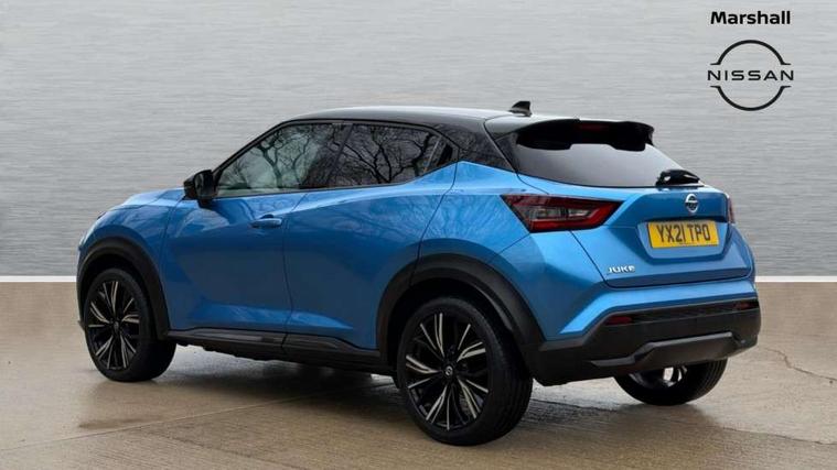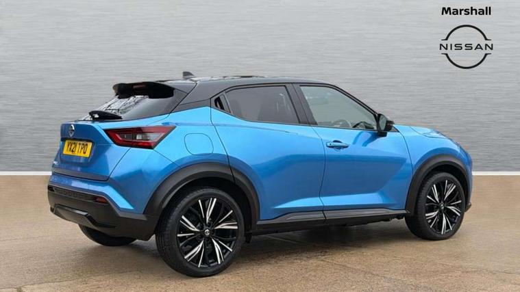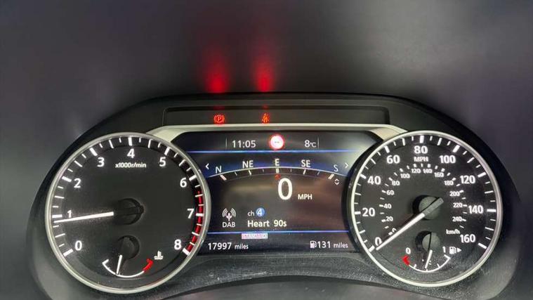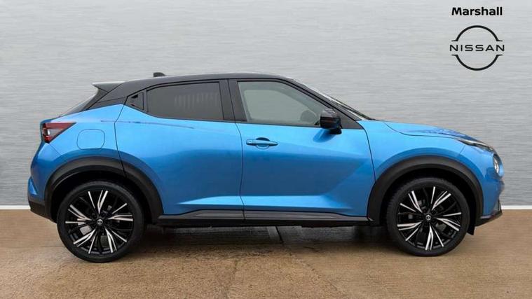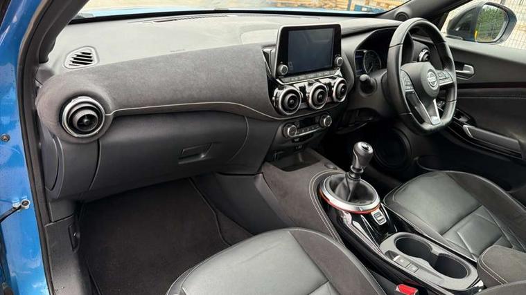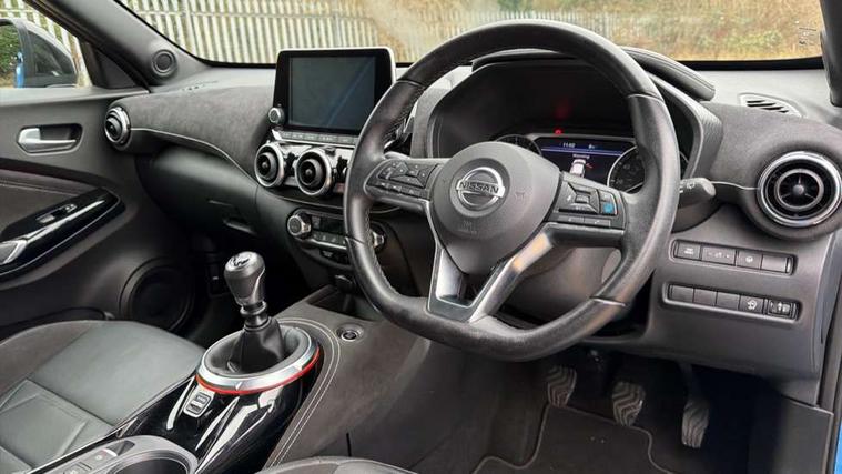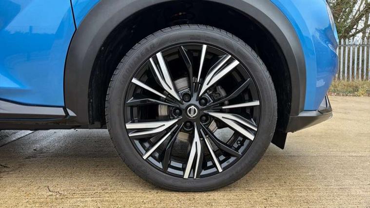 7" full colour TFT screen combimeter, 8" infotainment colour display with touch screen, Apple CarPlay and Google Android auto, Drive modes select (Eco, normal and sport), Emergency and breakdown call, Front parking sensor, Idle start/stop system, Intelligent lane intervention, Lane departure warning system, Nissan connect nav with TomTom traffic, Nissan connect services and Wifi connection, Outside temperature sensor, Power Steering, Rear parking sensor, Traffic sign recognition, Trip computer, Gasoline particulate filter, Bluetooth system, USB, Aux-in and 12V socket, Bose personal plus audio system with 8 speakers(4 speakers and 2 headrest speaker for driver and passenger seats), Bose personal sound stage control, DAB Digital radio, Front lower bumper painted in silver finisher, Rear console USB port, Auto dimming interior rear view mirror, Automatic hazard signal with emergency stop signal, Body colour bumpers, Body colour door handles, Electrically adjustable door mirrors with integrated indicators, Follow me home headlights, Front and rear electric window with one touch driver window, Heated and auto folding door mirrors, High beam assist, LED daytime running lights, LED front fog lights, LED headlamps, LED rear fog lamp, LED rear lamps, Rain sensor windscreen wipers, Rear privacy glass, Rear wiper, Thermaclear heated windscreen, Three blink turn signal, 3 height adjustable rear headrests, 60/40 split folding rear seat, Automatic climate control, Card holder on driver sunvisor, Door ambient lighting, Driver and passenger sliding and reclining seats, Driver seat back pocket, Driver side rear coat hanger, Driver/passenger sunvisors and vanity mirrors, Front and rear cabin lights, Front armrest, Front door pockets with bottle holders, Front head restraints, Front passenger isofix child seat anchorage point, Front/rear passenger grab handles, Gear console ambient circle lighting, Grey synthetic leather kneepad, Heated front seats, Height adjustable driver's seat, Height adjustable passenger seat, Internal chrome door handles, Leather gearshift knob, Leather steering wheel, Luggage board, Luggage space lighting, Monoform sporty seats, Multifunction steering wheel, Passenger seat back pocket, Rear door bottle holders, Telescopic steering wheel adjustment, Two cupholders in front centre console, Two rear isofix child seat anchorage points with top tether, Voice recognition switch on steering wheel, Welcome light and console tray ambient lighting, Advanced safety shield pack - Juke, ABS with EBD and brake assist, Active ride control, Active Trace Control, Driver and passenger airbags, Driver and passenger side airbags, Electric handbrake with auto hold function, Electronic Stability Programme (ESP), Front and rear curtain airbags, Height adjustable seatbelts, Hill start assist, Intelligent emergency braking with pedestrian and cyclist recognition, Seatbelt reminder for driver/front passenger and rear seats, Single tone horn, Three 3 point rear seatbelts, Traction control, Tyre pressure monitoring system, VDC Dynamic Vehicle Control, Ventilated rear brake discs, Alarm, Immobiliser, Intelligent Key with push button starter, Remote central locking, 19" Akari alloy wheels,