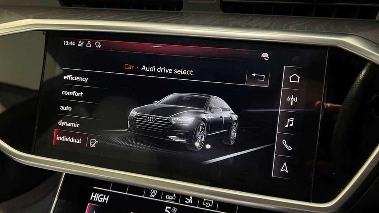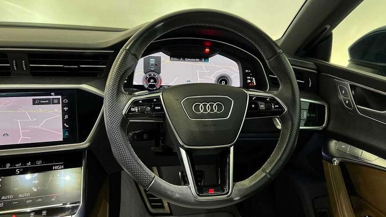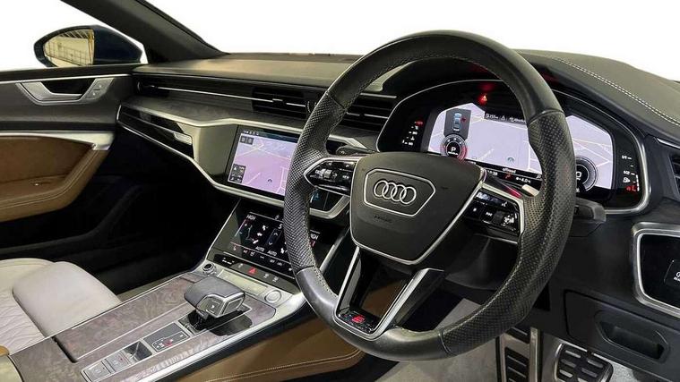 Amazon alexa Integration, Audi connect safety and service (e-call), Audi drive select, Audi parking system plus - acoustic and visual park assist system for front and rear, Audi phone box with wireless charging, Audi smartphone interface, Audi virtual cockpit - 12.3" high resolution LCD digital instrument cluster display, Automatic start/stop system with coasting functionality, Colour driver's information system display, Cruise control system with speed limiter, Electric boot lid release, Lane departure warning system, MMI nav plus with MMI touch + 10.1" and 8.6" HD haptic touch screen/3D city models/country information/online map/route info and personal route assist, Operating buttons in black, glass look with haptic feedback, Power operated tailgate, Progressive steering, Rear view camera, Service indicator, Voice control system, 24 litre AdBlue tank, 63 litre fuel tank, Diesel particulate filter, Sports suspension, Audi music interface - 2 USB ports with charger and data functions, Audi sound system with 6 channel amplifier, 180 watt amplifying capacity and 10 loudspeakers including subwoofer, Auxiliary input socket, DAB digital radio module, Audi exclusive personalised door sill trim, Body coloured door mirrors, Coming/leaving home animations in front and rear, Electrically adjustable, heated and folding door mirrors with driver memory function and integrated LED indicators, Frameless auto dimming interior rear view mirror, Front and rear electric windows, HD Matrix LED headlights with dynamic front and rear indicators, Headlight washers, Heat insulating darkened glass in side and rear windows, High gloss black radiator grille with chrome single frame surround, LED rear lights, Rain and light sensors, Retractable rear boot spoiler, S line air inlet design with inlay in high gloss black, S Line badge on front fender, S line badge on front grille, S Line Black rear diffuser with chrome inlays and rear grille, S Line front and rear bumpers, S Line side skirts, Signature LED daytime running lights, Towbar preparation, Windscreen with acoustic glazing, 2 zone deluxe electronic climate control, 4-way electric lumbar support, 40/20/40 split folding 3 seater rear seat bench with rear centre armrest, Audi exclusive carpet and floor mats, Audi exclusive controls in leather, Audi exclusive leather covered seat trims, Audi exclusive upper and lower interior elements in leather, Black cloth headlining, Electrically adjustable front seats - driver seat with memory, Front and rear headrests, Front centre armrest, Heated front seats, Height/reach adjust steering wheel, Illuminated sun visors with vanity mirrors, ISOFIX child seat mounting and Top Tether with front passenger airbag deactivation, Leather gear knob, Leatherette upper instrument panel and door shoulders, Luggage compartment floor, Perforated leather steering wheel with contrast stitching, Stainless steel pedals and foot rest, Super sports seats, Tool kit and car jack, Full Leather pack - A7, LED interior ambient lighting pack - A7, Non smoking pack - A7, 3 point seatbelts on all seats, Audi pre-sense front, Driver and passenger airbags, Electromechanical parking brake, Electronic stabilisation control including ABS, ASR and EDL, Extended pedestrian protection measures, Front and rear side airbags with head airbag system, Hill hold assist, Seatbelt monitoring, Tyre pressure warning light, Warning triangle and first aid kit, Anti theft alarm with tow away protection, Anti-theft wheel bolts and wheel loosening detection, Immobiliser, Keyless Go, Preparation for tracking system, Remote central locking, Audi exclusive wood inlays, 21" 5 V spoke star design aluminium alloy wheels, Tyre repair kit,