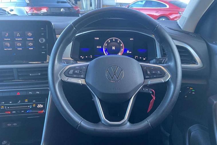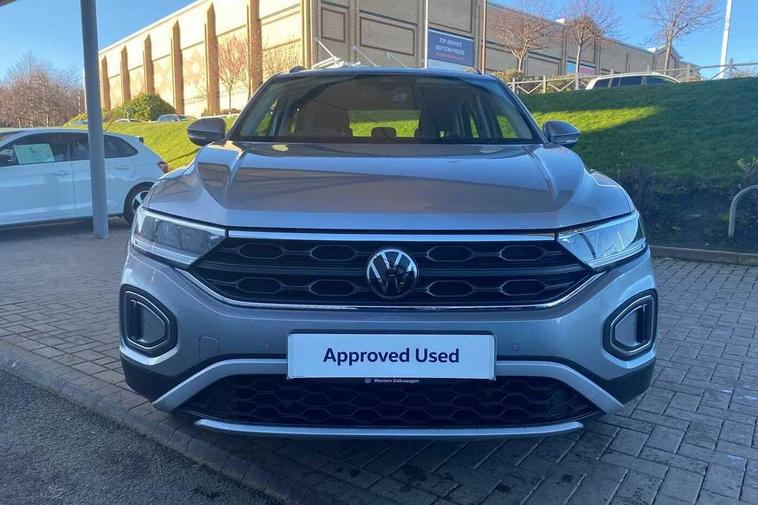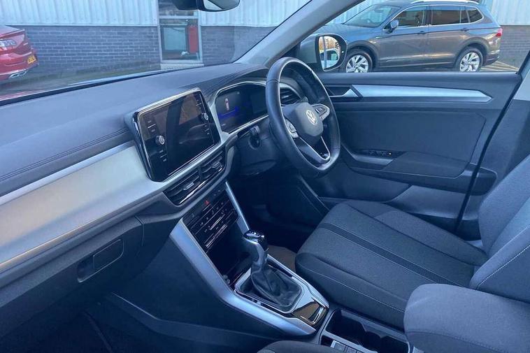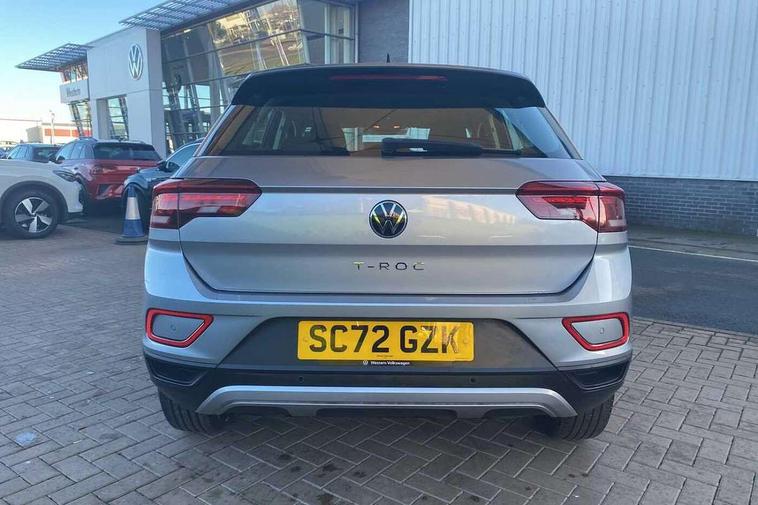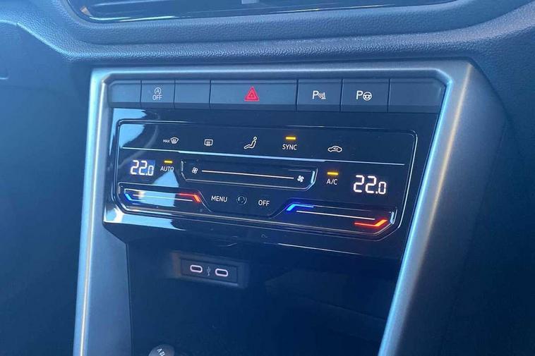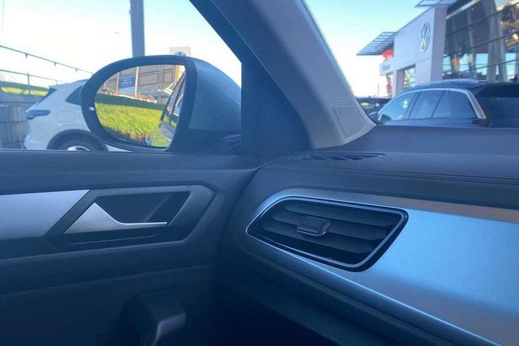 Bluetooth mobile phone interface, Driver alert system with fatigue detection, Driver tips and journey analysis, Emergency call service, Lane keeping system Lane Assist, Modified key software - reduce switch off time for key status change to Long no motion, Online services, Park assist including front and rear parking sensors, Power assisted speed sensitive steering, Service interval indicator, Tailgate/trunk lid release from outside, Think blue trainer driver tips and journey analysis, Warning sound and light for front seatbelts unfastened, Wireless app connect, Battery regeneration during braking, Front shock absorption, Rear shock absorption chassis with increased ride height, Start/stop function with battery regeneration, DAB Digital radio, Diversity antenna for FM reception, Front and rear 6 speakers, Music playback - MP3, WMA and AAC files, Premium USB cable in choice of either Apple or Android smartphone compatibility, SD card slot, Simultaneous pairing of 2 compatible mobile devices, Title and cover art display, We Connect and We Connect Plus functionality, 3rd brake light, Auto dimming interior rear view mirror, Automatic hazard lights activation under emergency braking, Automatic headlight control with LED separate daytime running lights with coming/leaving home function, Black roof rails, Body coloured bumpers and radiator grille with chrome trim and front fog lamps with chrome bezel, Body coloured exterior mirror housings and door handles, Extended roof spoiler, Exterior mirrors aspherical on driver side, convex on front passenger side, External USB type C socket and charging sockets, Front windscreen wiper with intermittent wipe and 4 position delay, Heated rear window, LED Headlights, LED rear combination lamps, LED rear number plate lights, LED tail lamp rear comination lamps, Power windows with comfort operation and circuit breaker, Rain sensor, Rear exhaust tailpipe, Rear fog light on one side and reversing lights on both sides, Rear side wing doors, Rear wash/wipe with intermittent wipe setting, Remote electrically foldable door mirrors, puddle lights and reverse activated passenger's door mirror, 12V power socket in centre console, 3 rear head restraints, 3 seat bench in 2nd row, 4 load lashing points in luggage compartment, Air care climatronic air conditoning system with active combination filter and 2-zone temperature control, Ambient lighting with mirror logo projection, Cloth upholstery, Door and side trim panel in cloth, Drawer under drivers seat, Driver/front passenger seat height adjustment, Front centre armrest, Front comfort sports seats, Front cupholders x 2, Front reading light, Instrument lighting, white adjustable panel illumination, Interior light delay, Isofix child seat preparation, Leather gearshift handle, Load-through provision with cup holder when folded down ('Unsplit rear seat bench, split folding backrest, with centre armrest), Luggage compartment lighting, Lumbar support for driver's and front passengers seat, Non-folding front passenger seat backrest, Single front passenger seat, Storage compartment in left and right luggage area, Storage compartment in rear doors, Storage compartments in driver and front passenger doors, Sunvisors with illuminated vanity mirrors, Variable boot floor, height adjustable and removable, Driver assistance pack without proactive passenger protection - T-Roc, 3 point height adj front seatbelts + pretensioners, 3 point seatbelts in outer rear with ECE label, ABS, Child locks on rear doors, Driver and front passenger airbag with front passenger airbag deactivation, Driver and front passenger safety-optimised head restraints, Drivers seatbelt reminder, Electronic parking brake, Electronic Stability Control (ESC) inc EDL (Electronic Differential Lock) and ASR (Traction Control), Front and rear passengers curtain airbag system including front side airbags, Front assist with city emergency braking and pedestrian monitoring, Front disc brakes, Front seat side impact airbags, Hill start assist, Predictive pedestrian protection, Rear disc brakes, Single tone horn, Tyre pressure loss indicator, Volkswagen roadside assistance, Alarm with interior protection, Anti-theft alarm system with interior monitoring, backup horn, and towing protection, Remote central locking with SAFELOCK, radio remote control with 2 remote control folding keys, Pewter matt decorative inserts for intrument panel, centre console and door panels at the front, Trims for alloy wheels,