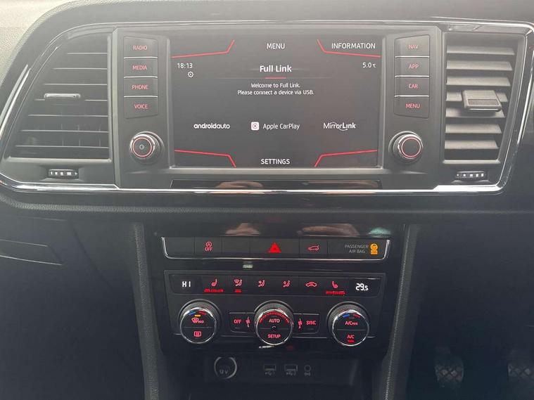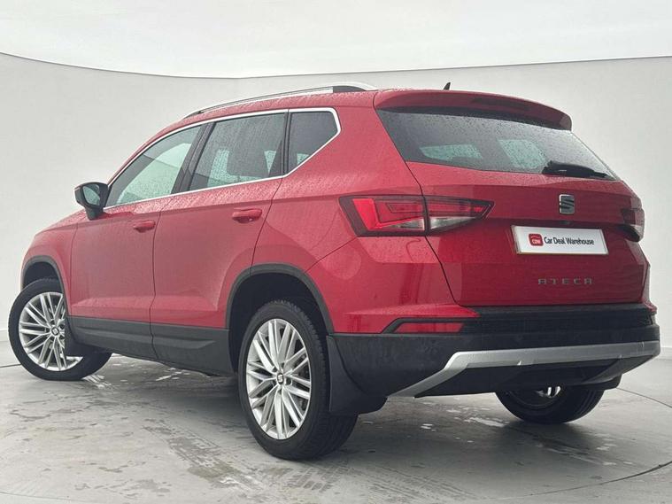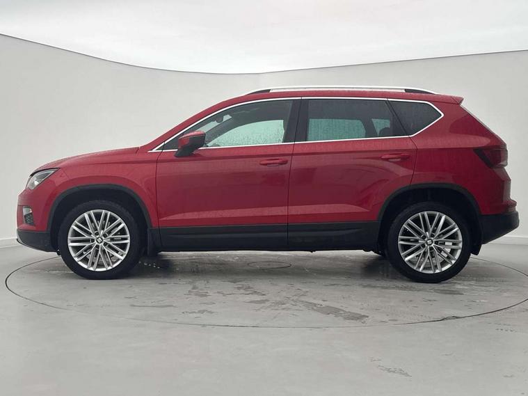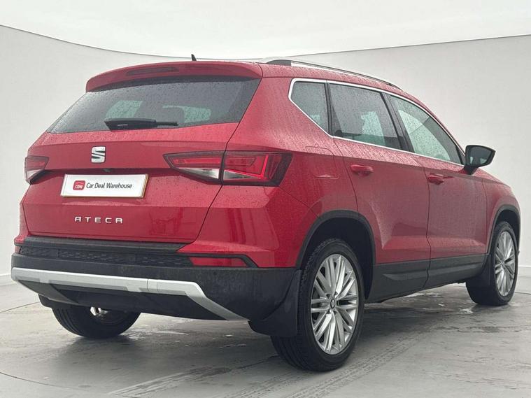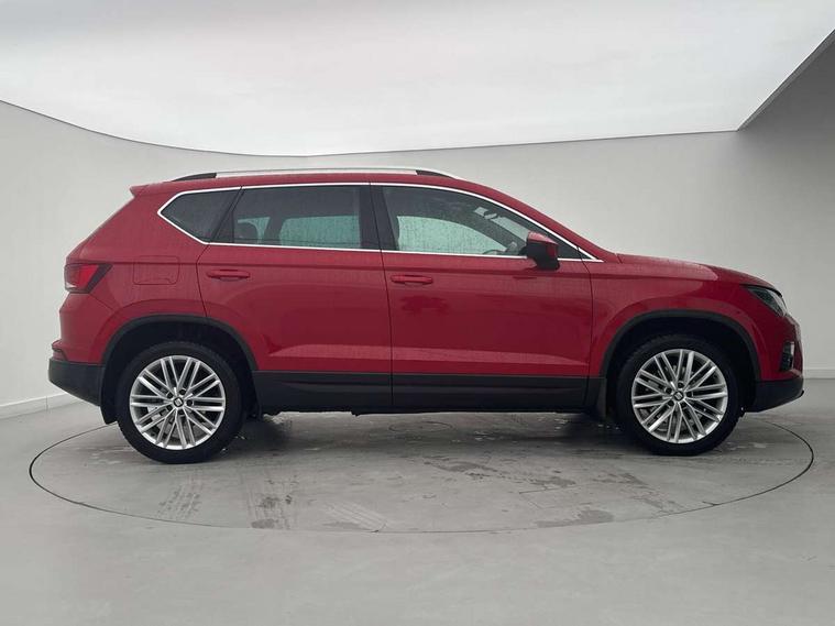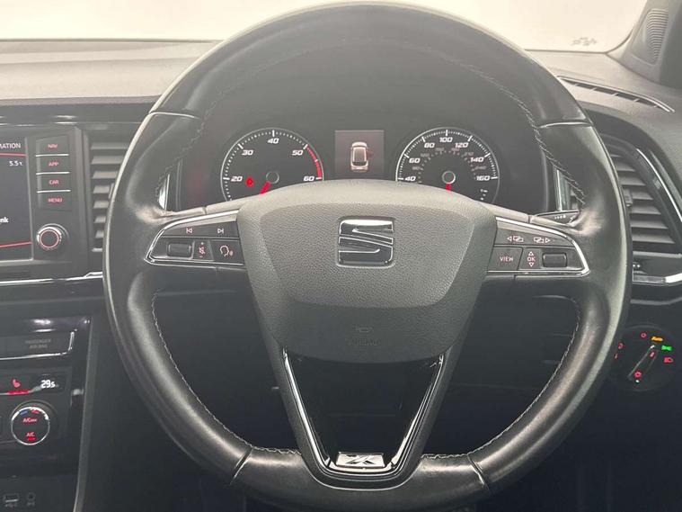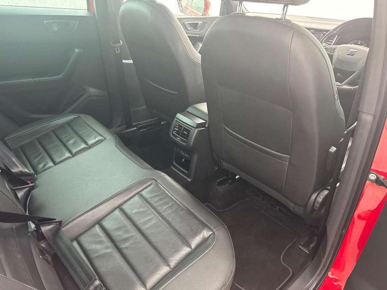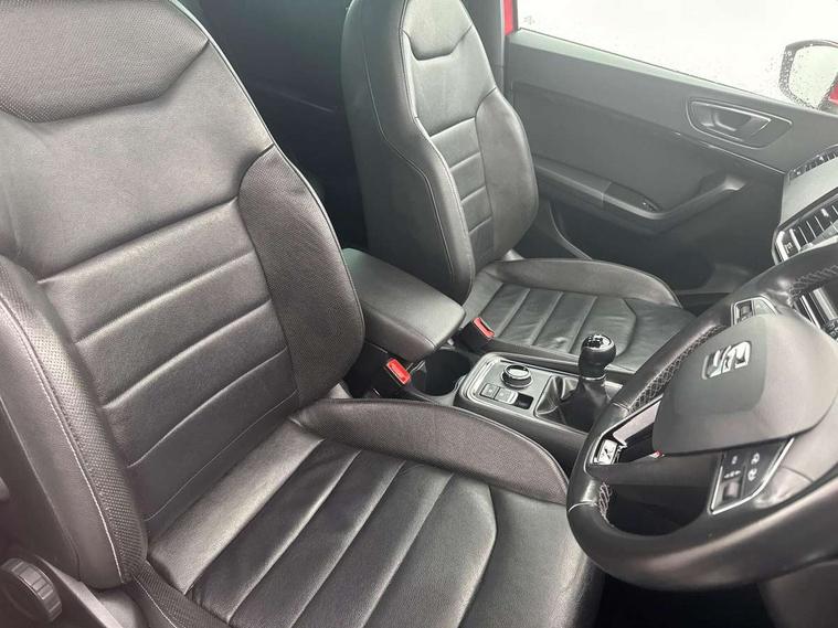 'Lights On' Reminder warning buzzer, Apple car play/Android Auto, Driver alert system, Low fuel warning light, Multi function display, Outside temperature gauge, Progressive power assisted steering, Rear parking sensor, Rear view camera, Remote fuel flap release, SEAT Drive profile, SEAT logo boot release, Trip computer, Comfort suspension, XDS electronic differential lock, 2 USB sockets in rear, Mirror link app interface, Steering wheel mounted audio/phone controls, Aluminium front door sills, Aluminium roof rails, Body colour bumpers, Body colour door handles, Body colour door mirrors, Chrome side window trim, Chromed centre radiator grille surround, Dark tinted rear windows, Electric folding door mirrors, Electrically adjustable and heated door mirrors, Front and rear electric windows, High gloss black grille, LED daytime running lights, LED front fog lights with static cornering light function, LED Headlights, LED tail lights, Rear wash/wipe, Welcome lighting, 12V power point front, 3 height adjustable rear headrests, 4 Lashing eyes in boot, 60/40 split folding rear seat, Active head restraints, Adjustable front armrest with storage compartment, Advanced multicolour ambient light with LED interior light and LED illuminated glovebox, Black roof lining, Card holder, Driver seat lumbar adjustment, Driver/passenger lumbar adjustment, Driver/passenger sunvisors with illuminated vanity mirrors, Dual zone climate control, Footwell illumination, Front cupholders x 2, Front reading lights, Front seat back storage pockets, Height adjustable front headrests, Height adjustable passenger seat, Illuminated boot, Isofix child seat preparation, Leather steering wheel and gear knob, Leather upholstery, Rear armrest, Rear central air outlet, Rear reading lights, Sports seats, Convenience pack - Ateca, Seat Media System Plus pack - Ateca, Winter Pack - Ateca, 3x3 point rear seatbelts, ABS, Auto hold function, Automatic post collision braking, Curtain airbags, Driver/Front Passenger airbags, Drivers knee airbag, Electronic parking brake, ESP+EBA, Front and rear seatbelt reminder, Front assist including city emergency braking, Front passenger airbag deactivation, Front side airbags, Hill hold control, Predictive pedestrian protection, Tiredness recognition system, Traction control, Tyre pressure monitoring system, Immobiliser, Keyless entry and go and connectivity hub with wireless charger, Locking wheel bolts, Remote central locking, Volumetric alarm with back up horn, Chrome effect dashboard facia,