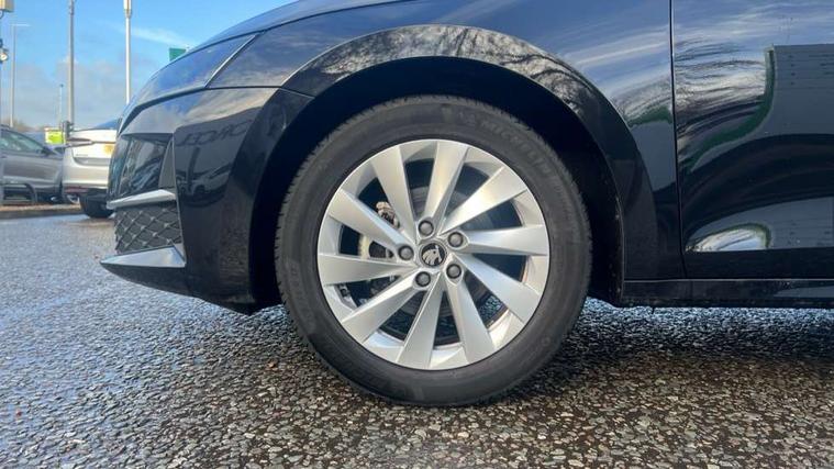 1x USB Typc C port in rear view mirror, 4x USB Type C ports - 2x in front centre console and 2x in rear (45W), Drive mode selection, Driver fatigue sensor, eCall emergency system, Electro-mechanical power steering, Front assist system, Traffic jam assist, Traffic sign recognition, Turn Assist, Virtual Cockpit - 10.25" digital display, Voice control system, Wireless charging (15W) with cooling function, Wireless SmartLink for Apple CarPlay and Android Auto, 13" touchscreen display with navigation, DAB Digital radio, Aero front windscreen wipers with intermittent function, Auto dimming rear view mirror, Body colour bumpers, Body colour door mirrors and handles, Chrome grille surround, Chrome roof rails, Chrome strip in lower front bumper, Chrome window surrounds, Electric front and rear windows, Heated rear windscreen, High level third brake light, Ice scraper in fuel cap, LED daytime running lights, LED Headlights, Logo projection in front doors, Rain and light sensors, Rear fog light on one side, Rear privacy glass, Rear side wing doors, Rear spoiler, Rear window wiper, 12 volt socket in boot, 3 rear headrests, 3 seat bench in 2nd row, 4 foldable roof handles, Front head restraints, Heated front seats, Illuminated glovebox, Interior door handles in dark chrome, Jumbo Box storage, Luggage compartment lighting x2 lights, Mechanical rear seat release from boot, Single front passenger seat, Steering wheel in black leather with black stitching, Storage compartments in left and right of boot, Sun visors with mirrors, Sunglasses storage, Ticket holder, Umbrella in door panel, Unsplit rear bench seat, split folding backrest with centre armrest with cupholder, Comfort package - Octavia Estate, Simply clever package premium - Octavia, 3x3 point rear seat belts, Alarm with interior monitoring, tilt sensor and back up horn, Curtain airbags and front side airbags, Driver and front passenger airbags, Drivers knee airbag, Electronic parking brake, ESC including ABS, EBV, MSR, ASR, EDS, HBA, DSR, Front central airbag, Hill hold assist, ISOFIX on front passenger seat and outer rear seats, Passenger airbag deactivate switch, Three point seat belts in front and rear, Two tone horn, Tyre pressure monitor, Visual and acoustic seat belt reminder, Warning reflectors in front door, Anti-theft wheel bolts, Keyless start/stop, Remote central locking, Chrome air vent surrounds,
