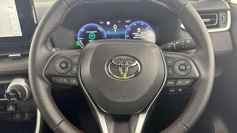 12.3" Digital Combimeter, Analog tachometer, Android Auto, Bluetooth system, Cyclist Detection, Digital speedometer, Drive mode selector, Driver attention alert system, eCall emergency call system, ECO-driving indicator, Electric power steering, EV audible alert, Front parking sensors, Full range intelligent adaptive cruise control, Hybrid system indicator, Lane departure alert with steering control, Lane trace assist, Lights on warning, Memory on adjustable speed limiter, MirrorLink, My T Connected services, Night Time Pedestrian Detection, Power boot opening and closing, Rear parking camera, Rear parking sensors, Remote boot door release in cabin, Remote boot door release in key, Road sign assist - RSA, Smart entry and push button start, Smartphone hazard lights notification, Tailgate, Toyota smart connect navigation, Traffic sign recognition, Trip computer, Voice control system, 6.6 kw fast charger, 7.5m cable with home charging plug, Vehicle Stability Control (VSC), 10.5" Toyota smart connect multimedia with wireless smartphone integration incl apple car play, 6 speakers, Auxiliary socket for external MP3 player, Digital audio broadcast (DAB)+, Gloss black surround on multimedia display, Multimedia Road Events, Rear USB connection, Toyota touch media system, USB in front armrest, Adaptive automatic high beam, Anti-jam protection on power windows, Auto dimming interior rear view mirror, Auto up and down function on power windows, Automatic headlights, Automatic wipers, Automatically retractable door mirrors, Black door moulding, Black front bumper, Black painted upper front grille, Black rear bumper, Black rear under-run, Black roof rails, Body colour door handles, Body colour rear roof spoiler, Body coloured door mirrors, Body coloured Shark-fin antenna, Chrome window surround, Dual exhaust pipes, Electric adjustable door mirrors, Electric heated door mirrors, Emergency brake-light signal (EBS), Follow me home headlights, Front wipers with variable intermittent facility, Honeycomb upper front grille, LED daytime running lights, LED dual beam projector headlights, LED front fog lights, LED front light guide, LED High mounted stop lamp, LED Indicators, LED rear brake lights, LED rear combination lights, PHEV badge in rear, Power front windows, Power rear windows, Privacy glass, Rear side wing doors, Rear windscreen defogger, Rear wiper, Silver front under-run, Smartphone remote power window operation, Trailer sway control, Turning signal integrated indicators in door mirrors, 1.5L front and rear bottle holder, 12 volt front socket, 12V power outlet - Boot, 220v power socket in boot, 2x Rear coat hooks, 3 rear headrests, 3 seat bench in 2nd row, 60/40 split fold rear seat back, Adjustable speed limiter switch on steering wheel, Array microphone, Black roof lining, Clean air filter, Cloth upholstery, Driver and front passenger personal light, Driver and front passenger Whiplash Injury Lessening seats, Driver and passenger seatback pockets, Driver and passenger sunvisors with illuminated vanity mirrors, Dual sided deck board in boot, Dynamic sports seats, Energy saving heat pump, Folding rear centre armrest, Front and rear cup holders, Front centre armrest, Front headrests, Front leather armrest, Front/rear roof mounted assist grips, Gloss black surround on centre console, Heated driver and front passenger seats, Heated rear seats, Illuminated entry system, Isofix child seat preparation, Leather gear shift with chrome surround, LED boot light, LED centre room light, Lockable glovebox, Manual telescopic and tilt 3-spoke nappa leather steering wheel, Manually reclining and sliding front passenger seat, Multimedia switches on steering wheel, Pollen filter, Power height-adjustable sliding reclining and lumbar support for driver seat, Rear console box, Rear door armrests, Rear passenger air vents, Rear view display in display audio screen with dynamic guide lines, Reclining rear seats, Remote dual zone automatic air conditioning, Retractable tonneau cover, Satin chrome interior door handles, Single front passenger seat, Sunglasses holder, Telephone and voice recognition switches on steering wheel, White ambient lighting in footwell, White ambient lighting on front cup holders, White ambient lighting on open tray, 3x3 point rear seatbelts, ABS/EBD, Acoustic vehicle alerting system, Adjustable front driver and passenger seat belt extender, Brake assist function, Brake hold function, Child proof door locks, Collision mitigation braking system, Driver/Front Passenger airbags, Driver/front passenger side airbags, Drivers knee airbag, Electronic parking brake, Electronic Stability Programme (ESP), Front and rear curtain airbags, Front and rear seatbelt reminder, Front passenger airbag detector, Hill start assist, Passenger airbag cut-off device, Pedestrian detection, Pre collision system, Seatbelt pretensioners with load limiters, Supplemental restraint system (SRS) airbags, Toyota safety sense 2, Traction control, Tyre pressure warning, Glass-breaking alarm sensors, Immobiliser, Intrusion alarm, Light - on and Key in reminder, Motion sensor alarm, Power door locks, Remote central locking, Smartphone remote door lock, Speed sensitive auto door locking, Tilt detection sensors, Black centre air vent surround, Gloss black centre console, Open tray on passenger dashboard, Soft-touch black upper dashboard with silver insert, Soft-touch texture on lower dashboard, 18" 5 spoke grey machined face alloy wheels, Full size spare wheel,