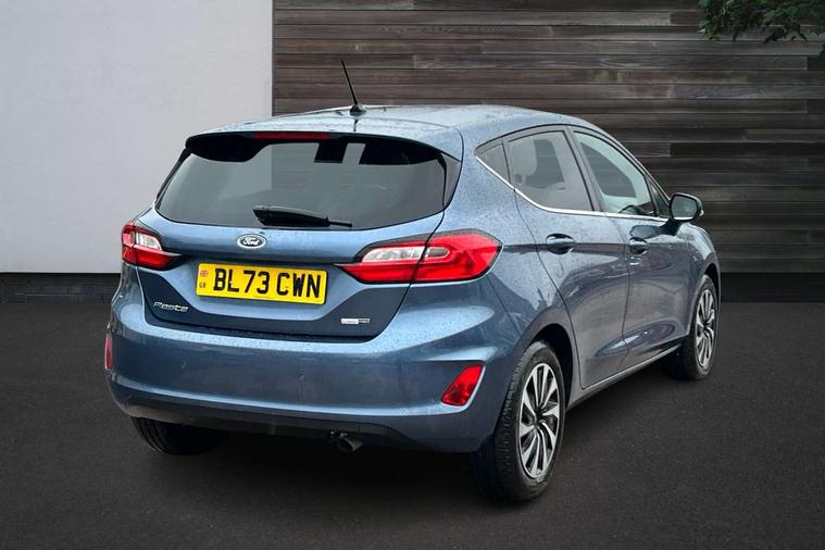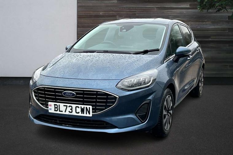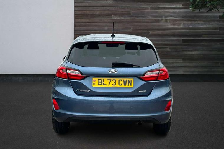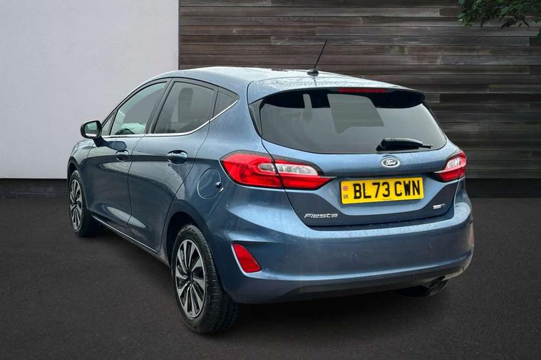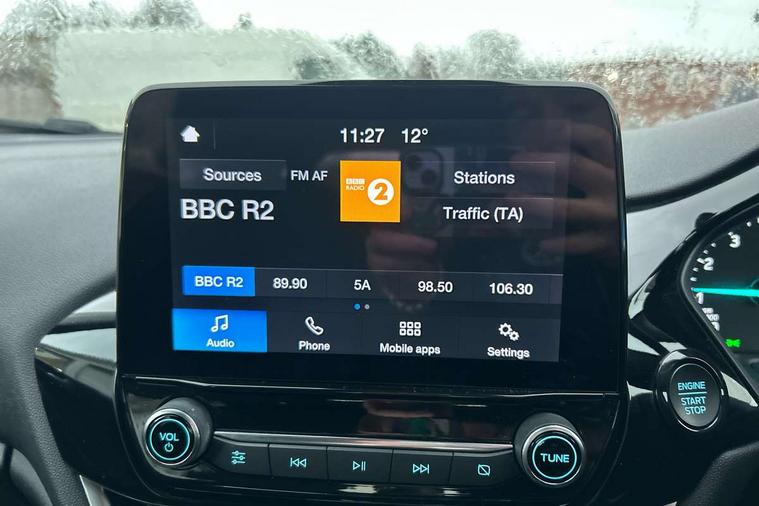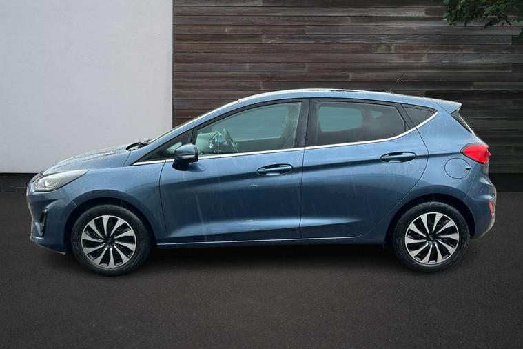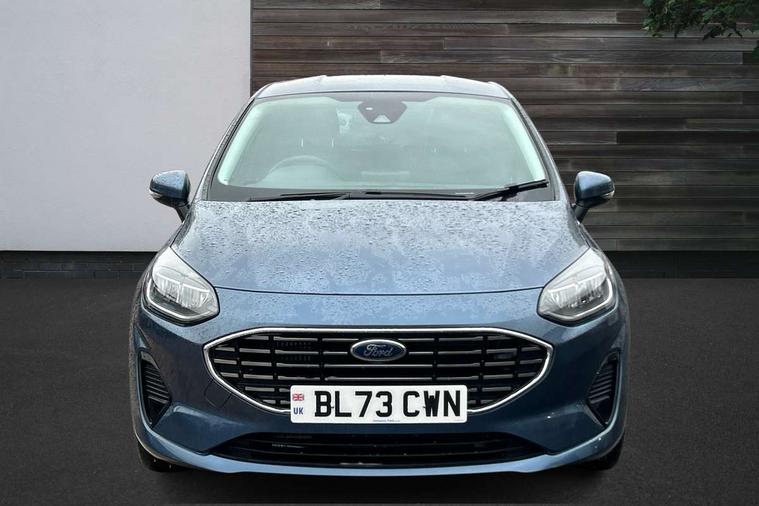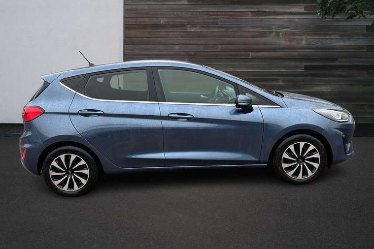 Bluetooth system, Electric power steering, Ford easy fuel, Ford SYNC 3 Navigation system incl 8" touchscreen, 7 speakers, FordPass connect, Apple carplay, android auto, voice control and emergency assistance, Rear parking distance sensors, Selectable drive modes (Normal, Sport, Track), Trip computer, 2 USB ports, Auxiliary input socket, DAB Digital radio, Steering wheel mounted controls, Body colour bumpers, Body colour door handles, Body colour rear spoiler, Body coloured electrically operated and heated door mirrors with side indicators, Chrome beltline trim, Chrome front grille, Chrome lower window surround, Cornering front fog lights, Electric front windows/one touch facility, Electric rear windows, Quickclear heated windscreen, Rain sensing wipers and auto dimming rear view mirror, Rear privacy glass, Rear wiper, 3 spoke leather trimmed steering wheel with audio control, 60/40 split folding rear seat, Adjustable head restraints, Boot carpet, Centre console with opening armrest, 2x cupholders, 12v and USB, Chrome inner door handles, Cloth upholstery, Footwell illumination, Front floor mats in velour, Front map reading lights, Front seat and rear pockets, Illuminated glovebox, Leather gaiter, Load area light, Luxury woven headliner, Manual 2 way passenger seat adjust, Manual 4-way driver seat adjust, Manual air conditioning, Overhead console with sunglasses holder, Pollen filter, Rake/reach adjustable steering wheel, Sensico wrapped steering wheel, NCAP Pack - Fiesta, 3 point seatbelts on all rear seats, ABS+EBA, Curtain airbags, Driver and passenger airbags, Drivers knee airbag, Electronic stability control with hill start assist, Front passenger airbag deactivation, Front side airbags, Seatbelt warning, Two tone horn, Tyre pressure monitoring system, Keyless start with 'Ford Power' starter button, MyKey system, Remote central locking & engine immobiliser, Thatcham Cat.1 alarm, 16" 10 spoke alloy wheels,