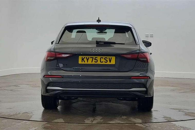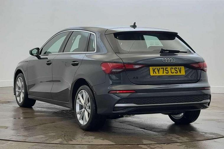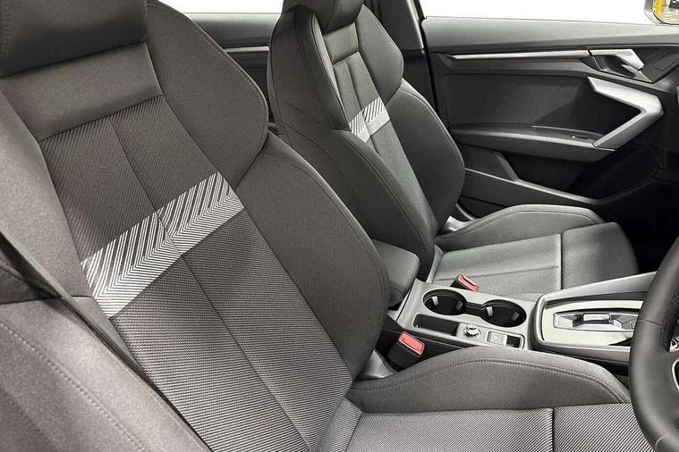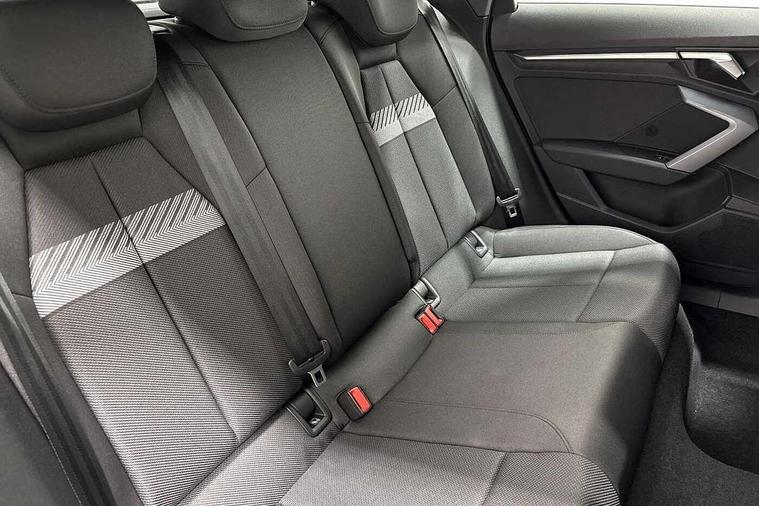 Adjustable speed limiter, Audi drive select, Audi smartphone interface with app store includes wireless Apple carplay, Android auto and Amazon alexa integration, Audi virtual cockpit plus - 12.3" full HD resolution dynamic digital instrument cluster, Automatic start/stop system with recuperation, Bluetooth interface, Camera based traffic sign recognition, Collision avoidance assistant, Cruise control, Distraction and Fatigue warning, e-Call (emergency call), Electromechanical power speed sensitive steering, Emergency assist, Lane departure warning system, MMI Navigation Plus with high resolution 10.1" colour touch screen display, Park Assist with parking system Plus, Service indicator, Trip computer, Voice control system with natural language interaction, 3 pin 10 amp domestic charging cable, CCS socket for DC charging, Charging cable for public charging, mode 3 (type 2), 32 A, Compact charging system, Industrial connector CEE 32 A, 230 V, length 1.6 m, Standard suspension, Type 2 socket for AC charging, Audi Phonebox light with wireless charging, Audi sound system - 10 loudspeakers including centre loudspeaker and subwoofer, DAB Digital radio, USB ports with charging function in the rear, 3rd brake light, Acoustic glass windscreen, Aluminium window trim, Auto dimming frameless rear view mirror, Body colour exterior mirrors, Body colour roof spoiler, Dipped beam, main beam, position light and turning light, Electrically adjustable/heated/folding/auto dimming door mirrors with integrated LED indications + kerb view function for passenger side, Exterior model badging, Front electric windows, Front radiator grill in high gloss dark chrome, Front side air inlets in grained matt black with silver frame, Heat insulating glass windscreen, LED daytime running lights, LED headlights and halogen rear lights, Light and rain sensors, Rear diffuser and grill in grained matt black with silver frame, Rear electric windows, Rear side wing doors, Rear window, rear door windows and rear side windows in clear glass, Rear wiper, 12V socket and storage compartment in front centre console, 3 seat bench in 2nd row, 3 spoke leather multifunction steering wheel with gear shift paddles, 3-zone deluxe automatic air conditioning, 4 way electrically adjustable lumbar support for driver and front passenger, 60/40 split folding rear seat bench, Black front and rear floor mats, Convenience auxiliary air conditioning, Front and rear headrests, Front centre armrest, Front door sill trims with aluminium inlay, Heated front seats, Height and reach adjustable steering wheel, Manual boot compartment lid, Manually adjustable front seats, Routine cloth upholstery with front sports seats, Seat side bolsters, Single front passenger seat, Steel grey cloth headlining, Aluminium interior elements pack - A3, LED interior lighting pack -A3, 3x3 point rear seat belts, Acoustic vehicle alerting system, Driver and front passenger airbag with passenger airbag deactivation, Electronic Stabilisation Control (ESC) including ABS, ASR and EDL, First aid kit with warning triangle and 2 safety vests, Front side airbags with head airbags and interaction airbag, Hill hold assist, Pre-sense front with pedestrian and cyclist detection, Seatbelt monitoring, Tyre pressure loss indicator, Anti theft alarm, Anti-theft wheel bolts, Electronically operated child locks, Immobiliser, Remote central locking with safelock, Black dashboard, Inlays in volcano grey fine paint finish, Tyre repair kit,