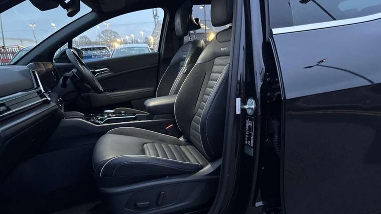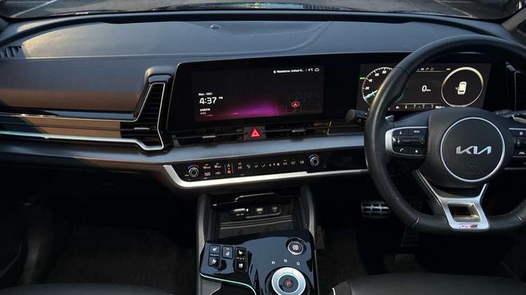 12.3" Display with navigation, 12.3" supervision colour cluster display, 360 degree around view monitor, Apple car play/Android Auto with voice control, Blind spot collision avoidance assist, Blind spot view monitor, Drive mode selector, E-call, Forward collision avoidance assist (FCA) - city/pedestrian/cyclist/junction covering, Front and rear parking sensors, Highway Driving Assist (HDA), Intelligent speed limit assist, Kia Connect (UVO), Lane Following Assist (LFA), Lane keep assist, Low washer fluid warning, Parking collision avoidance assist (PCA), Remote smart parking assist, Reversing camera system integrated into centre fascia screen, Smart cruise control with stop and go functionality, Smart power tailgate, Speed sensitive power steering, Trip computer, Windscreen washer level indicator, Wireless Smartphone charger, Intelligent Stop and Go, Terrain mode select (Mud, Snow, Sand), Bluetooth audio streaming, DAB Radio with MP3, Harman Kardon premium sound system, Rear USB port, Steering wheel mounted audio controls, USB C type charging ports on centre console, USB C type charging ports on side of front seats, USB port for connection of a media device, All round electric windows with drivers and front passenger auto up/down function, Automatic headlight control system, Automatic window defogger, Backlite glass heated with timer, Body colour and black bumper with silver accents, Body colour exterior door handles, Body colour radiator upper garnish and door garnish, Dual LED adaptive headlamps, Electric panoramic glass sunroof (Electric one touch with safety function), Electrically adjustable/heated/folding door mirrors with LED indicators, Front and rear chrome skid plates, Gloss black door mirrors, Gloss black radiator grille, Gloss black side sill and wheel arch body mouldings, Glossy black roof rack, High beam assist, Interior electrochromic mirror, LED daytime running lights, LED front fog lamps, LED High mounted stop light, LED rear combination lamp, Rain sensing wipers with aero blades, Rear fog lamp, Rear privacy glass, Rear side wing doors, Rear spoiler, Rear wiper, Satin finished beltline, Silver coloured inserts to bumpers, Tinted rear glass, Trailer stability assist, 10 way driver/8 way passenger electrically power adjustable seats, 12V power socket in front centre fascia and luggage compartment, 3 seat bench in 2nd row, 3 x passenger assist grips, 40/20/40 split folding rear seat, All-round height adjustable headrests, Ambient lighting, Black headlining, Centre console storage box, Cupholders in rear armrest, D-Shaped sports leather steering wheel and perforated inserts with GT-Line logo, Door courtesy lamps, Drink holder at centre armrest, Driver and front passenger side sunvisors with illuminated vanity mirrors, Driver seat memory function, Drivers seat power lumbar support, Front and rear door storage, Front seat and rear pockets, Front/rear centre armrests, Gear shift indicator, Glovebox illumination, Heated front and outer rear seats, Heated steering wheel, Interior door lock/unlock function, ISOFIX Child seat top tethers and anchor fixings outer rear seats, LED interior personal lamp, LED lighting in overhead console, Luggage area LED light, Luggage area load cover, Luggage net with hooks, Metal paint interior door handles, Paddle shift controls, Rear cabin light, Rear coat hooks, Single front passenger seat, Sports pedals, Suede leather upholstery, Three zone climate control, Tilt/telescopic adjustable steering wheel, Ventilated front seats, Ventilation ducts to rear compartment, Active front headrests, All round 3-point seatbelts, Anti-lock braking system (ABS), Dual front side airbags, Dual horn, Electronic parking brake, Electronic stability control with downhill brake control, Front passenger airbag cut-off switch, Front seatbelt pretensioners + load limiters, Height adjustable front seatbelts, Hill start assist control (HAC), Impact sensing auto door unlocking, Multi collision brake assist, Rear door child safety locks, Rear seat alert system, Traction control, Twin curtain airbags, Twin front airbags, Tyre pressure monitoring system, Advanced anti-theft system including immobiliser and alarm, Door deadlocks, Engine Start/Stop Button with Smart Entry System, Locking wheel nuts, Speed sensitive auto door locking, Visible vehicle identification number, Aluminium pattern finish centre fascia and door garnish, 18" GT-Line alloy wheels, Michelin tyres, Tyre mobility kit,