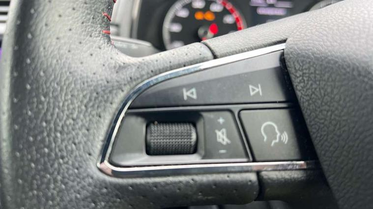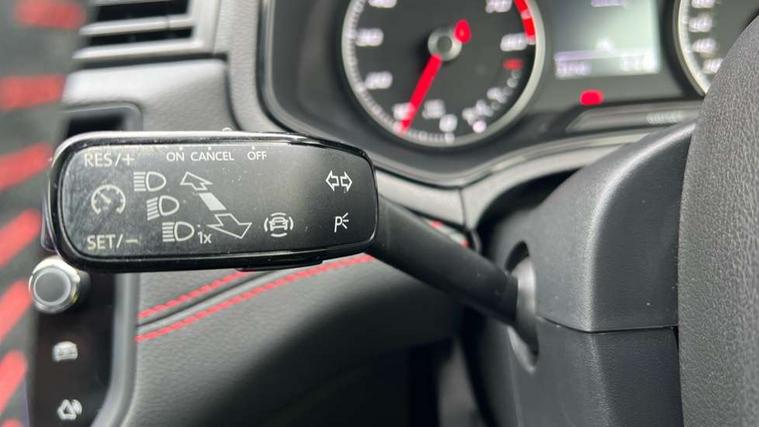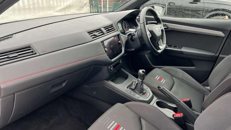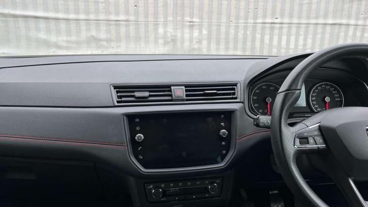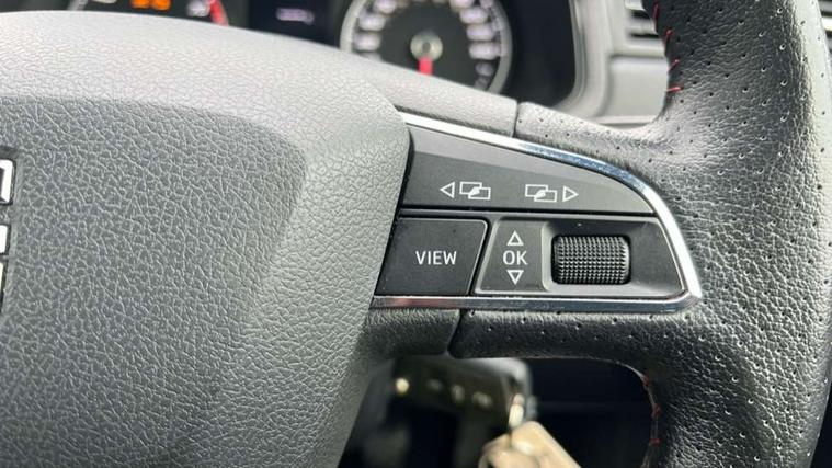 'Lights On' Reminder warning buzzer, Bluetooth audio streaming with handsfree system, Cruise control, Digital clock, Full Link Smartphone Integration with Mirror Link, Apple Car Play, Google Android Auto, Low fuel warning light, Navigation system with 8" touch screen + proximity sensor, voice control and USB type C sockets, Outside temperature gauge, Power Steering, Seat connect with safety, service, remote and online, SEAT Drive profile, SEAT logo boot release, Speed limiter, Trip computer, Sports suspension, 6 speakers, Auxiliary input socket, CD player, Digital Audio Broadcast (DAB) Tuner, Radio/MP3 player, SD card slot, Steering wheel mounted controls, USB (type C) cable for Apple and Android compatibility, Anti theft roof antenna, Auto dimming rear view mirror, Automatic headlights, Automatic rain sensing wipers, Body colour bumpers, Body colour door handles, Brilliant black door mirrors, Brilliant black window surrounds, Chrome front grille frame, Coming/leaving home lighting function, Dark tinted rear windows, Electric folding door mirrors, Electric front windows, Electric headlight adjustment, Electric rear windows, Electrically adjustable and heated door mirrors, Exclusive FR rear bumper, Front/rear fog lights, LED daytime running lights, LED headlights with dynamic headlight range control, LED tail lights, Rear spoiler with twin exhausts, 60/40 split folding rear seat, Ambient interior lighting, Chrome detailing, pearl grey headlining and leather effect door trim panels, Driver's sunvisor with ticket holder/vanity mirror, Dual zone climate control with combination filter, Front courtesy lights, Front cupholders x 2, Front reading lights, Gear shift indicator, Glovebox, Height adjustable driver's seat, Height adjustable passenger seat, Height/reach adjust steering wheel, Illuminated boot, Instrument lighting with brightness control, Leather dashboard, Leather multifunction flat bottomed steering wheel with FR logo, leather gear knob and handbrake, Nora cloth upholstery, Passenger sunvisor, Rear top tether child seat ISOFIX attachment, Sports seats, Two height adjustable front and rear headrests (three in rear), 3 point seatbelts on all 3 rear seats, ABS, Active front headrests, Child locks on rear doors, Curtain airbags, Driver/Front Passenger airbags, ESP+EBA, Front assist (AEB), Front passenger airbag deactivation, Front side airbags, Hill hold control, Multi-Collision braking, Seat belt reminder for front and rear seats, Tiredness recognition system, Tyre pressure monitoring system, Anti theft wheel bolts, Electronic engine immobiliser, Perimeter alarm and interior monitoring with backup horn and tow away protection, Remote central locking + deadlocks, 17" Dynamic alloy wheels,