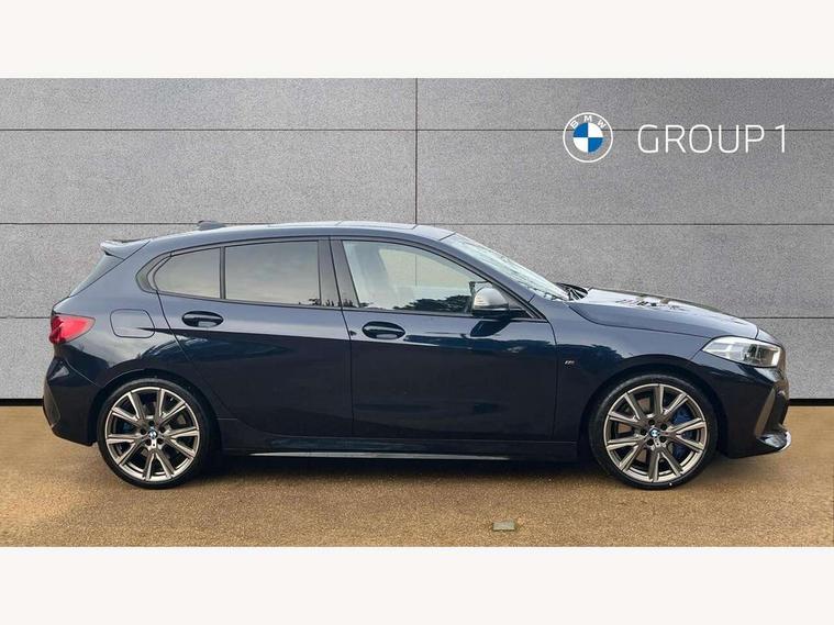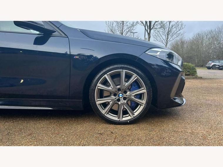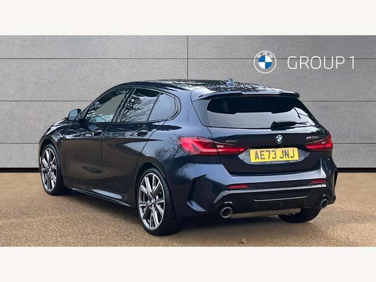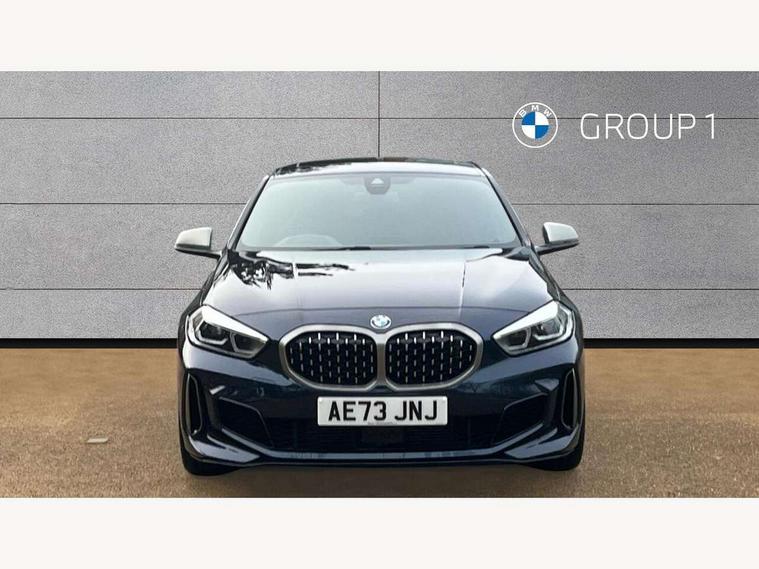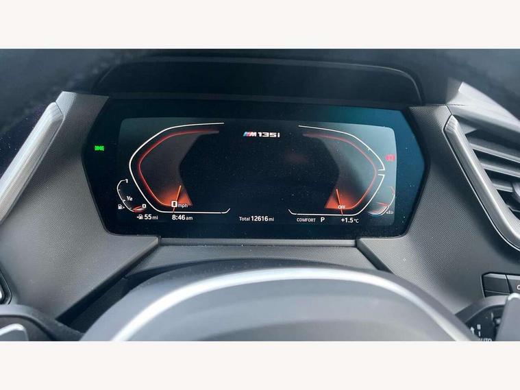 Active guard plus, Attentiveness assist, BMW ConnectedDrive online services, BMW Teleservices, Check Control warning system for monitoring of lights and door/luggage compartment open warning, Cruise control with speed limiter, Eco pro mode, Electric power steering, Electro hydraulically controlled multi-plate clutch transfers drive to rear axle and with power take-off device located on the front differential., Energy efficient operating strategy, Front axle single joint with specific axle kinematics to minimise drive influences on steering + provide increased rigidity agile driving behaviour, Gearshift time display in manual mode, Integrated owners handbook, Lane departure warning system, M Sports steering with M135i xDrive specific settings, Oil sensor for level and grade, On board computer, Optimum shift indicator, Personal Profile, Pull away assistant, Rigidly mounted rear subframe - Multi link construction with separate spring / damper configuration and excellent driving characteristics, Speed limit Info including no-overtaking indicator, Sporty fast gear shifting in sport mode, Aluminium lightweight construction, Anti roll bar front and rear, Balancer shaft, Double VANOS, Drive Performance Control, Eight speed sport automatic transmission with gearshift paddle switches, Electronic differential lock, Electronic selector lever, Engine cover with M performance designation, High precision injection, Larger fuel tank capacity (50 litres), Launch control, M135i specific heavily de-throttled engine intake air guide, M135i specific high-performance cooling package, M135i specific larger turbocharger with integrated divert-air valve, Petrol Particulate Filter, Twin tube gas filled shock absorbers with degressive characteristic curve, VALVETRONIC engine management, Variable, stepless and infinitely adjustable distribution of drive torque between the front and rear axles, xDrive intelligent all wheel drive with M135i specific reinforced components, DAB Digital radio, Auto dimming rear view mirror, Automatic headlight beam throw control, Automatic windscreen wipers and automatic headlight, Body colour door handles, Body colour roof trims, Cerium grey exterior mirror caps, Direction indicator side lights in exterior mirrors, Electrically adjustable exterior mirror with mirror adjustment switch on drivers armrest and aspheric on driver side, convex on passenger side, Exhaust tailpipe, Cerium Grey with bevelled finish - twin, round 100mm, left and right split, Fading support, Folding side mirrors with auto dimming/folding wing mirrors with auto dimming, Follow me home headlights, Front and rear bumper system with replaceable deformation elements, Front and rear electric windows with open and close fingertip control, anti trap facility and comfort closing, Front door sill finishers with M135i designation, Green tinted heat protection glazing, High gloss shadowline window frame, Recess cover mirror frames and B/C pillar embelisher trim, High level third brake light, Integrated front windscreen with washer jets, Kidney grille frame in Cerium Grey with Mesh design, LED daytime running lights, LED eyebrow turn indicators, Lightweight engineering, M logo designation side in cerium grey, M Performance exhaust system with valve control and minimised exhaust back pressure, M Performance specific setup, M Sport spoiler, Matt black air guide grilles, Matt black wheel arch trim, Model designation on electric bootlid includes xDrive designation for M135i xDrive, Nearside reverse light in rear light cluster, Preparation for high beam assistant, Rear fog lights, Rear side wing doors, Rear window wiper, Reinforced crank drive, new pistons and adapted con rods, Shark fin antenna, Trailer stabilisation logic, Visible VIN plate, Welcome lighting, 12V power socket in front centre console with blanking plug, 3 rear seat head restraints, 3 seat bench in 2nd row, 3 spoke sports leather steering wheel with black leather and stitching, pearl chrome decorative finish, specific M Badge, Anthracite headlining, Black boot net with lashing eyes, Cargo function on 2nd seat row, Child seat ISOFIX attachment for two outer rear seats and front passenger seat with anchorage points, Conditioned based service, Driver and front passenger backrest net on rear, Driver and front passenger seat heating, Driver side folding compartment in instrument panel, Folding rear clothes hook, Four grab handles integrated in roof lining, Front and rear door pockets with bottle holders, Front and rear side armrest integrated into door trim, Front armrest, Front M sports seats, Glove compartment, Height adjustable front head restraints, Luggage compartment for bag hooks on left and right, foldable luggage compartment liner and four lashing eyelets, Manual adjust steering wheel, Multi-function controls for steering wheel, Single front passenger seat, Storage compartment in centre console, Storage compartment in luggage compartment, Stowage of the parcel shelf in luggage compartment trim, Sun visors with vanity mirrors and insert tab, Two front centre console cupholders, Two zone automatic air conditioning, Type C two USB ports in rear centre console, Velour floor mats, Additional interior lighting pack - 1 Series M135i, BMW live cockpit professional pack- 1 Series, Connected pack professional - 1 Series, Interior lights pack - 1 Series, M Sport exterior styling aerodynamics pack - 1 Series 135i, 2 tone horn, 3 point seatbelts on all seats, front pyrotechnic belt tensioners, stopper and belt force limiters, rear coded belt buckles, Airbags - Front driver/passenger, front and rear curtain head protection, front side, manual deactivation of front passenger airbag, Anti lock braking system (ABS) with brake assist, BMW emergency call, Brake drying, Braking readiness, Child proof locking system in rear door, City braking function, Comfort modes, Cornering brake control, Crash sensor activating of airbags, Unlocking doors, hazard warning lights, interior light