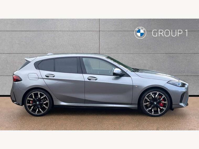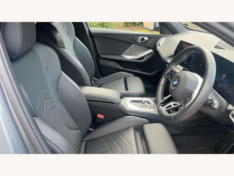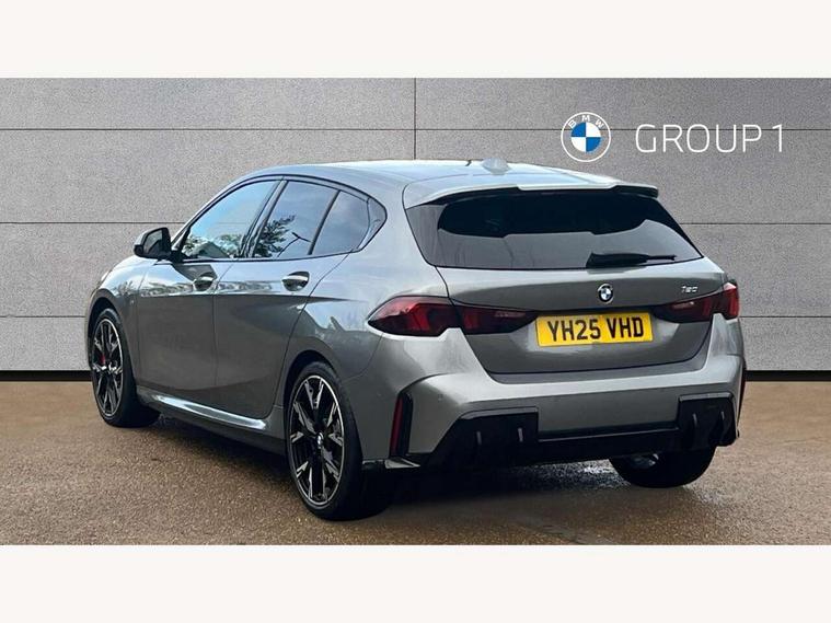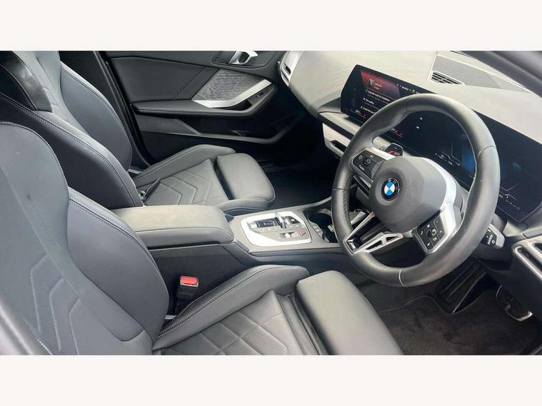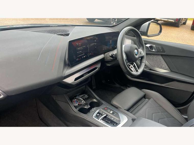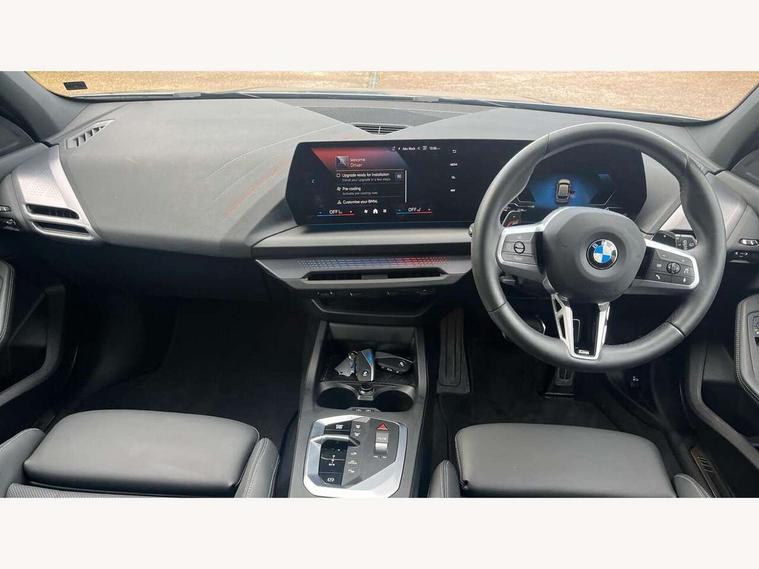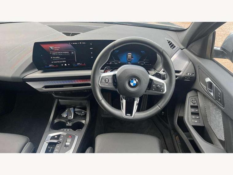 Active guard plus, Attentiveness assist, Bluetooth / WiFi interface for wireless connection of mobile terminal devices and audio streaming, BMW ConnectedDrive online services, BMW Live cockpit plus, BMW Teleservices, Check Control warning system for monitoring of lights and door/luggage compartment open warning, Eco pro mode, Electric power steering with Servotronic steering optimised at all speed ranges, Evasion assistant, Flat airvents in instrument panel with adjustable slats, Front and rear parking sensors, Front axle single joint with specific axle kinematics to minimise drive influences on steering + provide increased rigidity agile driving behaviour, Gearshift time display in manual mode, Integrated owners handbook, Left turn warning with brake function, My modes (Personal / Efficient / Sport), Oil sensor for level and grade, On board computer, Optimum shift indicator, Park assist including reversing assistant, lateral parking aid and reversing assist camera, Personal e-SIM, Personal Profile, Pull away assistant, Rigidly mounted rear subframe - Multi link construction with separate spring / damper configuration and excellent driving characteristics, Speed limit Info including no-overtaking indicator, Speed limiter, 49 litre fuel tank, Aluminium lightweight construction, Anti roll bar front and rear, Balancer shaft, Double VANOS twin scroll turbocharging system, Drive Performance Control, Electronic differential lock, Electronic selector lever, High precision injection, M Adaptive suspension, Petrol Particulate Filter, Steptronic transmission with double clutch, Twin tube gas filled shock absorbers with degressive characteristic curve, VALVETRONIC engine management, DAB Digital radio, Auto dimming rear view mirror, Automatic windscreen wipers and automatic headlight, Body colour door handles, Body colour mirror caps, Body colour roof trims, Chrome 'M' logo side designation, Chrome exhaust twin tailpipes round 90mm in left, Chrome kidney grille frame with Satin Aluminium struts, Direction indicator side lights in exterior mirrors, Electrically adjustable exterior mirror with mirror adjustment switch on drivers armrest and aspheric on driver side, convex on passenger side, Exterior M sport design elements, Fading support, Folding side mirrors with auto dimming/folding wing mirrors with auto dimming, Follow me home headlights, Front and rear bumper system with replaceable deformation elements, Front and rear electric windows with open and close fingertip control, anti trap facility and comfort closing, Front bumper panel with M specific design in vehicle colour with inserts in black high gloss, Front door sill finishers in black plastic with M designation in metallic look, Green tinted heat protection glazing, Heated rear window, High gloss black exterior mirrors, High gloss shadowline window frame, Recess cover mirror frames and B/C pillar embelisher trim, High level third brake light, Integrated front windscreen with washer jets, LED daytime running lights, LED eyebrow turn indicators, LED front fog lights, LED Headlights, Lightweight engineering, M identification on the sides, Matt black air guide grilles, Matt black wheel arch trim, Model badge on tailgate right, Nearside reverse light in rear light cluster, Preparation for high beam assistant, Rain sensor, Rear bumper panel with M-specific design in vehicle colour with inserts in black high gloss, Rear fog lights, Rear side wing doors, Rear window wiper, Shark fin antenna, Side sill covers with M specific design in body colour, Trailer stabilisation logic, Visible VIN plate, Welcome lighting, 12V power socket in front centre console with blanking plug, 3 rear seat head restraints, 3 seat bench in 2nd row, 3 spoke sports leather steering wheel with black leather and stitching, pearl chrome decorative finish, specific M Badge, Anthracite front and rear floor mats, Anthracite headlining, Black boot net with lashing eyes, Cargo function on 2nd seat row, Child seat ISOFIX attachment for two outer rear seats and front passenger seat with anchorage points, Conditioned based service, Driver and front passenger backrest net on rear, Driver and front passenger seat heating, Driver side folding compartment in instrument panel, Folding rear clothes hook, Footrest and pedals in black plastic, Four grab handles integrated in roof lining, Front and rear door pockets with bottle holders, Front and rear side armrest integrated into door trim, Front armrest with storage compartment, Gearshift paddles on steering wheel, Glove compartment, Height adjustable front head restraints, Luggage compartment for bag hooks on left and right, foldable luggage compartment liner and four lashing eyelets, Manual adjust steering wheel, Multi-function controls for steering wheel, Rear seat backrest with manual 60:40 split folding with 3 top tether clips integrated on rear of seat panels, Single front passenger seat, Storage compartment in centre console, Storage compartment in luggage compartment, Stowage of the parcel shelf in luggage compartment trim, Sun visors with vanity mirrors and insert tab, Two front centre console cupholders, Type C two USB ports in rear centre console, Upper retaining strap integrated into backrest rear panels, Connected pack professional - 1 Series, Interior lights pack - 1 Series, M Sport exterior styling aerodynamics pack - 1 Series, 2 tone horn, 3 point seatbelts on all seats, front pyrotechnic belt tensioners, stopper and belt force limiters, rear coded belt buckles, Airbags - Front driver/passenger, front and rear curtain head protection, front side, manual deactivation of front passenger airbag, Anti lock braking system (ABS) with brake assist, BMW emergency call, Brake drying, Braking readiness, Child proof locking system in rear door, Comfort modes, Cornering brake control, Crash sensor activating of airbags, Unlocking doors, hazard warning lights, interior light, safety battery terminal, Driver and front passenger seat belt sec