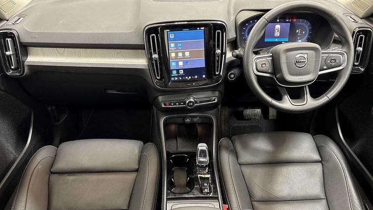 12.3" Progressive Driver Display, 360 degree surround view parking camera with side proximity sensors, 9" centre console portrait touch screen, Adjustable steering wheel force, Android auto (Wired), Apple carplay (wired), Bluetooth handsfree system, Driver alert control, Driver assistance (pilot assist and adaptive cruise control), Driver awareness - Blind spot information system with steer assist, cross traffic alert with autobrake and rear collision warning and mitigation, E-call, Front park assist, Google automotive services - Enabled entertainment apps, navigation with google maps, voice recognition with google assistant, Hands free power tailgate, Intelligent speed assistance, Lane keeping aid, Oncoming Lane Mitigation, Rear park assist, Speed sensitive steering, Volvo cars services with app - Driving journal, emergency and breakdown call, engine remote start, remote door locking/unlocking and vehicle dashboard, Wireless/Inductive Mobile Phone Charging, Automatic transmission with start/stop and manual change functions, Dynamic chassis, DAB Digital radio, Premium Sound by Harman Kardon, Dolby Pro Logic II Surround Sound, Dirac Unison, 12 speakers/600W and subwoofer, Steering wheel mounted remote controls, Active bending pixel LED headlights with adaptive shadow technology, Active high beam incorporating daytime running lights, Adaptive brake lights with high level LED brake lights, Auto dimming feature for exterior door mirrors, Auto dimming interior mirror, Automatic headlamp levelling, Dark tinted windows - rear side windows and rear screen, Front aluminium tread plates, Front and rear electric windows, Headlight cleaning system, High gloss black front and rear skid plate, High gloss black front bumper deco, High gloss black mesh front grille with high gloss black surround, High gloss black window trim, Home safe and approach lighting, Integrated roof rails in high gloss black, LED front fog lights with cornering function, Power glass tilt and slide panoramic sunroof with sun curtain, Puddle lights, Rain sensor with automatic windscreen wiper activation, Rear side wing doors, Rear wiper, Roof antenna, Roof spoiler, Visible VIN plate, 12V socket in front tunnel console and luggage compartment, 2-Zone electronic climate control with CleanZone air quality system and pollen filter, 3 seat bench in 2nd row, 3 Spoke tailored steering wheel with chrome trim, 60/40 versatile split folding rear seat, Centre console cupholders and storage, Flexible load floor and grocery bag holder, Floor mats, Front cabin courtesy lights, Front door pocket, front cupholder, ambient front door, rear reading, rear courtesy, instrument panel and tailgate lighting, Front footwell illumination, Front headrests, Front reading lights, Front seat cushion extensions, Front side step illumination (under door), Glovebox bag hook, Heated front seats, Height/reach adjustable steering column, High gloss centre tunnel deco, Illuminated glovebox, Illuminated luggage compartment, Illuminated vanity mirrors + ticket holder, Integrated waste bin, Isofix attachments on outer rear seats, Load cover, Load protection net, Multi directional lumbar support for driver and passenger seat, Power driver seat with memory + exterior mirrors memory, Power folding rear headrests, Power passenger seat, Rear armrest with cupholders, Single front passenger seat, Underfloor cargo storage, Climate pack without heated front seats - XC40, 3x3 point rear seatbelts, City safety with steering support with Pedestrian + cyclist + front collision warning with full auto brake and rear auto brake, Driver and passenger airbags, Drivers knee airbag, Electronic parking brake with auto hold, First aid kit, Front and outer rear seatbelt reminder and pretensioners, Front seats SIPS airbags, Hill descent control, Hill start assist, Inflatable curtain, Passenger airbag cut-off device, Power child locks on rear doors, Road sign information display, Run off Road Protection, SIPS (Side Impact Protection System), Slippery road and hazard light alert, Stability and Traction Control with Spin control, Engine Drag Control and Corner Traction Control, Tyre pressure monitoring system, Vehicle deceleration control with Anti-lock Brake System, Electronic Brake Distribution and Emergency Brake Assist, Warning triangle, WHIPS whiplash protection system - front, 2 x Key integrated remote control central locking including with deadlocking system and auto open/close windows and sunroof, Anti-theft alarm including immobiliser/volume sensor + level sensor, Keyless drive includes keyless entry and keyless start, Locking wheel nuts,