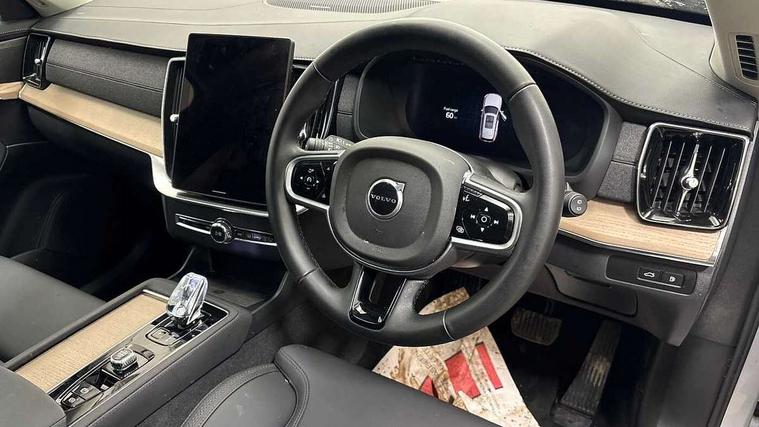 11.2" centre console touch screen, 12.3" Progressive Driver Display, 360 degree surround view parking camera with side proximity sensors, Adjustable steering wheel force, Apple carplay (wired), Bluetooth handsfree system, Drive mode settings, Driver alert control with lane keeping aid, Driver assistance (pilot assist and adaptive cruise control), Driver awareness - Blind spot information system with steer assist, cross traffic alert with autobrake and rear collision warning and mitigation, Driver monitoring system, Emergency call service, Front and rear park assist, Google Automotive Services - Navigation with Voice recoginition and google assistant, Handsfree power tailgate opening and closing, Intelligent speed assistance, Oncoming Lane Mitigation, PAS, Power operated tailgate, Service interval indicator, Speed sensitive steering, Trip computer, Volvo on call, Wireless/Inductive Mobile Phone Charging, 6m 3 phase 16amp Type 2 / mode 3 charge cable, 8 speed automatic transmission with start/stop + manual change functions, Active four C chassis - four corner adaptive dampers with electronic air suspension, Electric rear axle drive, Lithium-ion battery, On board charger - 6.4 kW 2 phase/3.7kW single phase, Recharging port located in nearside front wing, DAB Radio (Digital Audio Broadcasting), Low speed exterior sound speaker, Premium Sound by Harman Kardon, dirac unison, dolby pro logic II surround sound, 13 speakers/600W output and fresh air subwoofer, Steering wheel remote infotainment controls, Adaptive brake lights with high level LED brake lights, Auto dimming interior + exterior mirrors, Auto folding and heated power door mirrors, Automatic headlight levelling system, Automatic matrix LED headlights with Adaptive shadow technology and Active high beam, incorporating Day running lights, Body colour bumpers, Front and rear power windows, Headlight cleaning system, Heated front windscreen, High gloss black door mirrors and window surround, High gloss black front and rear bumper deco, High gloss black front grille and deco, Home safe and approach lighting, Integrated roof rails in high gloss black, Power glass tilt and slide panoramic sunroof with sun curtain, Puddle lights, Rain sensor with automatic windscreen wiper activation, Rear side wing doors, Rear wash/wipe with intermittent wipe setting, Roof antenna, Roof spoiler, Visible VIN plate, 12V socket in luggage compartment, 2nd Row centre armrest with and cupholders, 3 Spoke tailored sport steering wheel with chrome trim, 4 zone electronic climate control with Clean zone air quality system + pollen filter, A-pillar parking ticket holder, Air conditioning for 3rd row of seats, Air purifier PM2.5, Ambient door and instrument panel lighting, B Pillar ventilation, Bright metal luggage scuff plate, Centre console cupholders and storage, Floor mats, Front and rear courtesy lights, Front and rear door pocket illumination, Front footwell and side step illumination, Front headrests, Front reading lights, Front seat cushion extensions, Front tunnel storage illumination, Glovebox compartment light, Heated front seats, Heated rear seats, Heated steering wheel, Height/reach adjustable steering column, Illuminated front and rear aluminium tread plates, Illuminated luggage compartment, Illuminated tailgate, Illuminated vanity mirrors + ticket holder, Inner door release handle illumination, Isofix outer rear child seat preparation in 2nd row, Load cover, Load protection net, Lockable glovebox compartment, Luggage compartment divider with grocery bag holder, Nordico quilted upholstery, Outboard armrest with cupholder and storage for third row passengers, Power driver seat with multi directional lumbar support and memory for seat and exterior mirrors, Power folding 2nd row headrests, Power passenger seat with multi directional lumbar support and memory, Rear footwell and side step illumination, Rear headrests, Rear reading lights, Second row integrated child seat for centre seat, Single front passenger seat, Textile headlining, Three 2nd row individual folding passenger seats with fore/aft adjustment, Two 3rd row individual folding passenger seats, Underfloor luggage compartment storage, 7 three point seatbelts, City safety with steering support includes pedestrian, cyclist detection, front collision warning with full auto brake and rear auto brake, Driver and passenger airbags, Drivers knee airbag, First aid kit, Front seats SIPS airbags, Hill descent control - off drive mode, Hill start assist, IC (Inflatable Curtains) - Full Length, Passenger airbag cut-off switch, Power child locks on rear doors, Power parking brake with auto hold function, Road sign information display, Run off Road Protection, Seatbelt reminder and pretensioners for all seats, SIPS (Side Impact Protection System), Slippery road and hazard light alert, Stability and Traction Control with Spin control, Engine Drag Control and Corner Traction Control, Tyre pressure monitoring system, Vehicle deceleration control with Anti-lock Brake System, Electronic Brake Distribution and Emergency Brake Assist, Warning triangle, WHIPS whiplash protection system - front, 2x Key integrated remote control central locking + deadlocking system and auto open/close windows, Anti-theft alarm including immobiliser/volume sensor + level sensor, Keyless drive includes keyless entry and keyless start, Locking wheel nuts, Tailored instrument panel and door tops, Tyre sealant kit and compressor,