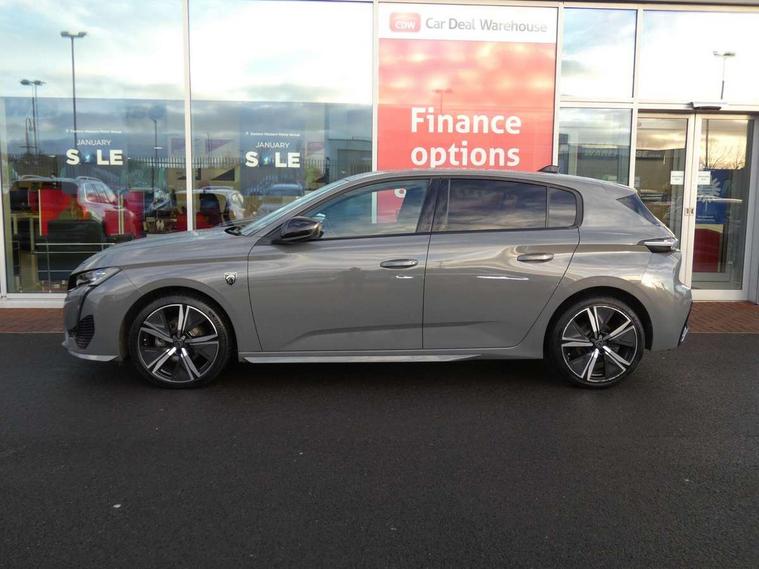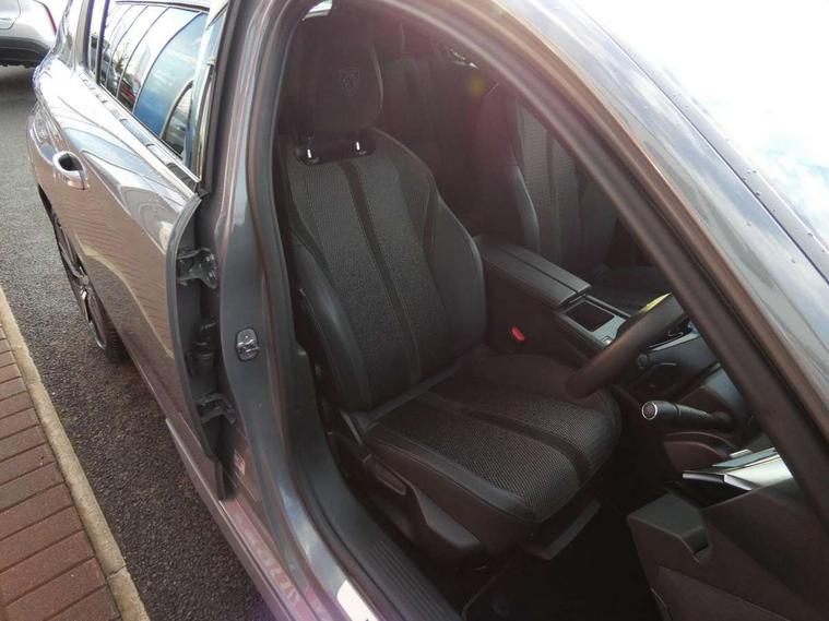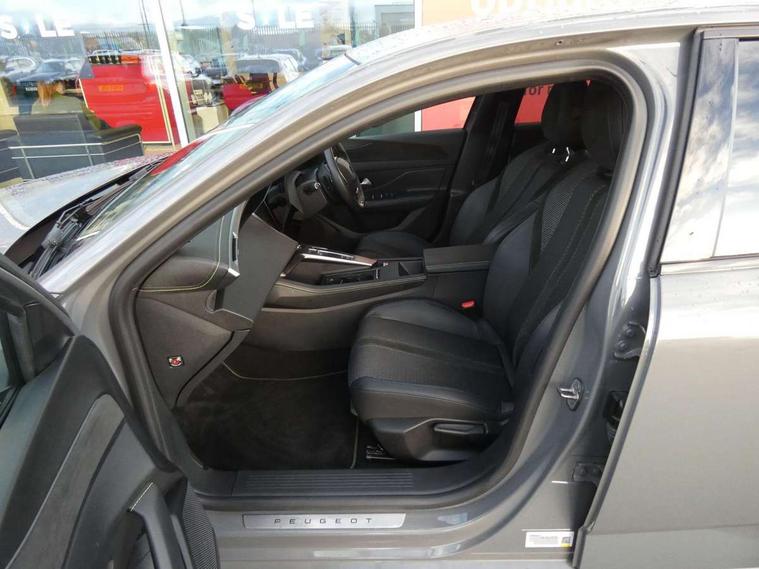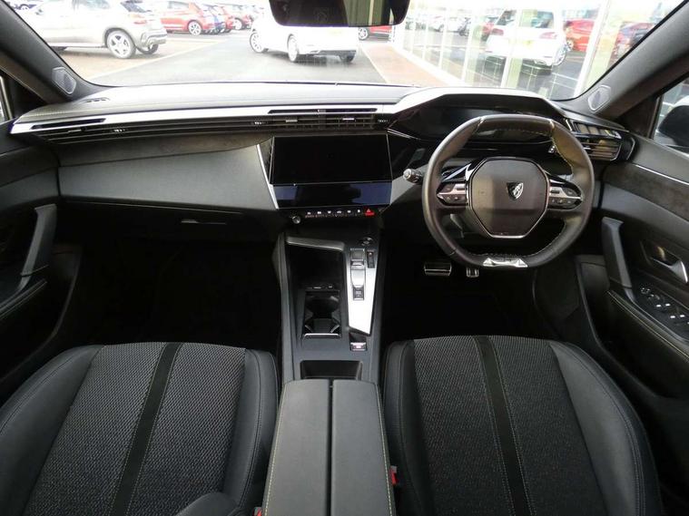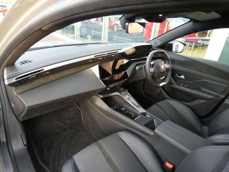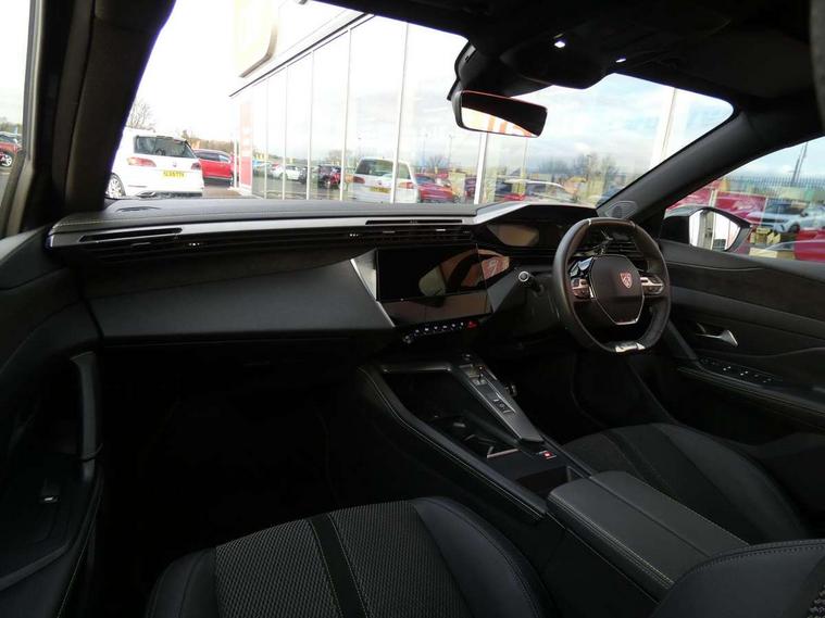 Bluetooth telephone facility, Compact drive selector, Driver attention warning, Emergency call service, Exterior temperature indicator with ice warning, Front and rear parking sensors, Intelligent speed adaptation, Lane keep assist, Mirror screen with wireless apple carplay and android auto, Multi driving mode selector - Eco / Normal / Sport mode selector, Multi function trip computer, Peugeot connect advanced with connected 3D navigation, PEUGEOT i-Cockpit - compact steering wheel, 10" HD colour touchscreen with configurable 3D headup instrument panel, PEUGEOT SOS and assistance, Service interval indicator, Speed limit recognition and recommendation, Sport pedals with foot rest, DAB Digital radio, Peugeot customisable iToggles, Voice recognition for radio, navigation and telephony features, 2 X LED rear number plate lights, Acoustic and tinted windscreen, Acoustic laminated front side windows, Automatic hazard light activation upon heavy brake application, Automatic triggered rear windscreen wiper in reverse gear, Body colour door handles, Body colour rear roof spoiler, Dark chrome chequered radiator grille, Dark tinted rear side and tailgate windows, Electric operated/heated door mirrors, Extended lower body sills to the front and side, Frameless electrochrome rear view mirror, Front and rear electric windows with one touch/anti pinch, Full LED matrix headlights with automatic adjustment, Gloss black finish B pillar, Gloss black rear cluster connecting strip, GT model designation badging on tailgate, High beam assist, LED 3rd brake light, LED side indicator lights integrated into door mirrors, Lion emblem badging on front wings, Model designation badges on front and rear, Nera black door mirrors, Peugeot aluminium door sills, Peugeot signature LED daytime running lights, Power folding door mirrors, Rear full LED 3D Peugeot new claw effect lights with sequential welcome sequence upon unlocking the vehicle, Rear lower bumper gloss black diffuser effect trim, Rear reversing lights, Rear side wing doors, Tailgate with heated rear windscreen and wiper blade, Twin exhaust pipes with chrome surround, 1/3 to 2/3 split folding rear seats, 12V socket, 2 front USB socket including 1 USB type c, 3 seat bench in 2nd row, 8 Colour personalisable ambient lighting, Automatic air conditioning with AQS 3, Carpet mats, Central front armrest with storage compartment, Dynamic front seats, Electric power steering with reach and rake adjustable steering column, Front central console with two cup holders, LED Glovebox light, Manual driving mode - change gear manually via steering mounted paddles, Multifunction full grain leather steering wheel with admite green stitching & GT badging, Piano keys gloss black plated toggle switches to access main functions of the vehicle, Roof lining - Mistral black, Seatbelt unfastened on the move audible and visual alert for front and rear seats, Single front passenger seat, Ski hatch with central rear armrest with cup holder, Sunvisor with concealable mirrors and LED lighting, Twin USB charging ports in the rear (Type C), Driver sport pack with sports power steering - 308, Visibility pack with automatic magic wash windscreen wipers - 308, 2x Isofix child seat fitting on outer rear seats, 3x Rear three-point retractable seatbelts with force limiters in the outer rear seats, ABS + EBD + EBA, Active safety brake with night function/cyclists/pedestrians, Adaptive driver and front passenger airbags with passenger airbag deactivation function, Automatic post collision braking, Child locks on rear doors, Driver/front passenger side airbags, Electronic parking brake, ESP, Front and rear curtain airbags, Front optimised safety headrests and rear retractable headrests (x3), height adjustable, Front three point retractable seatbelts with force limiters, Front/rear disc brakes, Hill start assist, Tyre pressure sensor, Automatic door locking when moving off, Deadlocking system, Electronic code immobiliser, Locking wheel nuts, PEUGEOT Open and Go keyless entry system, Thatcham cat. 1 alarm with anti lift sensor,
