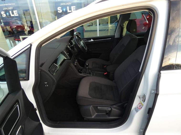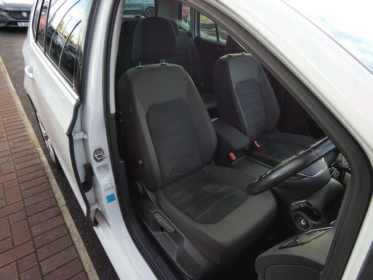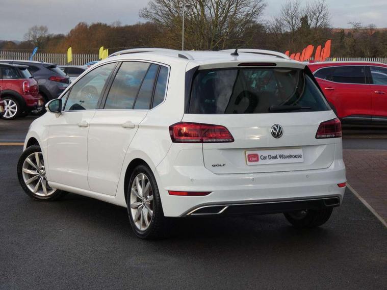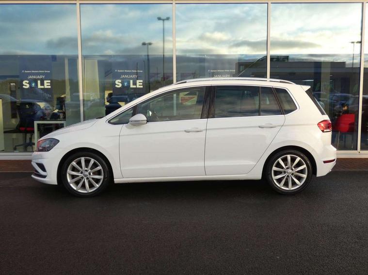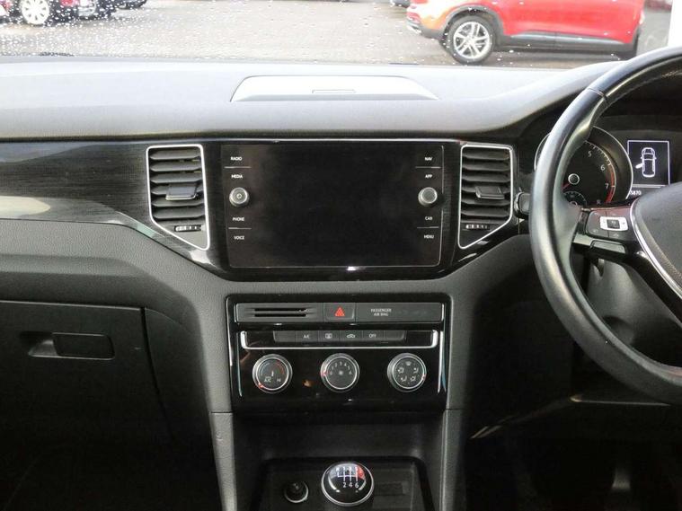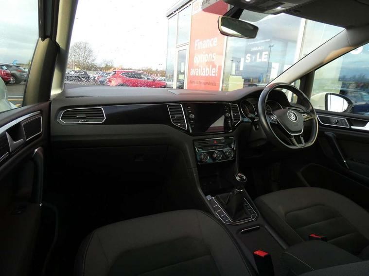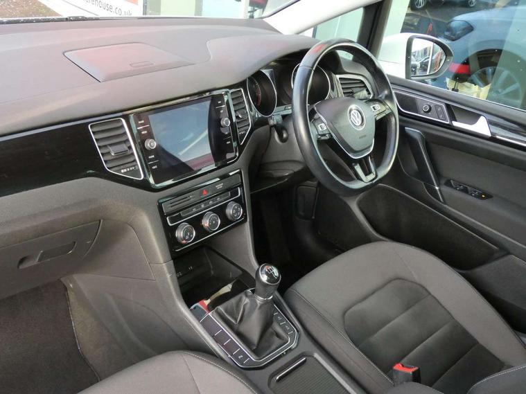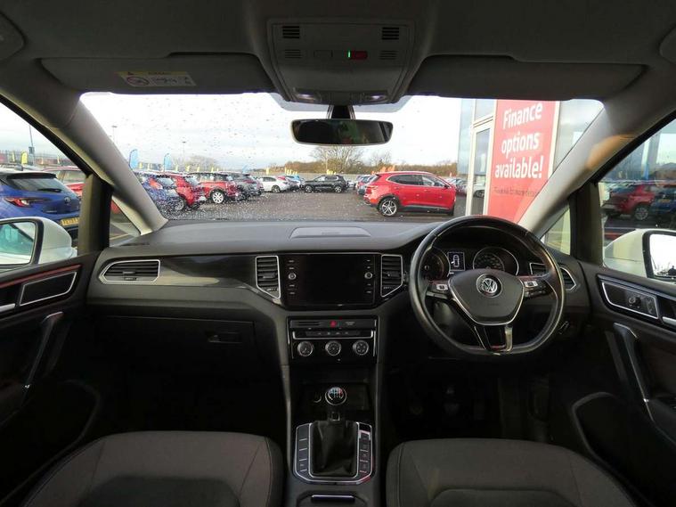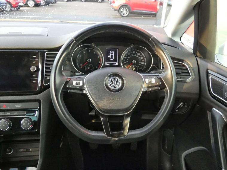 App-Connect, 'Lights On' Reminder warning buzzer, ACC - Adaptive cruise control with front assist, forward collision warning, distance monitoring, city emergency brake and speed limiter, Bluetooth Telephone preparation, Brake pad wear indicator warning light, Drive mode selector, Driver alert system, Driver profile selection, Exterior temperature gauge, PAS - speed related, Push tank flap, Rev counter, Speedometer, electronic odometer and fuel gauge, Stop/start system, Trip and service interval display, Warning buzzer and light for front seatbelts unfastened, White instrument cluster lighting, Battery regeneration during braking, Lowered sports suspension, XDS electronic differential lock, Composition media system, DAB Digital radio, Dynamic navigation based on TMC+, Personalisation 1.1 profile for media, SD card slot, SMS functionality - read, compose and send SMS messages using touch-screen display, USB and auxiliary socket, Auto dimming rear view mirror, Automatic coming/leaving home lighting function, Black front air intake and radiator grilles with chrome inserts and roundel surround, Body colour bumpers, Body colour door handles, Body colour door mirrors with integral indicators, Chrome louvres in grille, Chrome side window surrounds, Chrome trimmed front air intake surrounds, Dusk sensor + auto driving lights, Electric front windows, Electric rear windows, Electrically adjustable and heated door mirrors, Front fog lights with static cornering function, Galvanised body, Heat insulated tinted glass 65% light absorbing from B pillar back, Heated rear windscreen, Integral rear window aerial, LED 3rd brake lamp, LED daytime running lights, LED rear lights, Rain sensor, Range adjustable headlights, Rear diffuser, Rear roof spoiler, Rear window antenna, Rear windscreen washer and wiper with interval delay, Silver roof rails, Twin exhaust tailpipe, Windscreen wipers/ intermittent wipe + 4 position delay, 12v socket in front centre armrest storage compartment, 12V socket in luggage compartment, 2 LED front and rear reading lights, 3 rear headrests, 3 spoke steering wheel, 60/40 split folding rear seat, Ambient lighting, Auto fold down lever in rear seat backrest, Centre console storage box, Chrome-plated electric mirror adjustment switch surround, Chrome-plated electric window button surround, Cooled glovebox, Courtesy light delay, Dashboard storage compartments, Driver and front passenger under seat drawer, Driver/front passenger seat height adjustment, Dust/pollen filter, Folding tables on front seatbacks, Front + rear carpet mats, Front centre armrest with storage box and two rear air vents, Front door armrest light, Front footwell illumination, Front seat back storage pockets, Grab handles x 2 with integrated coat hooks, Height/reach adjust steering wheel, Interior lighting with switch off delay and contact switches on all doors, Isofix preparation for 2 rear child seats, Load lashing points x 4 in luggage compartment, Load through provision, Luggage compartment cover, Luggage compartment lighting, Overhead storage box, Pearl grey headlining, Rear centre armrest with 2 cup holders, forms a table when folded down, Storage box in luggage compartment, Storage boxes under front seats, Storage compartments in doors, Sunvisors with illuminated vanity mirrors, Variable boot floor, height adjustable and removable, White adjustable panel illumination, Mirror pack - Golf, 3 point height adj front seatbelts + pretensioners, 3 rear 3 point seatbelts, ABS, Active pedestrian safety system, Automatic post collision braking, Child locks on rear doors, Door open warning reflectors, Driver/Front Passenger airbags, Driver/Passenger whiplash optimised head restraints, Drivers knee airbag, Electronic parking brake with auto hold, Electronic tyre pressure monitoring, ESP with EDL + ASR, Front and rear curtain airbags, Front passenger airbag deactivation, Front side airbags, HBA (Hydraulic Brake Assist), Pre crash system, Predictive pedestrian protection, Ventilated front disc brakes, Alarm with interior protection, Electronic engine immobiliser, Remote central locking with 2 remote folding keys, Chrome-plated light switch surround, Decor strip on dashboard and door side trim, Piano black centre console, Tumbler decorative inserts, Steel space saver spare wheel,