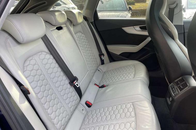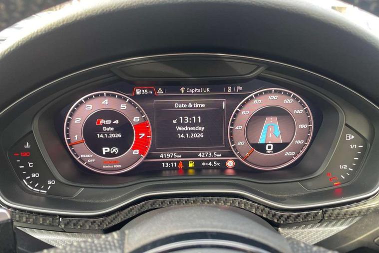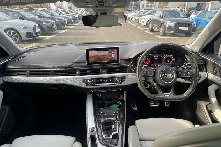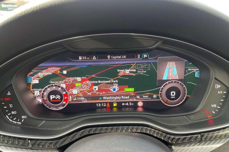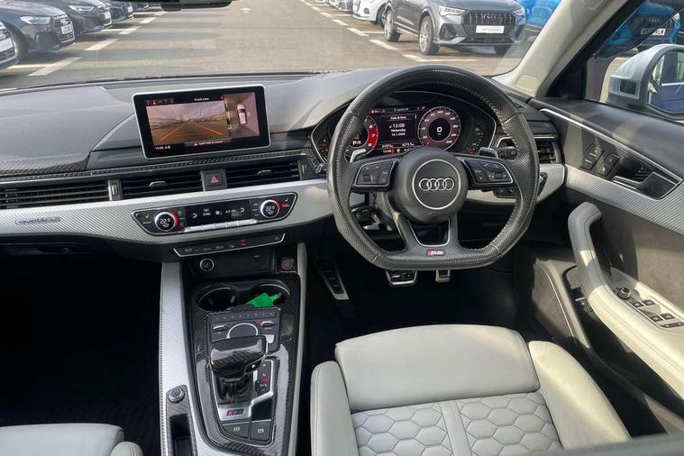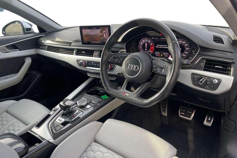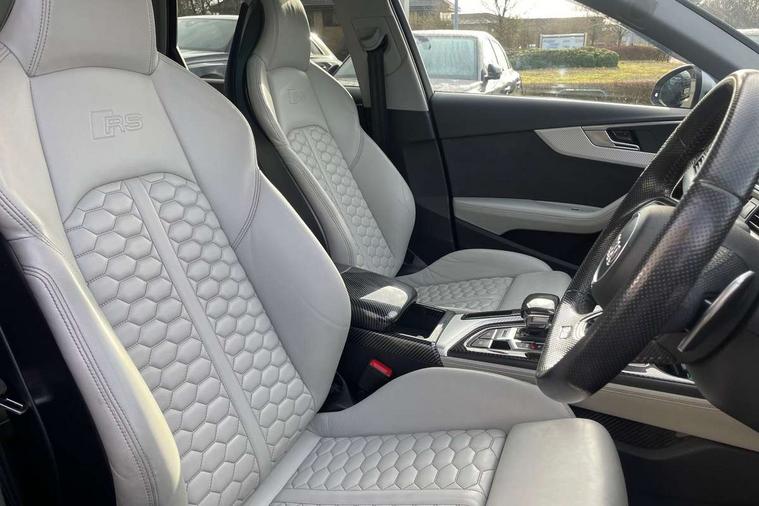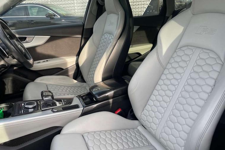 Audi drive select, Audi smartphone interface, Audi virtual cockpit - 12.3" high-resolution LCD display with fully customisable instrument cluster, Colour driver's information system display, Electro-mechanical PAS, MMI navigation plus with HDD and jukebox storage + 2 SD card readers + single CD/DVD player, Mobile telephone preparation - bluetooth interface, Power boot opening and closing, Service interval indicator, Stop/start button, Voice control system, Quattro sports differential, 2 USB ports, Aux input, DAB digital radio module, Acoustic windscreen, Air inlets in titan black with chrome inlays, Aluminium window trim, Auto dimming rear view mirror, Automatic headlights + automatic windscreen wipers, Body colour bumpers, Body colour door handles, Electric adjustable heated door mirrors, Electric front windows, Electric rear windows, Headlight range control, Headlight washer jets, High beam assistant, High gloss black triangular aperture at rear door, Honeycomb radiator grille - black, LED daytime running lights, LED indicators in door mirrors, Rain and light sensors, Rear diffuser in Twilight grey matt, Rear wiper, Twin oval exhaust tailpipes with chrome finish, 3 zone climate control, 4 way electric lumbar support for driver and front passenger, Black cloth headlining, Door armrest in leather, Fine Nappa leather upholstery, Front centre armrest with 12v socket, Front headrests, Front/rear floor mats, Gearshift paddles, Illuminated door sill finishers, Isofix child seat preparation for front passenger/outer rear seats inc passenger airbag deactivation, Jack and tool kit, Luggage compartment carpet, Lumbar support with massage function, Massage function for front and rear seats, Perforated leather gearknob, Reach + rake adjustable steering column, Rear centre armrest, Rear headrests, Retractable load area cover, RS Super sports front seats, Split folding rear seats, Sunvisors with vanity mirrors, Top tether anchor plate for isofix child seat, Non Smokers pack, 3 point seatbelts on all rear seats, ABS/EBD, Active bonnet, Adaptive driver and front passenger airbags, Electromechanical parking brake, Enhanced braking system, ESP, First aid kit, Front head airbags, Front seatbelt pretensioners + load limiters, Front side airbags, Hill hold assist, Pre-sense city emergency braking system, Seatbelt warning, Traction control, Warning triangle, Anti theft alarm, Keyless Start, Locking wheel bolts, Remote central locking, Thatcham category 1 alarm + immobiliser, Space saver spare wheel,