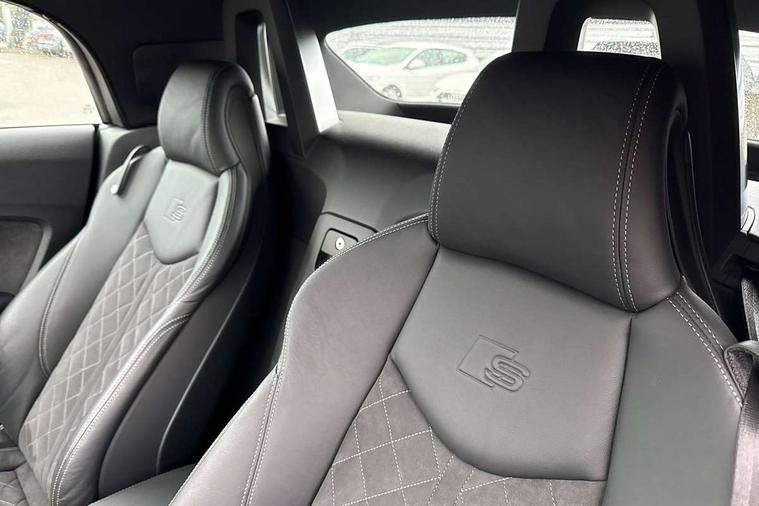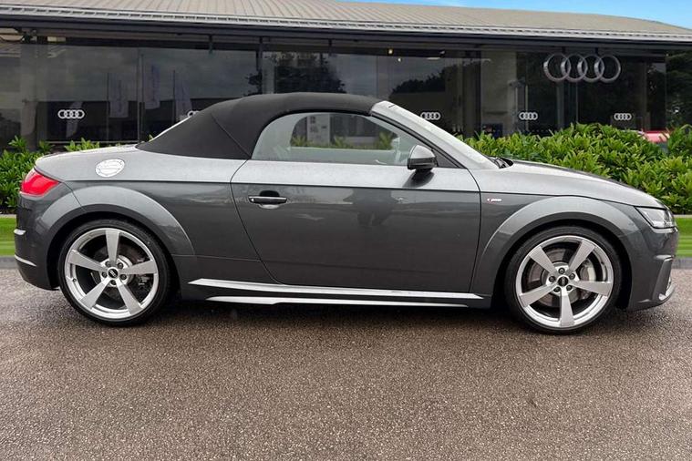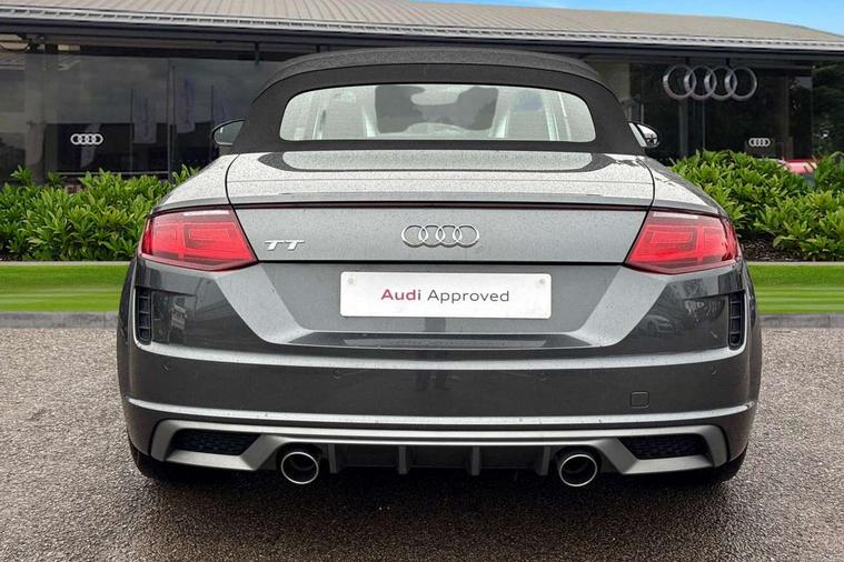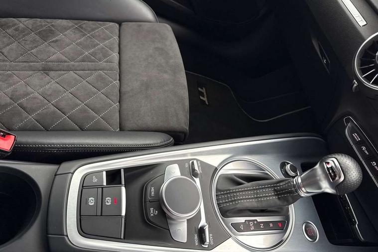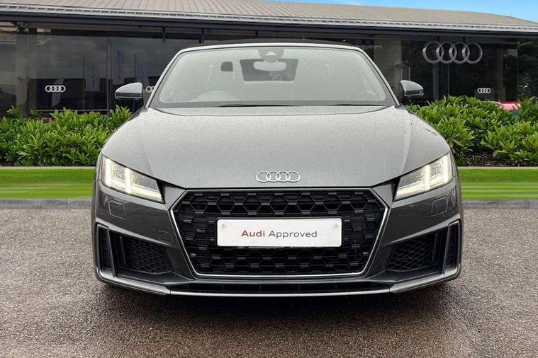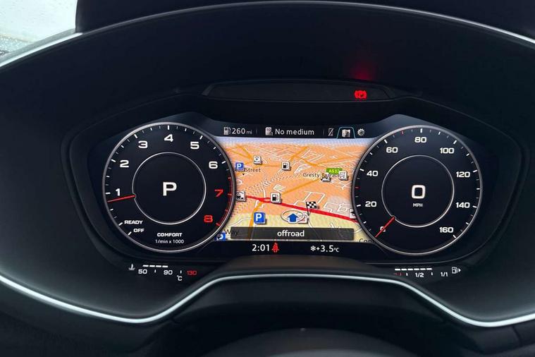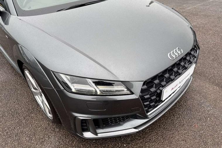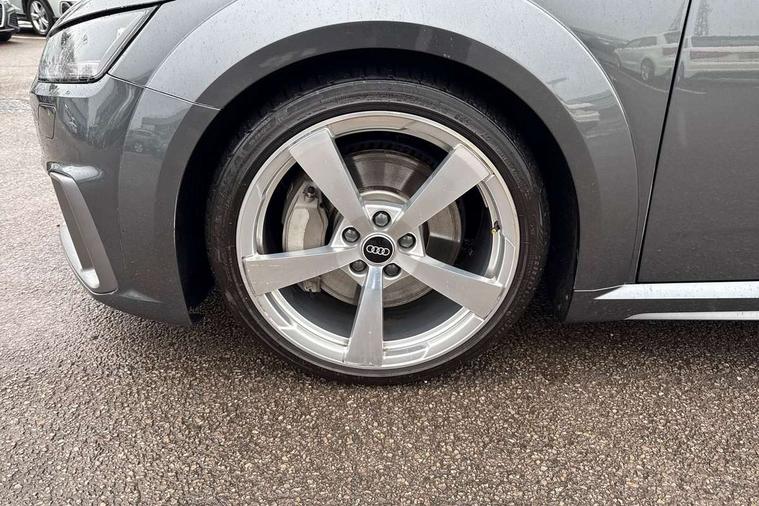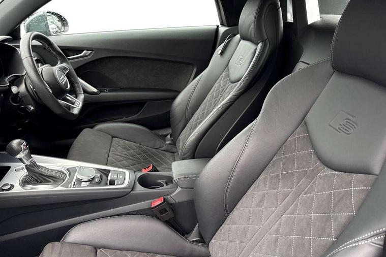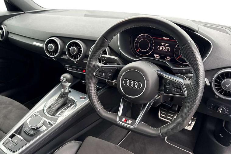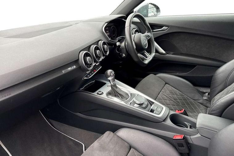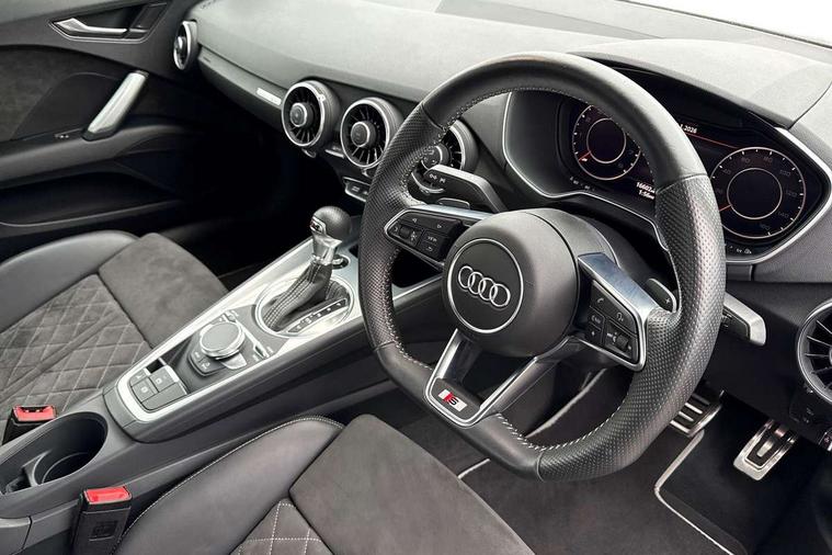 Audi drive select with 4 Pre configured modes, Audi smartphone interface, Audi virtual cockpit - 12.3" high-resolution LCD display with fully customisable instrument cluster, Cruise control + speed limiter, MMI touch panel, Mobile phone preparation with bluetooth interface, Progressive power assisted steering, Seat belt microphone, Service interval indicator, Start/Stop system with energy recuperation, TP memo, S line sports suspension, AM/FM radio, Bluetooth audio streaming, DAB Digital radio, MMI Radio with CD player and SD/XC card slot, Auto dimming rear view mirror, Auto headlight range control, Black door mirrors, Body colour bumpers, Electric folding door mirrors, Electric front windows, Electrically adjustable and heated door mirrors with integrated LED side indicators, Front fog lights, Fully automatic acoustic hood, Green tinted heat insulating glass, High gloss black radiator grille, LED daytime running lights, LED headlights with LED rear lights + dynamic rear indicators, Light and rain sensors, Retractable rear boot spoiler, S line badges on front wings, Sunband for windscreen, 12V socket, 3 spoke flat bottomed high multi-function leather sport steering wheel with gearshift paddles, 4 way electric lumbar support for driver and front passenger, Black headlining, Black roll bar, Contrasting silver stitching in steering wheel, Door sill trims with S line logo, Extended aluminium look with stainless steel pedals, Front centre armrest, Front super sports seats, Heated front seats, Height adjustable driver's seat, Height adjustable front head restraints, Height/reach adjust steering wheel, ISOFIX child seat mounting for front passenger seat with airbag deactivation, Manual adjustment of seat height, fore/aft position, seat angle, seat depth and backrest angle, Perforated leather gearknob in black, S Line badge on steering wheel, Non smoking pack - TT/TT RS, S Line design styling pack - TT, 3 point front seat belts, ABS, ASR traction control, Curtain airbags, Driver and front passenger airbag with front passenger airbag deactivation, EDL traction control, Electromechanical parking brake, ESP, First aid kit, Front side airbags, Hill hold assist, Seatbelt warning, Tyre pressure loss indicator, Warning triangle, Anti theft alarm, Anti theft wheel bolts, Immobiliser, Keyless Go, Remote central locking, Matt brushed aluminium inlays, Tool kit, Tyre repair kit,