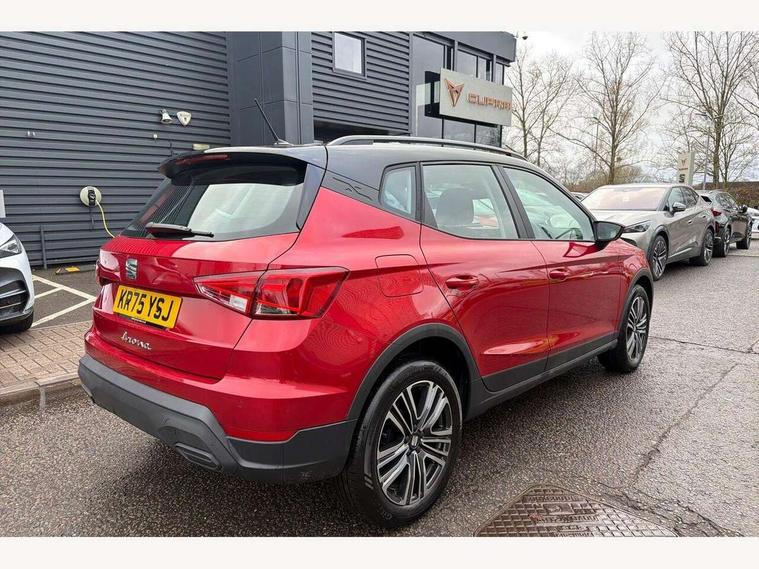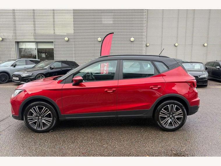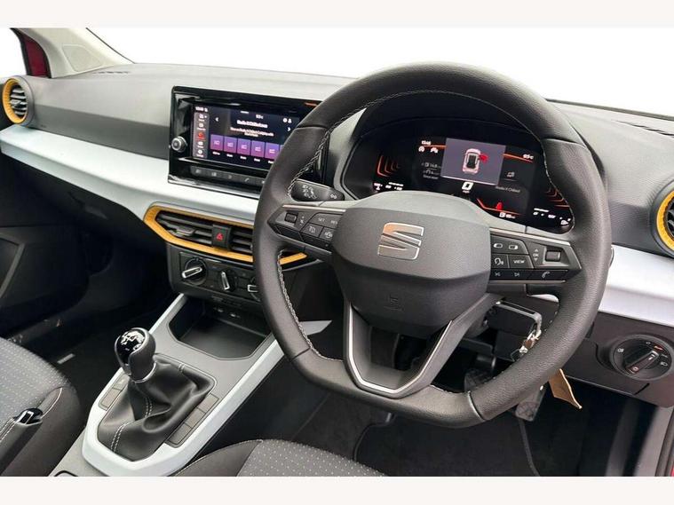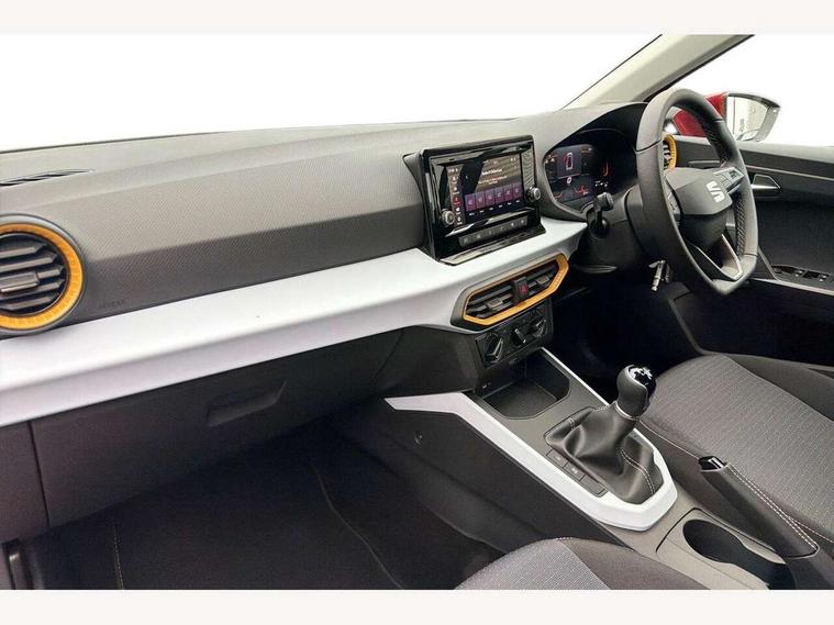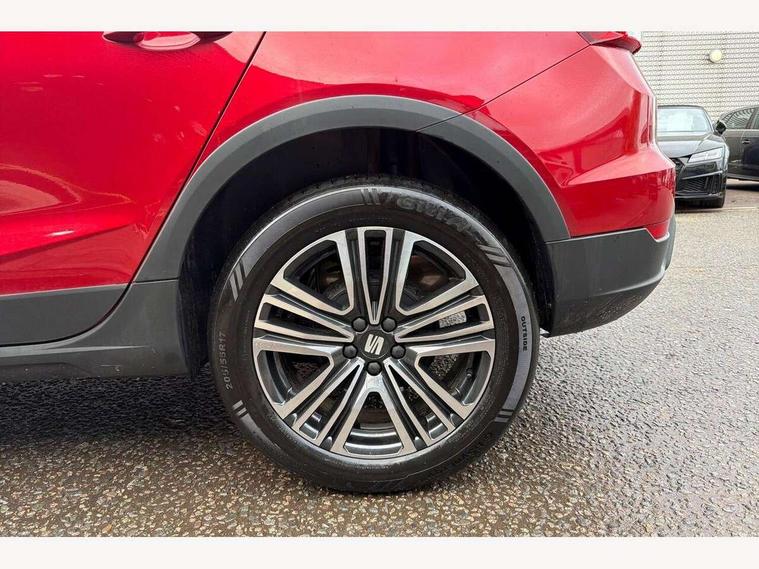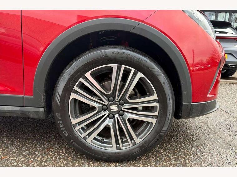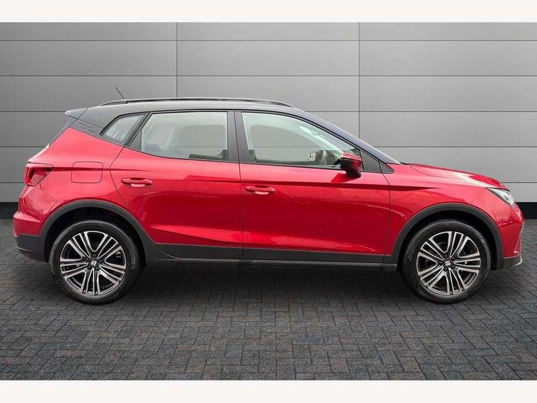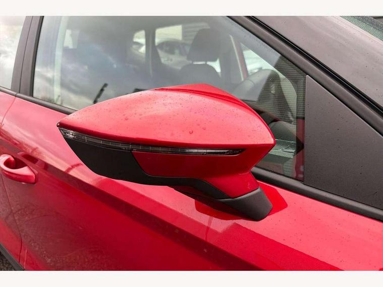 'Lights On' Reminder warning buzzer, 8" Digital cockpit, Cruise control and speed limiter, Digital clock, E-call, Electric speed sensitive power steering, Full link smartphone integration with mirror link, wireless apple carplay, Google android auto + USB Type C cable for apple and android devices, Lane keeping system, Low fuel warning light, Outside temperature display, RPM counter, Trip computer, 6 speakers, Bluetooth interface for hands free and audio streaming, DAB digital radio and AM/FM radio, Media system with 8.25" colour touchscreen with USB port (type c), Steering wheel mounted audio controls, Anti theft roof antenna, Automatic activation of hazard warning lights, Black roof rails and window surrounds, Body coloured bumpers, Body coloured door handle inserts, Body coloured door mirrors, Dimming rear view mirror, ECO LED automatic headlights and LED daytime running lights, Electric adjustable door mirrors, Electric front/rear windows, Hidden exhaust pipe, LED rear tail lights and licence plate lights, Licence plate lights, Protective side mouldings, Rain sensing wipers, Rear fog lights, Rear side wing doors, Rear spoiler, Rear window wash/wipe, Third brake light, Visible VIN plate, 2 cupholders, 3 seat bench in 2nd row, 60/40 split folding rear seat, Air conditioning, Cloth upholstery, Double boot floor, Driver sunvisor with covered mirror + card holder, Dust/pollen filter, Gear shift indicator, Grey interior air vents, Grey interior roof, Height adjustable front seats, Height/reach adjustable steering column, Illuminated boot, Instrument lighting with brightness control, ISOFIX points in outer rear seats with top tether anchorage points, Leather steering wheel/gear knob/handbrake, Passenger sunvisor with vanity mirror, Potentiometer, Single front passenger seat, Two front and three rear height adjustable headrests, Interior chrome pack - Arona, Safe and driving pack (S) - Arona, 3 point seatbelts on all rear seats, ABS, Active front headrests, Child locks on rear doors, Driver and front passenger airbags with front passenger airbag de activation, front side and curtain airbags, Emergency Brake Assist (EBA) and front assist, Forward collision warning and autonomous emergency braking, Front and rear seatbelt reminder, Hill hold control, Multi-Collision braking, Tiredness recognition system, Traction control, Tyre pressure monitoring system, Deadlock, Electronic engine immobiliser, Locking wheel bolts, Remote central locking, Titan black dashboard, 17" Dynamic machined alloy wheels,