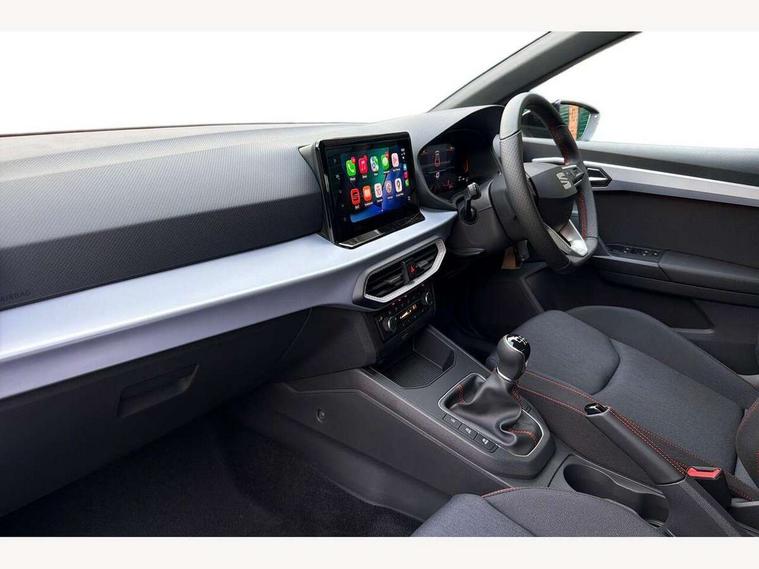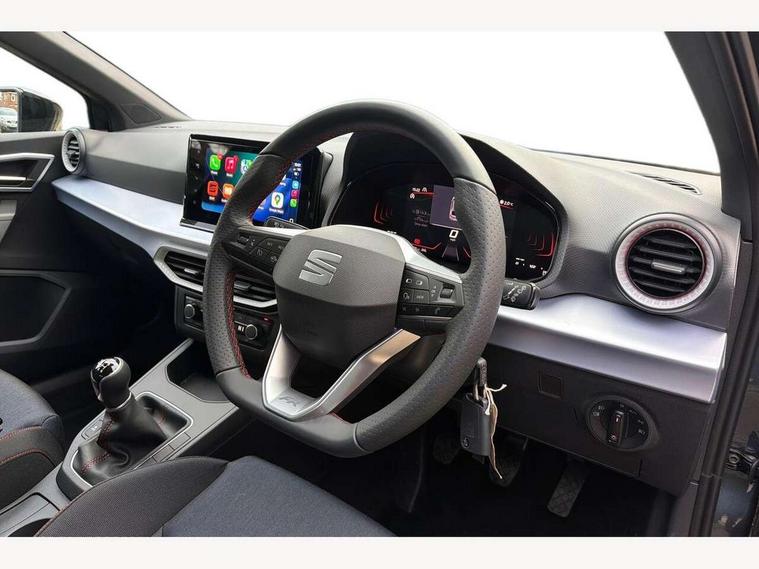 'Lights On' Reminder warning buzzer, 8" Digital cockpit, 9.2" touchscreen navigation system with type C USB socket, Voice control and DAB/AM/FM radio, Auto start and stop system, Bluetooth audio streaming with handsfree system, Digital clock, E-call, Full link smartphone integration with mirror link, wireless apple carplay, Google android auto + USB Type C cable for apple and android devices, Lane assist, Low fuel warning light, Outside temperature gauge, Power Steering, Rear parking sensor, Seat connect plus with safety, service, remote and online, SEAT drive profiles and ECO function, SEAT logo boot release, Speed limiter, Traffic sign recognition, Trip computer, Sports suspension, Auxiliary input socket, Radio/MP3 player, SD card slot, Steering wheel mounted controls, Anti theft roof antenna, Auto dimming rear view mirror, Automatic rain sensing wipers, Black door mirror caps, Body colour bumpers, Body colour door handles, Brilliant black window surrounds, Dark tinted rear windows, Electric adjustable/heated/folding door mirrors, Electric front windows, Electric headlight adjustment, Electric rear windows, Front/rear fog lights, FULL LED automatic headlights with dynamic headlight range control, coming and leaving home, LED daytime running lights, LED 3rd brake light, LED tail lights, Rear roof spoiler with FR twin exhausts, Rear side wing doors, Rear wiper, 3 seat bench in 2nd row, 60/40 split folding rear seat, Ambient interior lighting, Chrome detailing and black headlining, Cloth upholstery, Dual zone climate control with combination filter, Front courtesy lights, Front cupholders x 2, Front reading lights, Gear shift indicator, Glovebox, Height adjustable front and rear headrests (five), Height adjustable front seats, Height/reach adjust steering wheel, Illuminated air vent surrounds, Illuminated boot, Instrument lighting with brightness control, Isofix, Leather multifunction flat bottomed sports steering wheel, Passenger sunvisor, Single front passenger seat, Sports seats, Sunvisors with mirror and driver side card holder, Safety and driving pack (S) - Ibiza, 3 point seatbelts on all 3 rear seats, ABS, Active front headrests, Child locks on rear doors, Electronic stability control, Energy recovery system, Front driver and passenger side airbags with curtain airbag and front passenger airbag deactivation, Hill hold control, Multi-Collision braking, Seat belt reminder for front and rear seats, Tiredness recognition system, Tyre pressure monitoring system, Locking wheel bolts, Perimeter alarm and interior monitoring with backup horn and tow away protection, Remote central locking + deadlocks, 17" Alloy wheels in Brilliant silver,