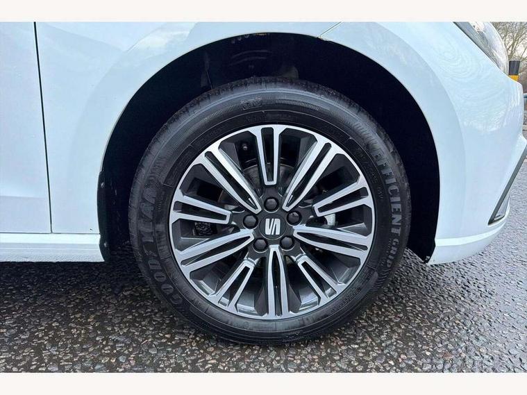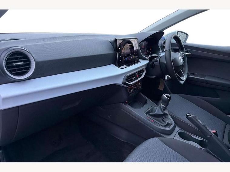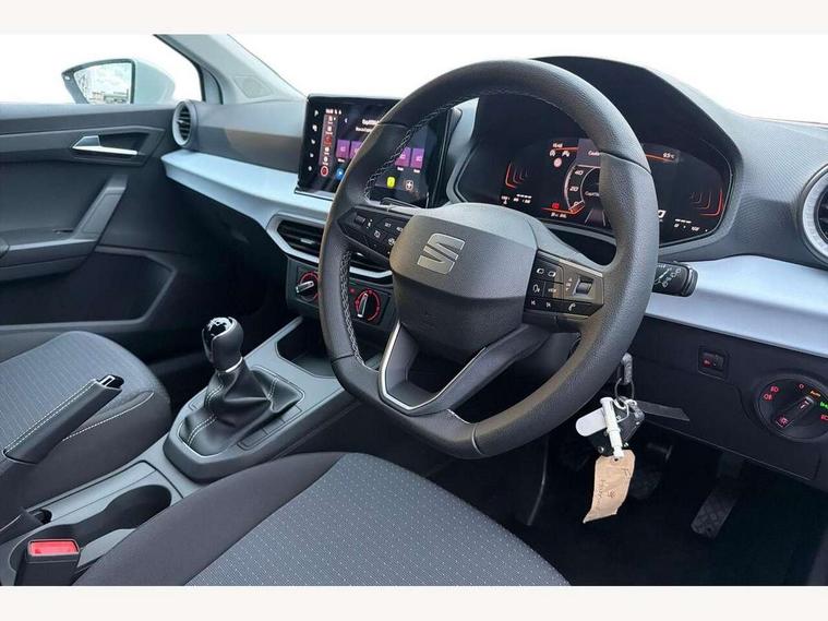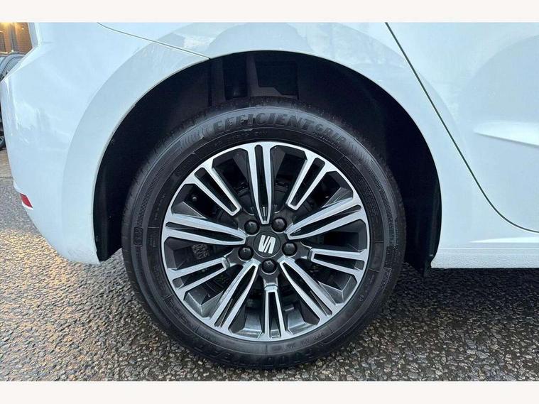 'Lights On' Reminder warning buzzer, 8" Digital cockpit, 9.2" touchscreen navigation system with type C USB socket, Voice control and DAB/AM/FM radio, Auto start and stop system, Bluetooth audio streaming with handsfree system, Cruise control, Digital clock, E-call, Full link smartphone integration with mirror link, wireless apple carplay, Google android auto + USB Type C cable for apple and android devices, Lane assist, Low fuel warning light, Outside temperature gauge, Power Steering, Rear parking sensor, Seat connect plus with safety, service, remote and online, SEAT logo boot release, Speed limiter, Traffic sign recognition, Trip computer, Comfort suspension, Auxiliary input socket, Radio/MP3 player, SD card slot, Steering wheel mounted controls, Anti theft roof antenna, Body colour bumpers, Body colour door handles, Body colour door mirror caps, Dimming interior rear view mirror, ECO LED automatic headlights and LED daytime running lights, Electric front windows, Electric headlight adjustment, Electrically adjustable door mirrors, Front/rear fog lights, LED tail lights, Rain sensor, Rear side wing doors, Rear wiper, Third brake light, 3 seat bench in 2nd row, 60/40 split folding rear seat, Air conditioning with dust and pollen filter, Chrome interior detailing and grey headlining, Cloth upholstery, Comfort seats, Front courtesy lights, Front cupholders x 2, Front reading lights, Gear shift indicator, Glovebox, Grey interior air vents, Height adjustable front and rear headrests (five), Height adjustable front seats, Height/reach adjust steering wheel, Illuminated boot, Instrument lighting with brightness control, Isofix, Leather multifunction flat bottomed sports steering wheel, Passenger sunvisor, Single front passenger seat, Sunvisors with mirror and driver side card holder, Safety and driving pack (S) - Ibiza, 3 point seatbelts on all 3 rear seats, ABS, Active front headrests, Child locks on rear doors, Electronic stability control, Energy recovery system, Front assist forward collision warning and autonomous emergency braking, Front driver and passenger side airbags with curtain airbag and front passenger airbag deactivation, Hill hold control, Multi-Collision braking, Seat belt reminder for front and rear seats, Tiredness recognition system, Tyre pressure monitoring system, Electronic engine immobiliser, Locking wheel bolts, Remote central locking + deadlocks, 16" Design machined alloy wheels in Nuclear grey,