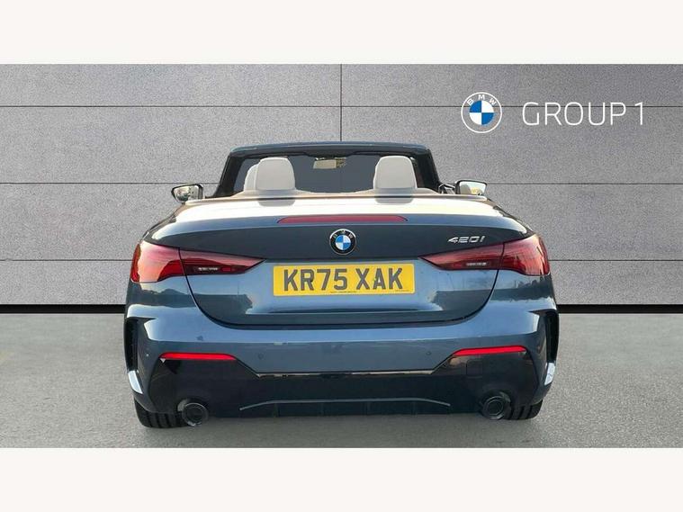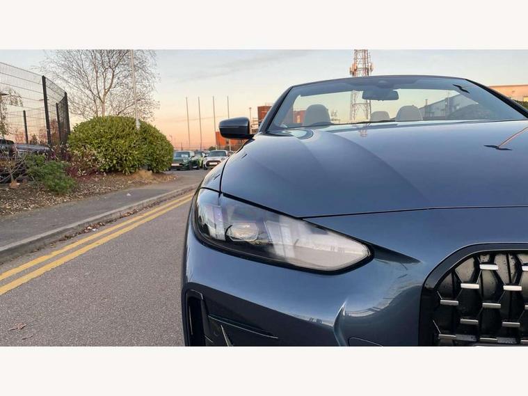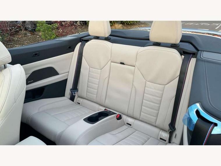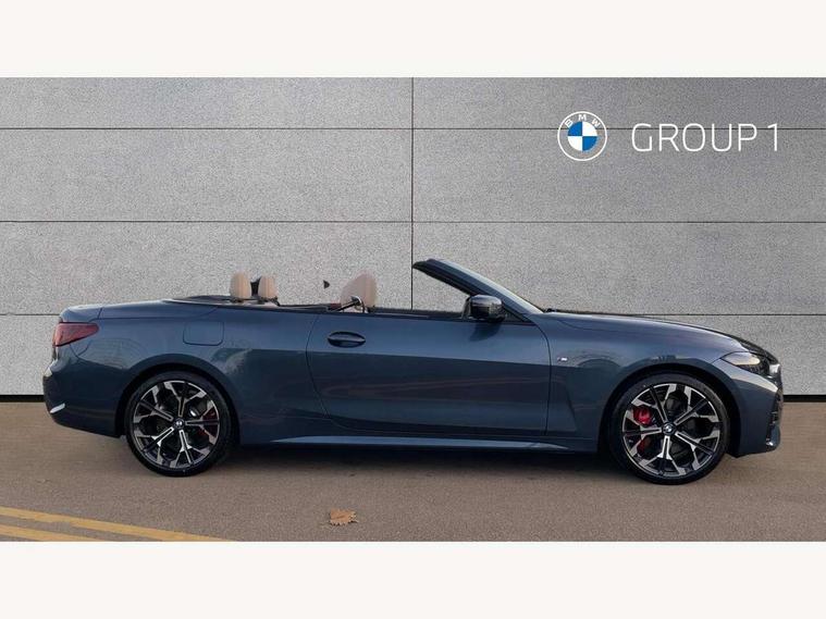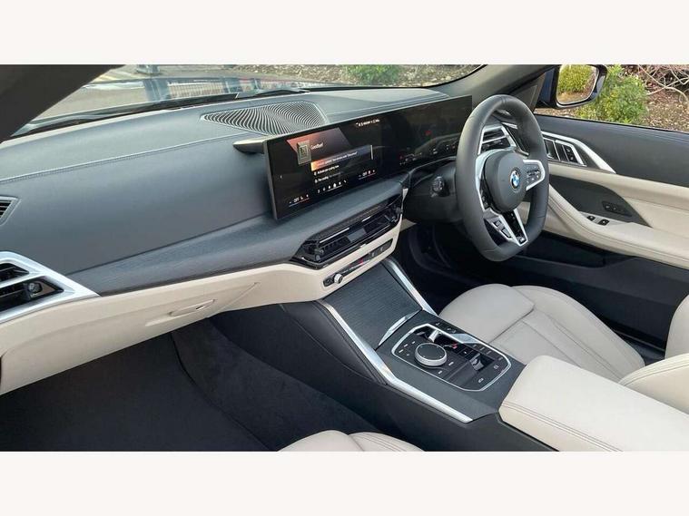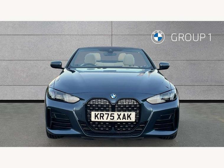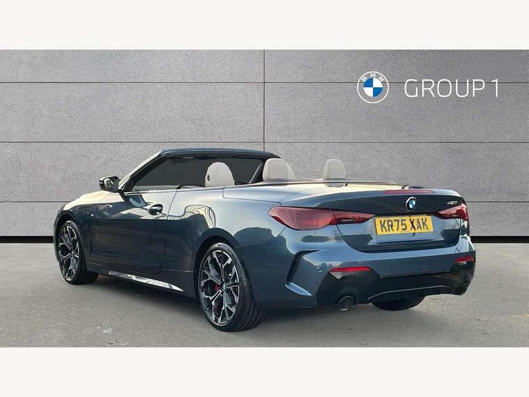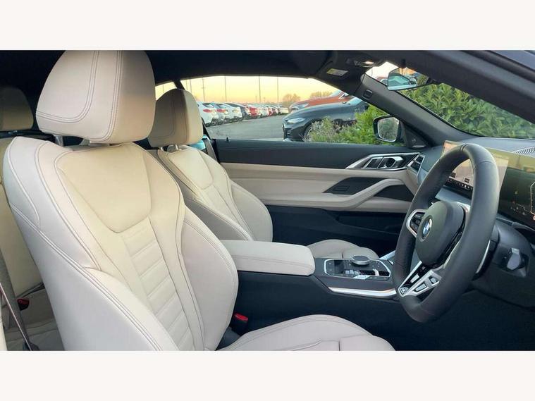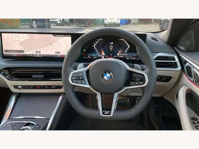 Active guard plus, Attentiveness assist, Automatic start/stop function, BMW ConnectedDrive online services, BMW iDrive controller on centre console, BMW service history, BMW Teleservices, Brake pad wear indicator in front and rear, Check Control warning system for monitoring of lights and door/luggage compartment open warning, Condition based service, Electric power steering with Servotronic steering optimised at all speed ranges, Instrument cluster with speedometer with mph readout, tachometer, fuel gauge and oil temperature gauge, Integrated owners handbook, Language version English, Oil sensor for level and grade, On board computer - average speed, fuel consumption, outside temp display with acoustic warning, clock/date, service interval, odometer/trip meter, Run flat indicator, Shifting point display, Start/stop button in black, Variable sport steering, 8 speed automatic steptronic transmission with gearshift paddles, Balanced 50/50 weight distribution, Double joint spring strut front axle, Drive experience mode switch - Comfort mode, ECO PRO mode and SPORT mode, Low centre of gravity, Petrol Particulate Filter, Stroke dependent dampers, DAB tuner, Personal eSim, Acoustic glazing, Automatic headlight beam throw control with load dependent regulating reaction, dynamic compensation of braking dive and acceleration squat, Automatic windscreen wipers and automatic headlight, BMW radiator grille with mesh grille, end face of the nuggets in aluminium matt and frame in chrome matt, Body colour fuel filler flap, Body colour roof fin, Bonnet and tailgate badge, Electric folding wing mirrors - Driver side electrochromic, auto anti dazzle function & front passenger side auto parking function without anti dazzle, Electric windows - front and rear, with open/close fingertip control, anti trap facility and comfort closing function all round, Follow me home headlights, Front and rear bumper system, Front apron plastic in body colour, Green tinted heat protection glazing, Illuminated bow type door handles in body colour drivers side with door lock, Interior rear view electrochromatic mirror with automatic anti dazzle function, LED 3rd brake light, LED daytime running lights, LED front fog lights, LED front indicators, Licence plate panel integrated into front bumper and tailgate, Low and high beam headlights in Bi-LED, M designation on front side panels, left and right, M Sport entry door sill strips, One piece front bumper cover including towing eye cover in body colour, Preparation for high beam assistant, Rear boot, Reversing light, Side frame trim strip black matt, Two part LED tailights in L-shape with components in smoked glass, brake light, LED turn indicator and rear fog light, Visible exhaust tailpipe finisher, Visible VIN plate, Welcome lights in interior and door handle area, Widened track and increased camber values for max transverse dynamics, agility and steering precision, Wind deflector, Windscreen washer jets concealed underneath bonnet, 12V power socket in front centre console, 2 2nd row folding seats, 2 front cupholder in centre console with clamping elements and matt black inlay, 2 Rear seat headrests, 2 zone automatic air conditioning, 3 spoke flat bottom M sport leather multifunction steering wheel, 4 pieces lashing eyelets in luggage compartment, Anthracite headlining, Armrest integrated in front and rear door trim + front centre console armrest, Battery in luggage compartment, BMW ID, Electric memory seats - electrically adjustable seats with drivers seat memory, exterior mirrors memory and automatic parking function, Extended storage - Luggage compartment partition net on left side trim panel, Bag hook on both sides of the luggage compartment, Front and rear door pockets, Front footwell lights, Front sport seats, Heated driver and front passenger seats, Height adjustable front headrests, Illuminated armrest storage compartment, Illuminated glove compartment with separate small compartment, Interior light and front reading light, Luggage compartment light, Single front passenger seat, Steering column adjustment - Infinitely variable in height and length, Sunvisors with illuminated vanity mirrors and ticket pocket, Toolkit located in luggage compartment, Velour front floor mats, Ambient lighting pack - 4 Series, BMW Live Cockpit Plus pack - 4 Series, Connected professional package - 4 Series, M High gloss shadowline exterior trim pack - 4 Series, M sport exterior styling pack - 4 Series, Park assist pack - 4 Series, 2 x 3-point rear seatbelts, BMW emergency call, Brake energy regeneration, Braking pre-tensioning, Child seat ISOFIX attachment for the two outer rear seats, Crash sensor activating of airbags, Unlocking doors, hazard warning lights, interior light, safety battery terminal, Driver and front passenger side airbags, integrated in the door side seat backrest bolsters for all seat variants, Driver/Front Passenger airbags, Dry braking, Dynamic brake control, Dynamic stability control + (DSC+) - Anti-lock Braking System (ABS) with brake assist and cornering brake control + Automatic Stability Control (ASC), Dynamic Traction Control - DTC, Electric parking brake including automatic hold function and automatic release of the parking brake when driving off, Electronic differential lock control (EDLC), Front and rear ventilated brake disc, Front passenger manual airbag deactivation, Head airbags for all 4 outer seats, Hill start assistant, Seat belt security check for driver and front passenger, Seat belt with belt stopper, pyrotechnic belt tensioners and belt force limiters, Seat occupancy detection for driver and passenger side, Side impact protection, Tyre pressure sensors, Warning triangle and first aid kit, Alarm system for monitoring doors, engine compartment, interior movement sensor, tilt sensor and siren with emergency power supply, Centre lock switch - Button in driver's side front door, complete locking of car, Closing system with centre locking for all doors, fue